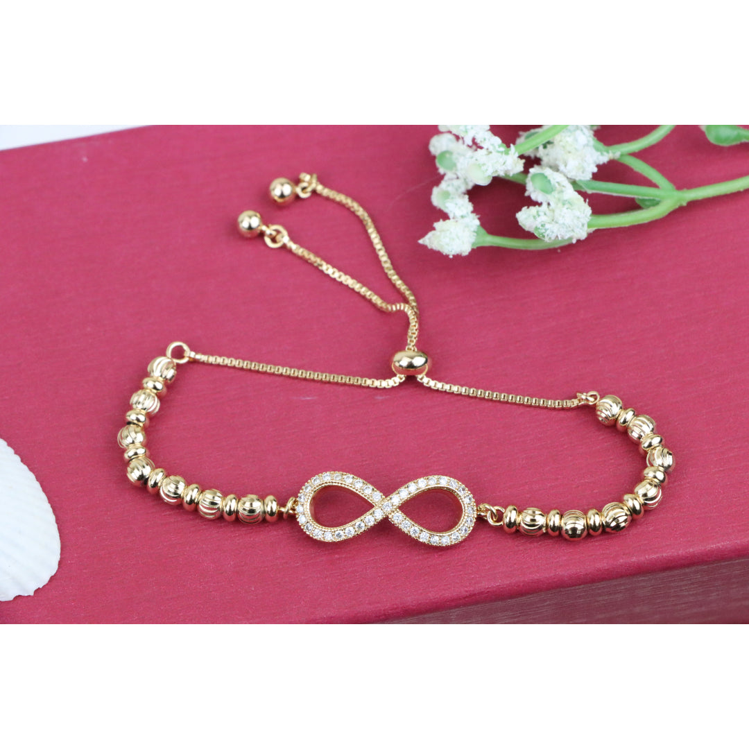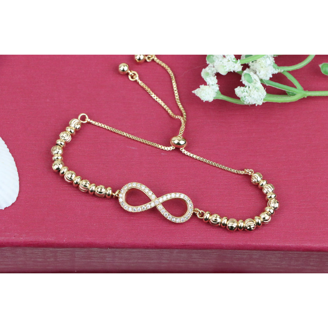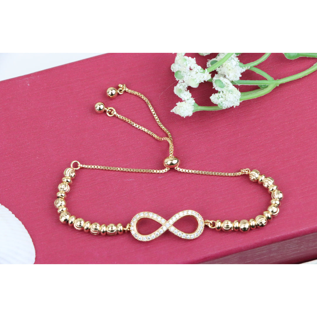 Rose Gold Infinity Bracelet with Beads and Adjustable Chain, XPAB0713