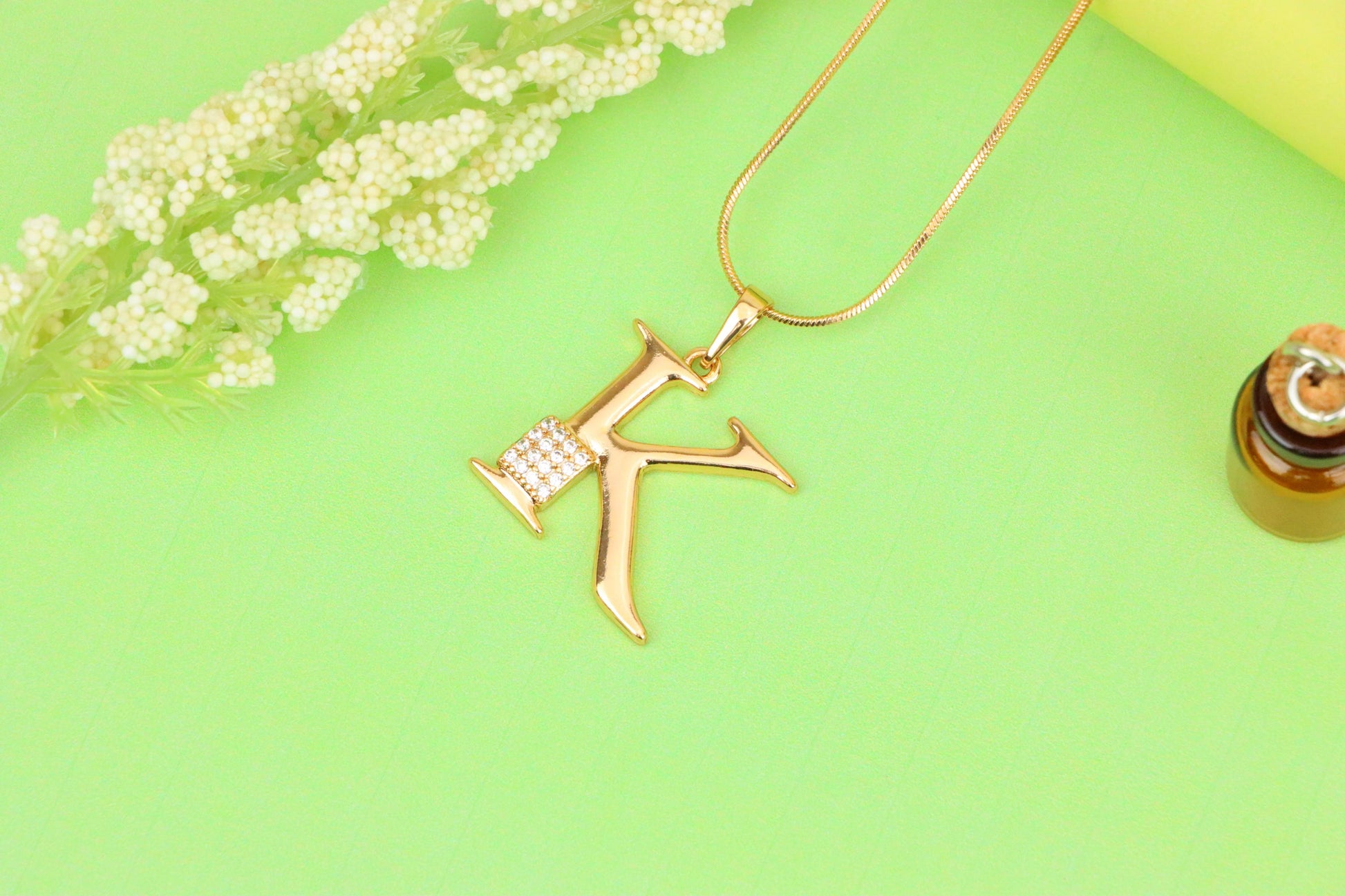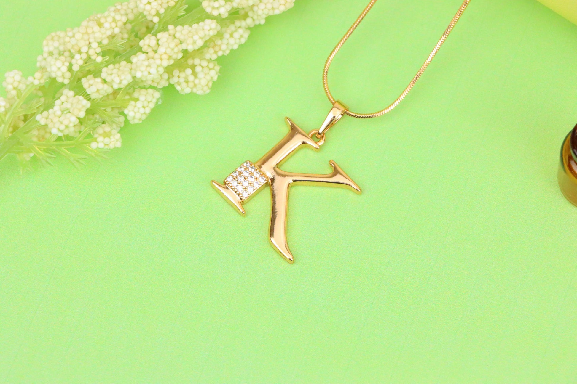 A beautiful rose gold letter K pendant, perfect for adding a personal touch to your everyday look.