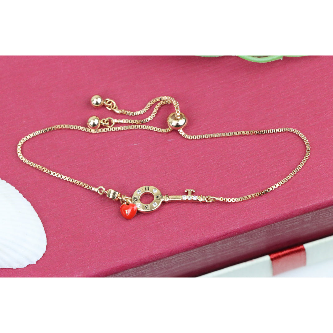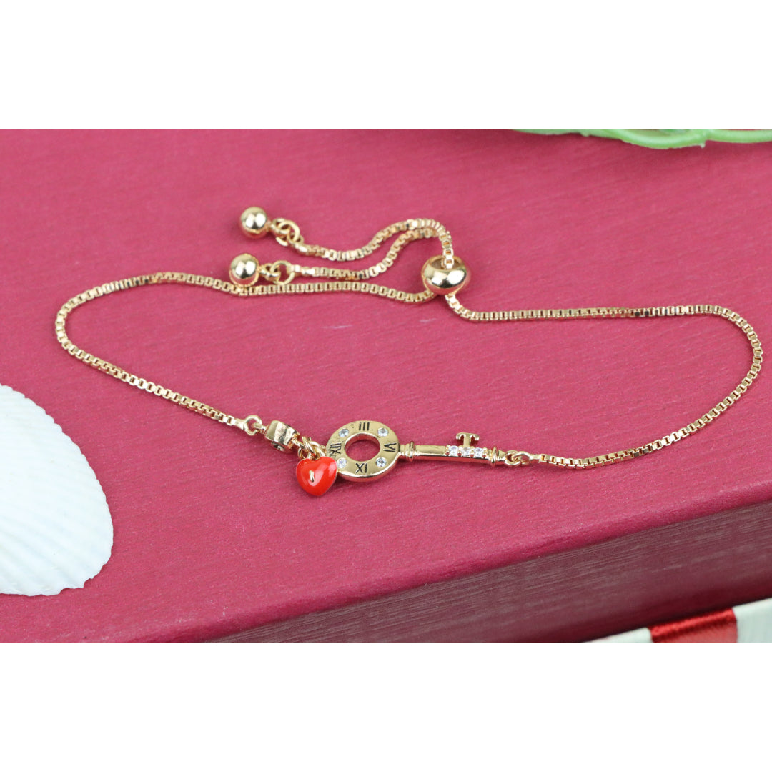 Rose Gold Key and Heart Charm Adjustable A-Bracelet for Women, XPAB0695
