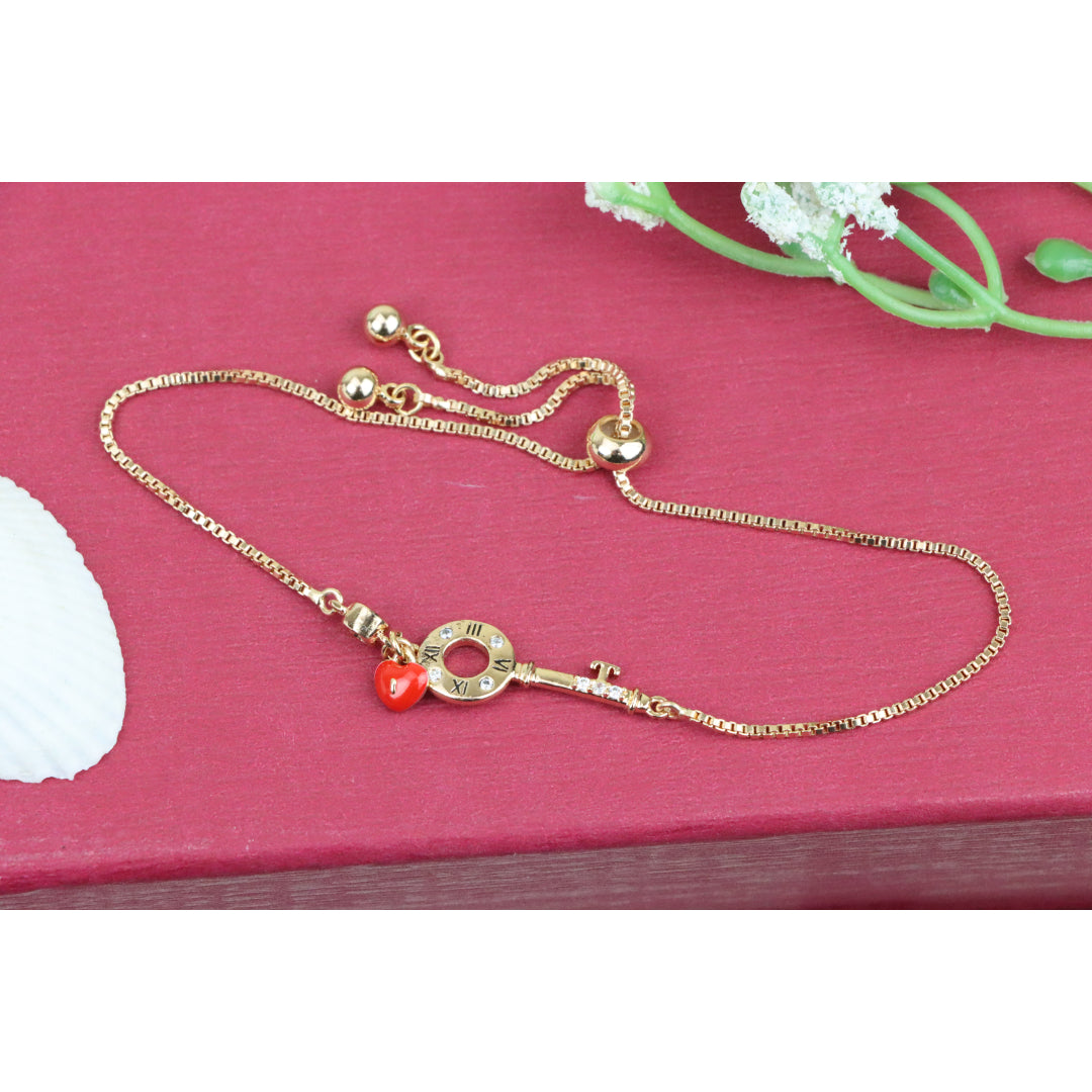Rose Gold Key and Heart Charm Adjustable A-Bracelet for Women, XPAB0695 (2070-4)