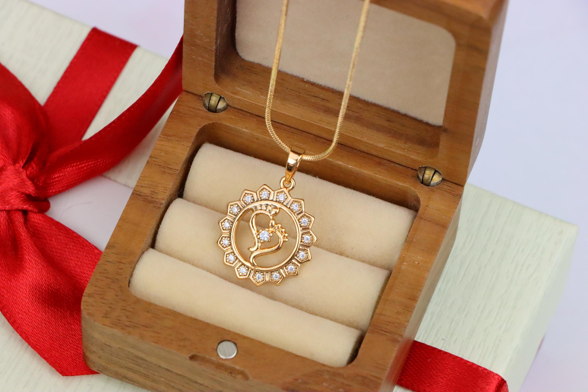 ✔ Surrounded by floral-shaped crystal border