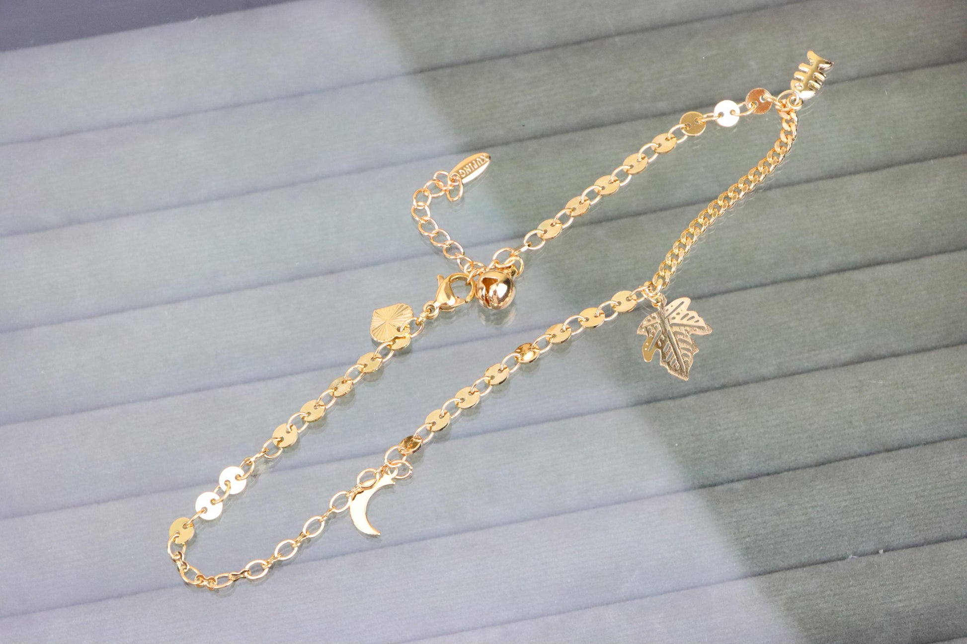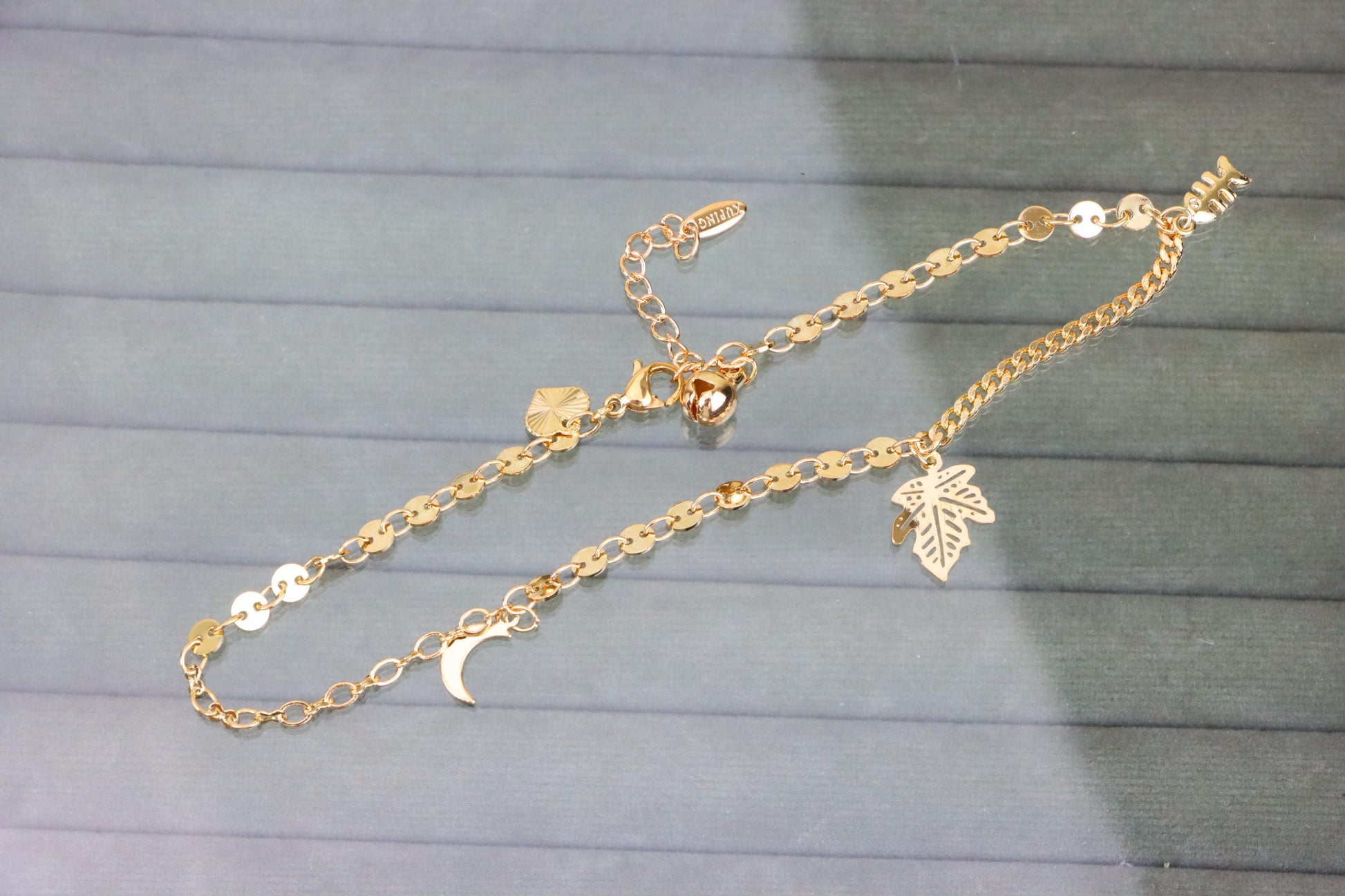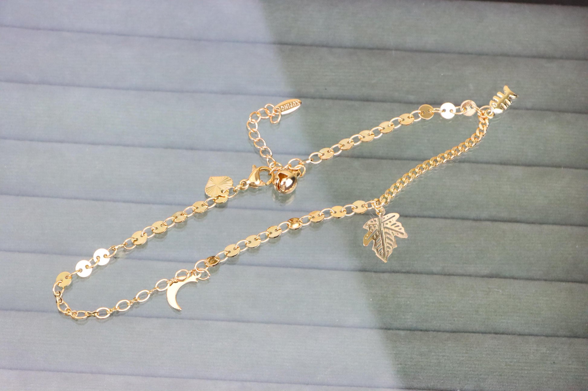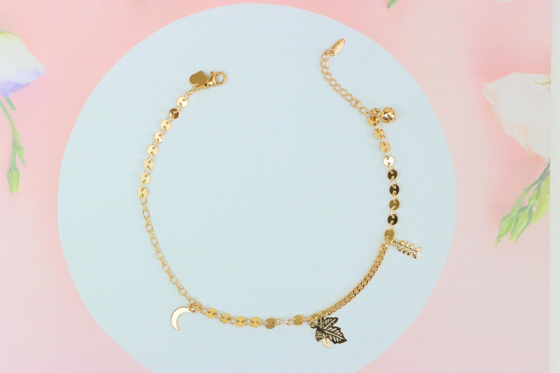Rose Gold Leaf Charm Anklet with Moon Pendant, XPAL1184