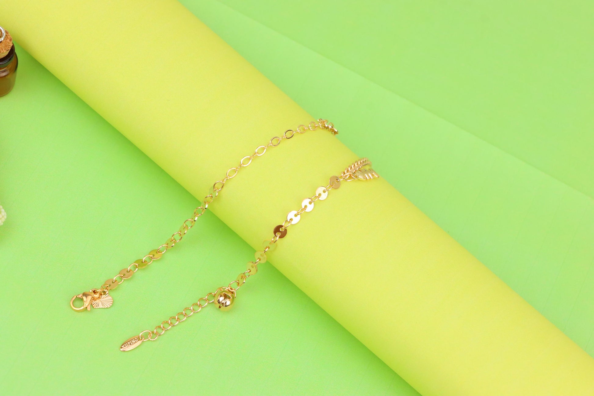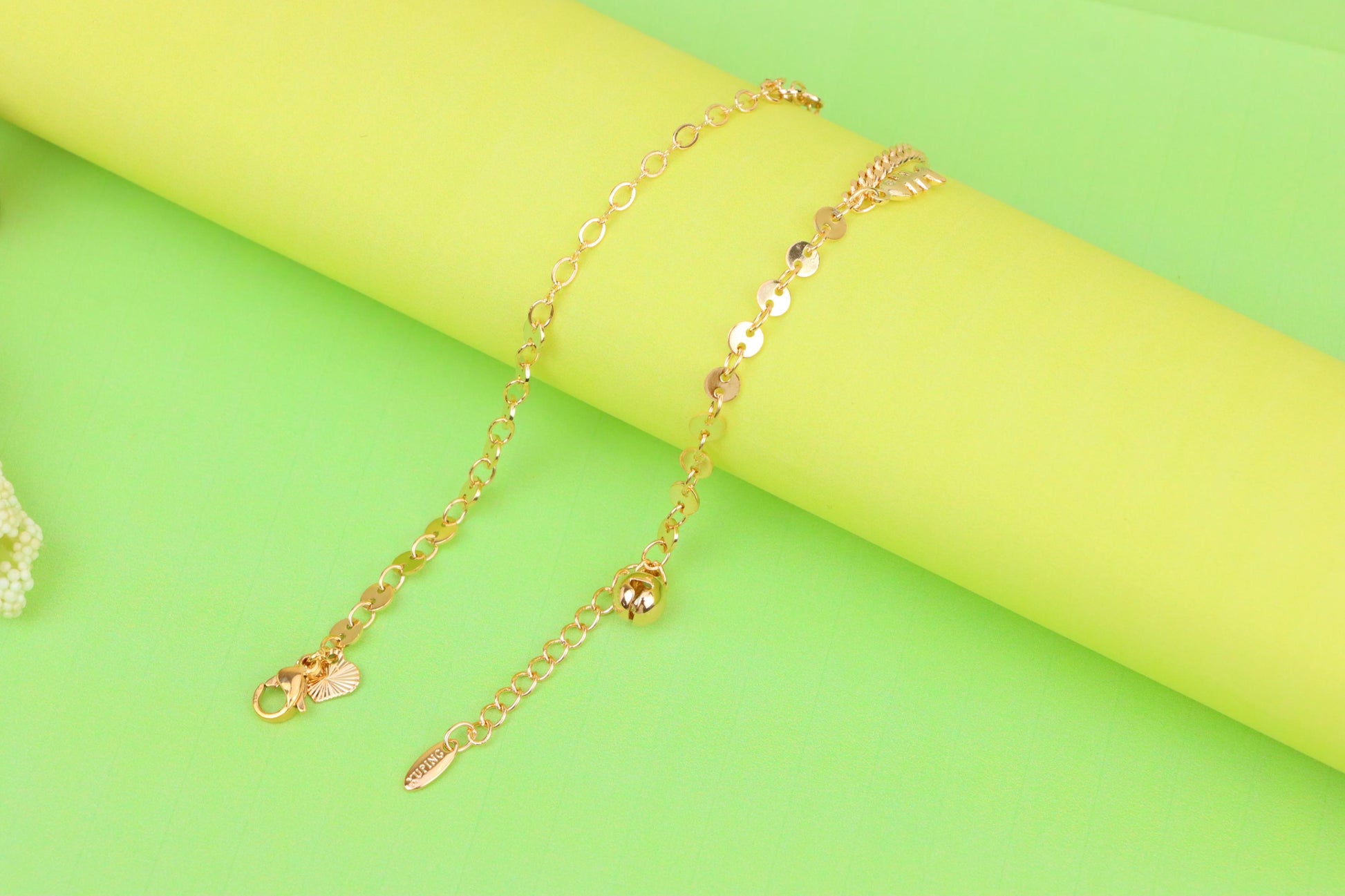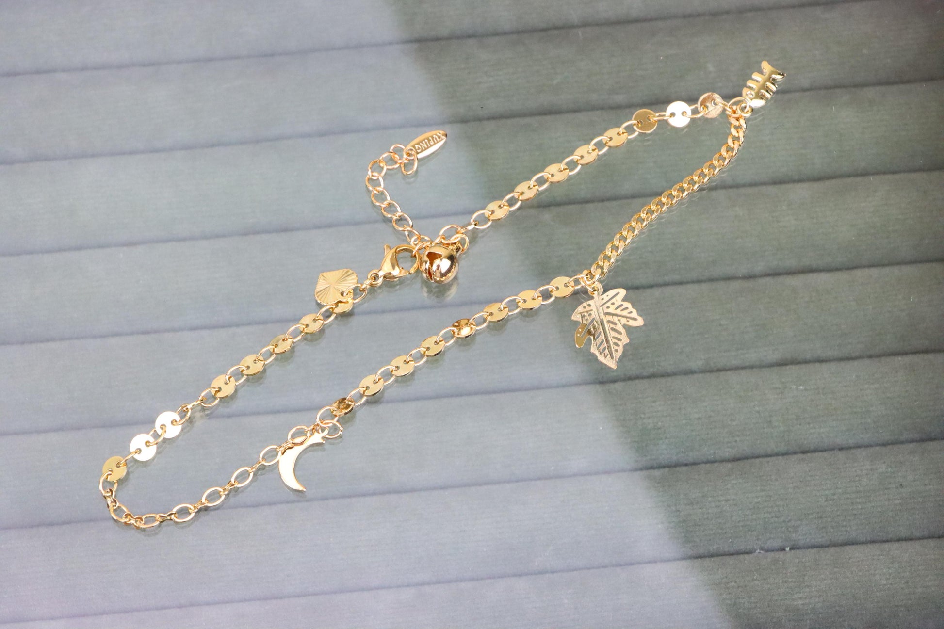 Rose Gold Leaf Charm Anklet with Moon Pendant, XPAL1184
