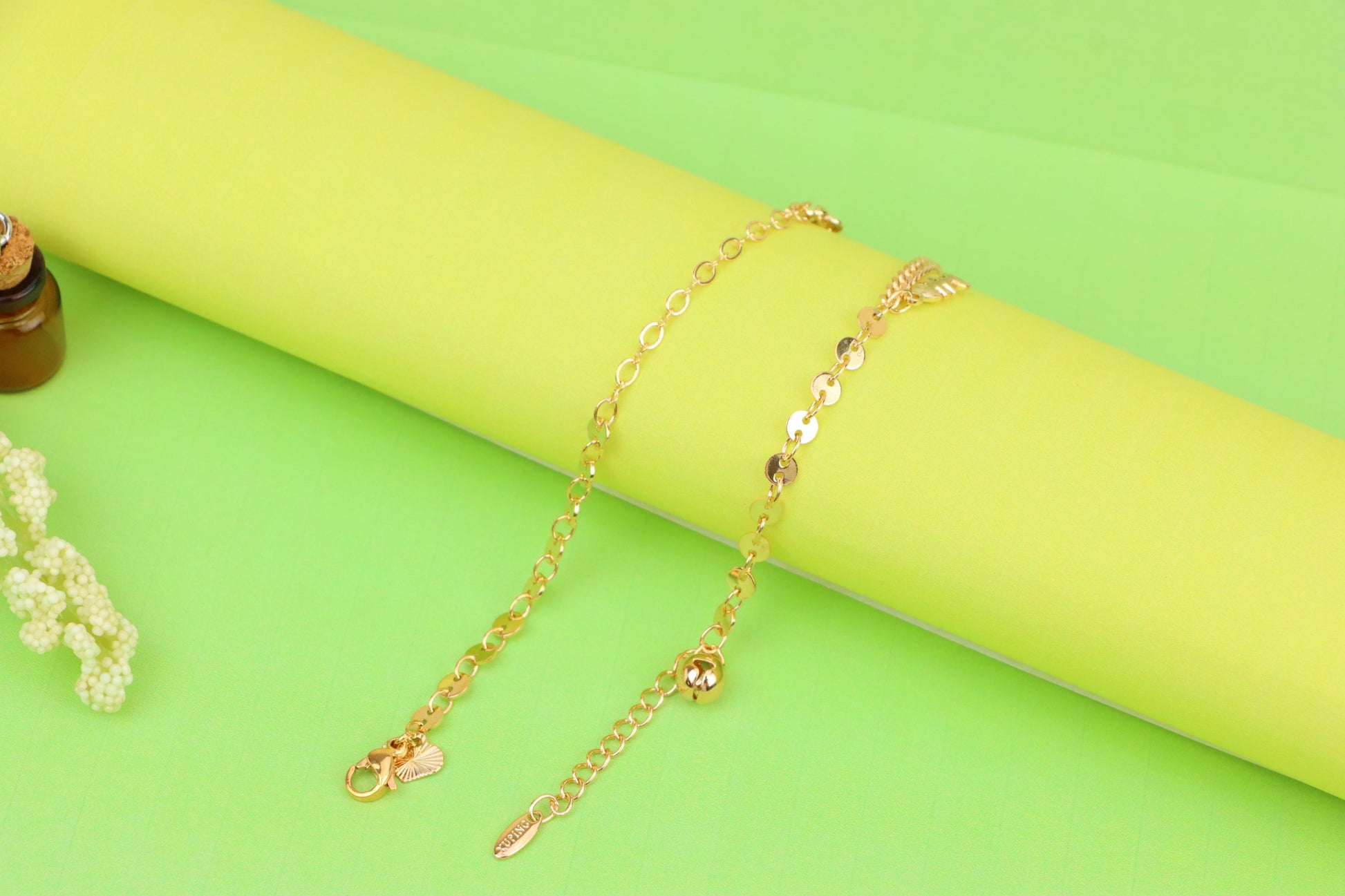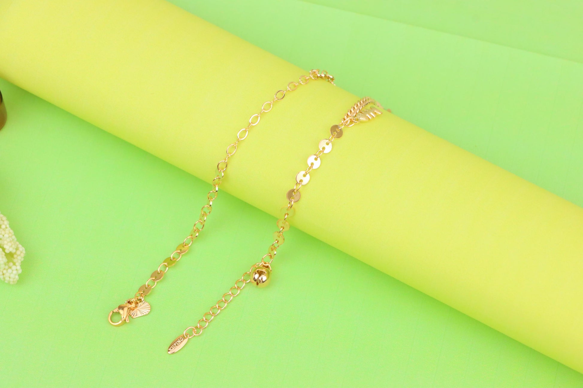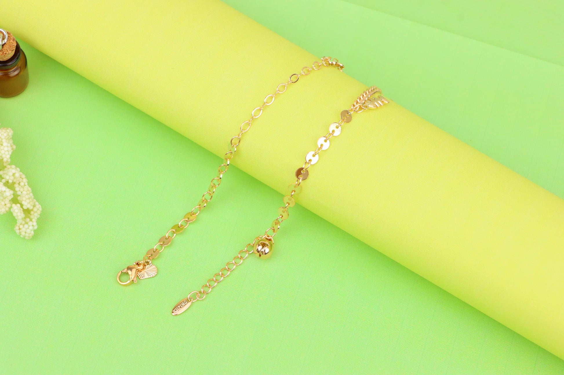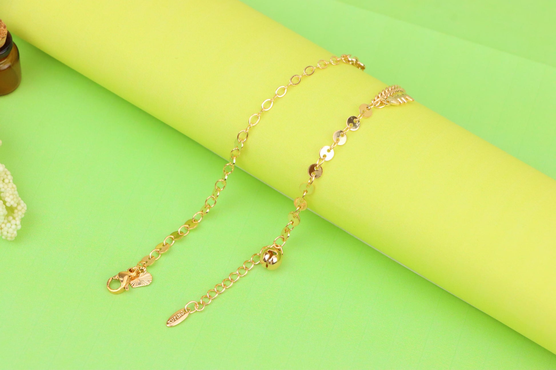 Rose Gold Leaf Charm Anklet with Moon Pendant, XPAL1184