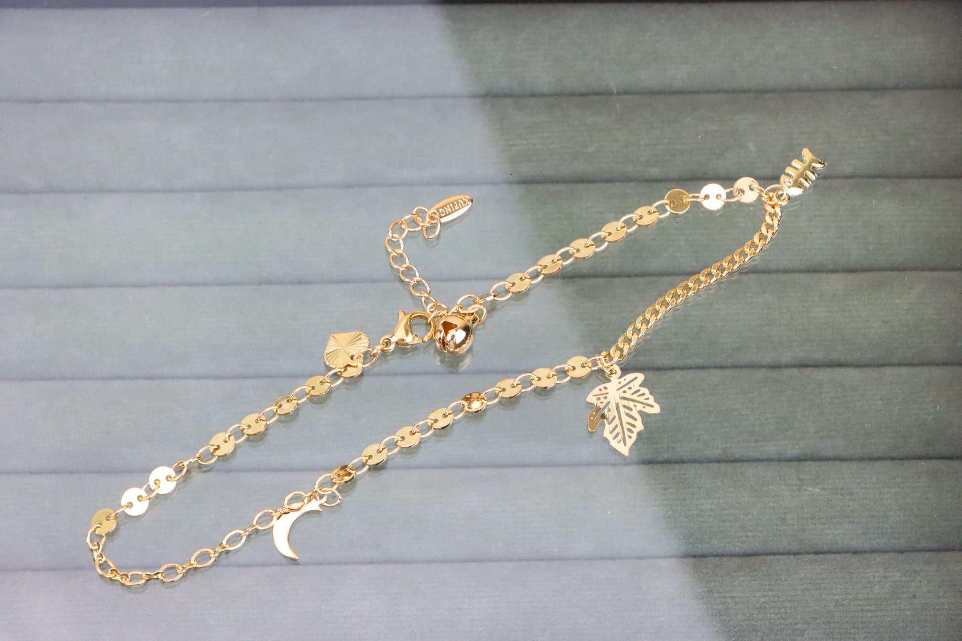 Rose Gold Leaf Charm Anklet with Moon Pendant, XPAL1184 (2119-3)