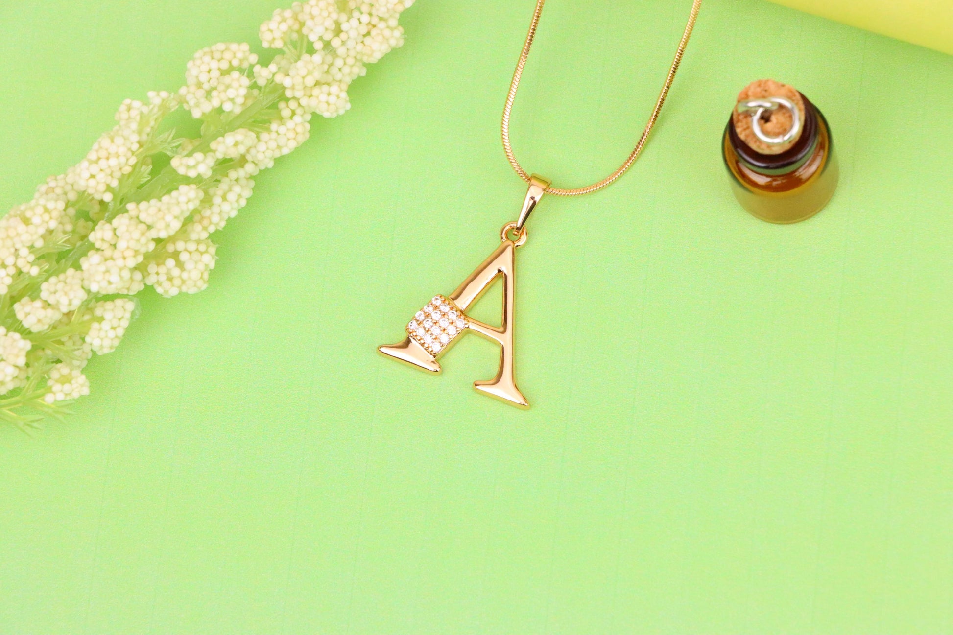 Elegant and personalized pendant featuring the letter "A" accented with crystals, crafted in rose gold for a timeless look.