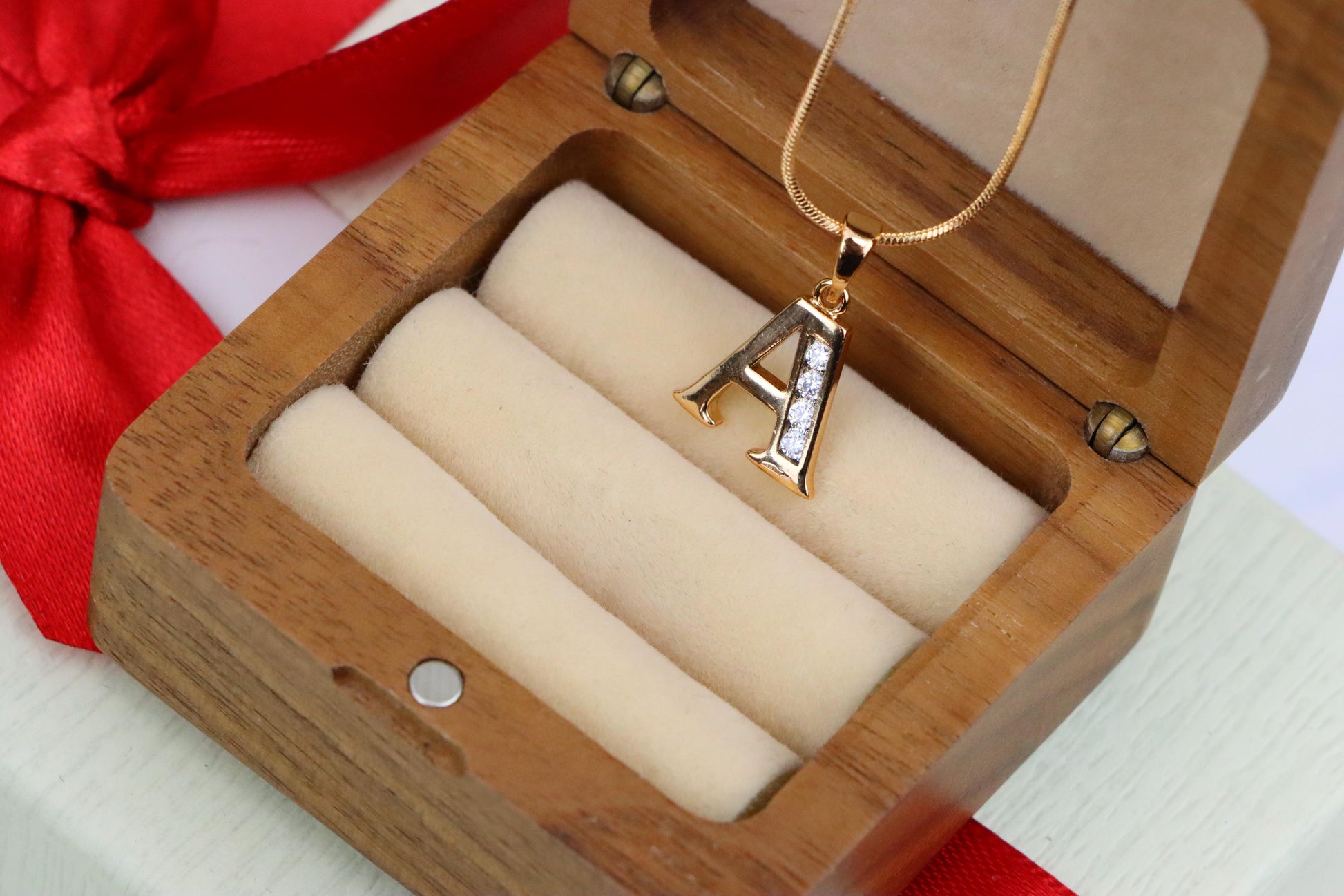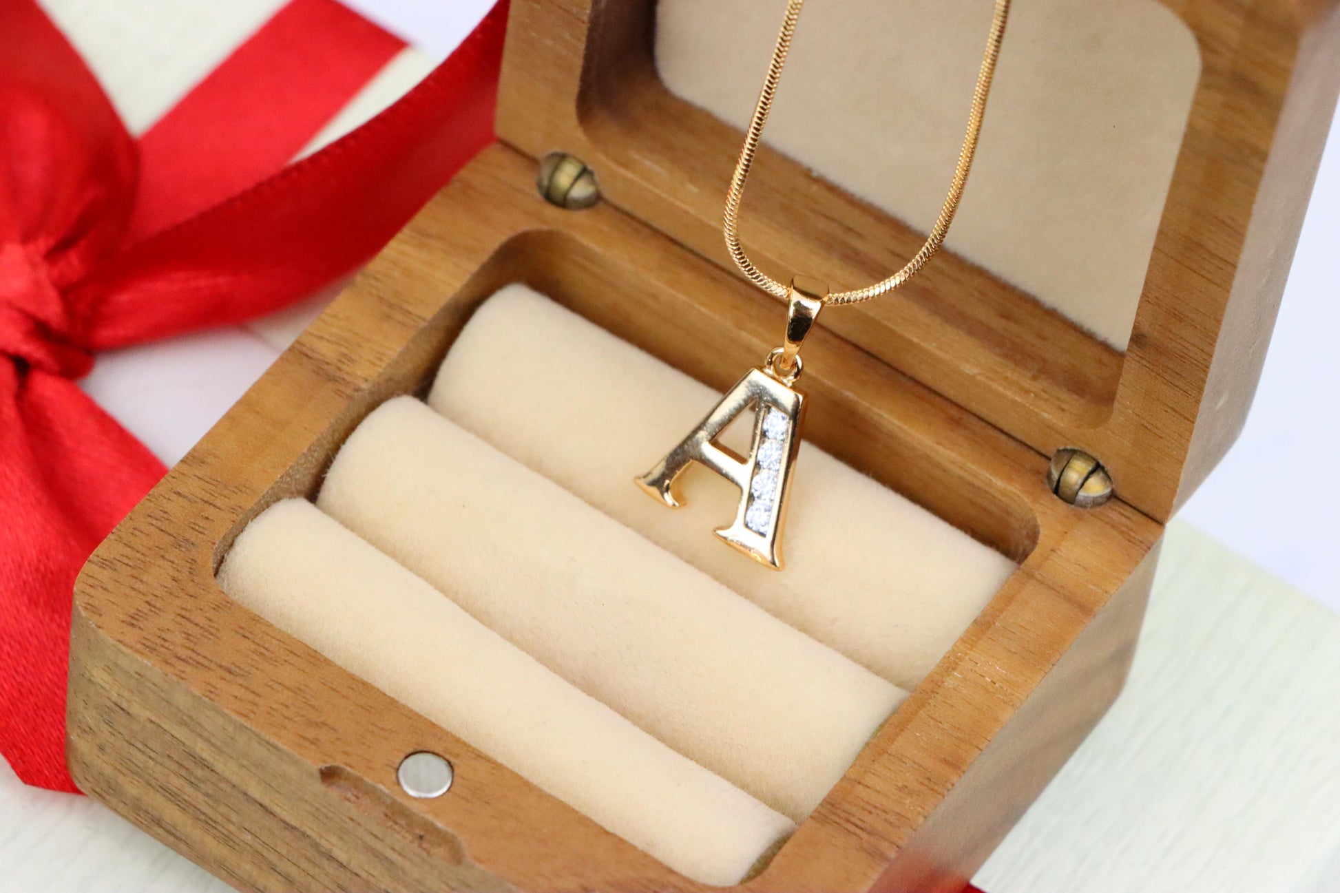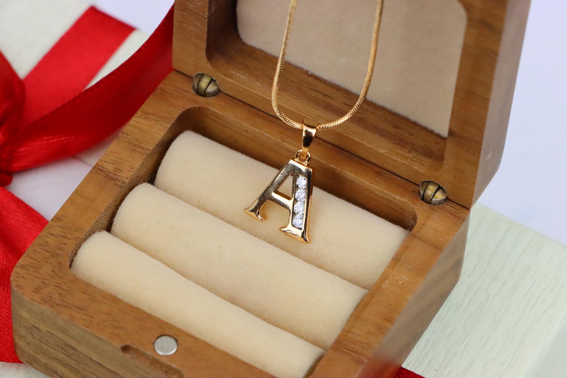 Rose Gold Letter A Pendant with Crystals – 18K Gold Plated Charm, XPPT1350