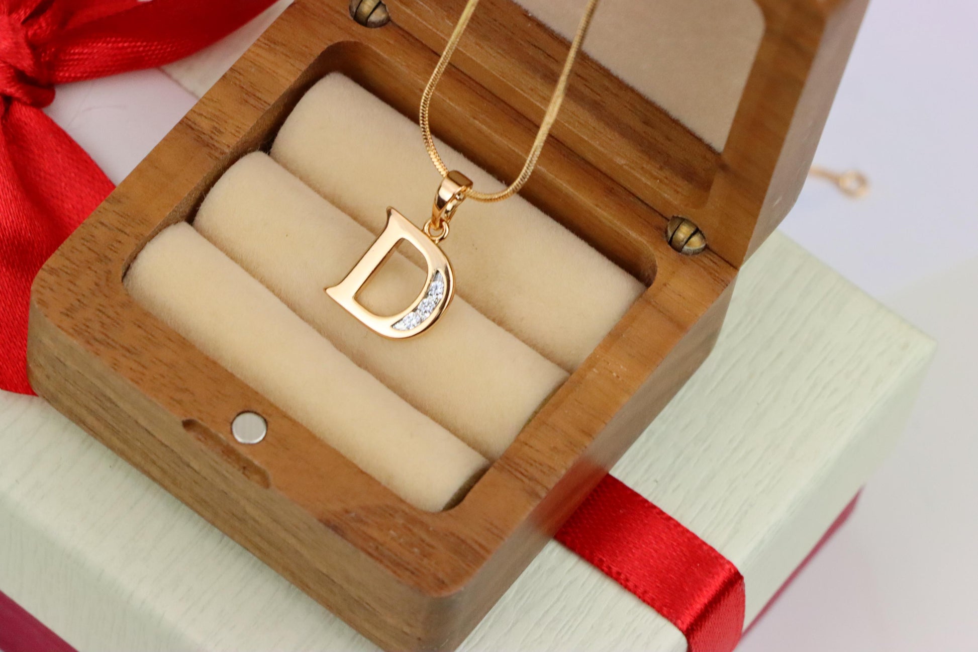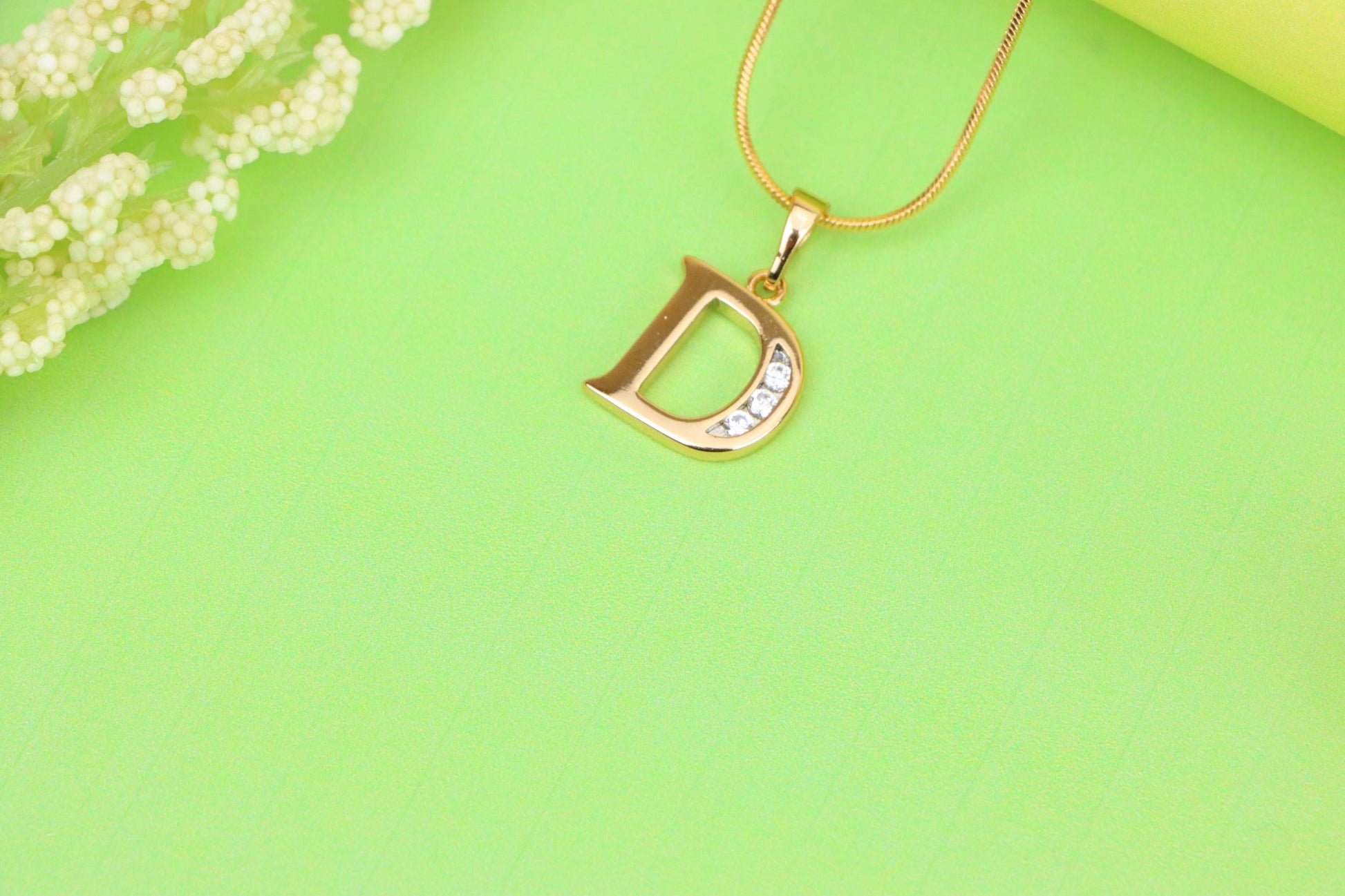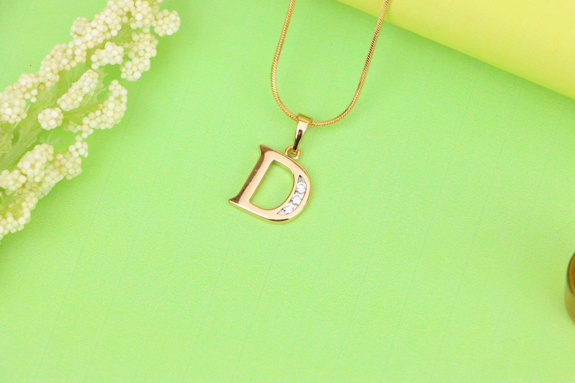 Rose Gold Letter D Pendant with Crystals – 18K Gold Plated Charm, XPPT1353