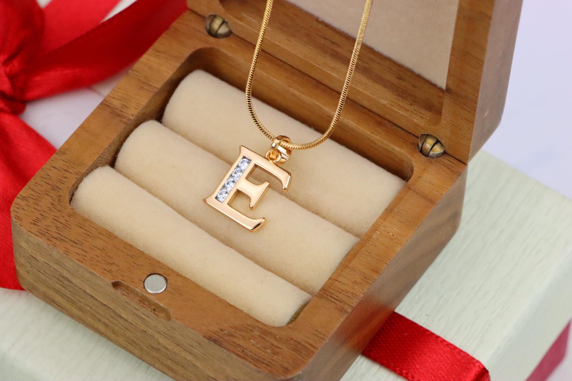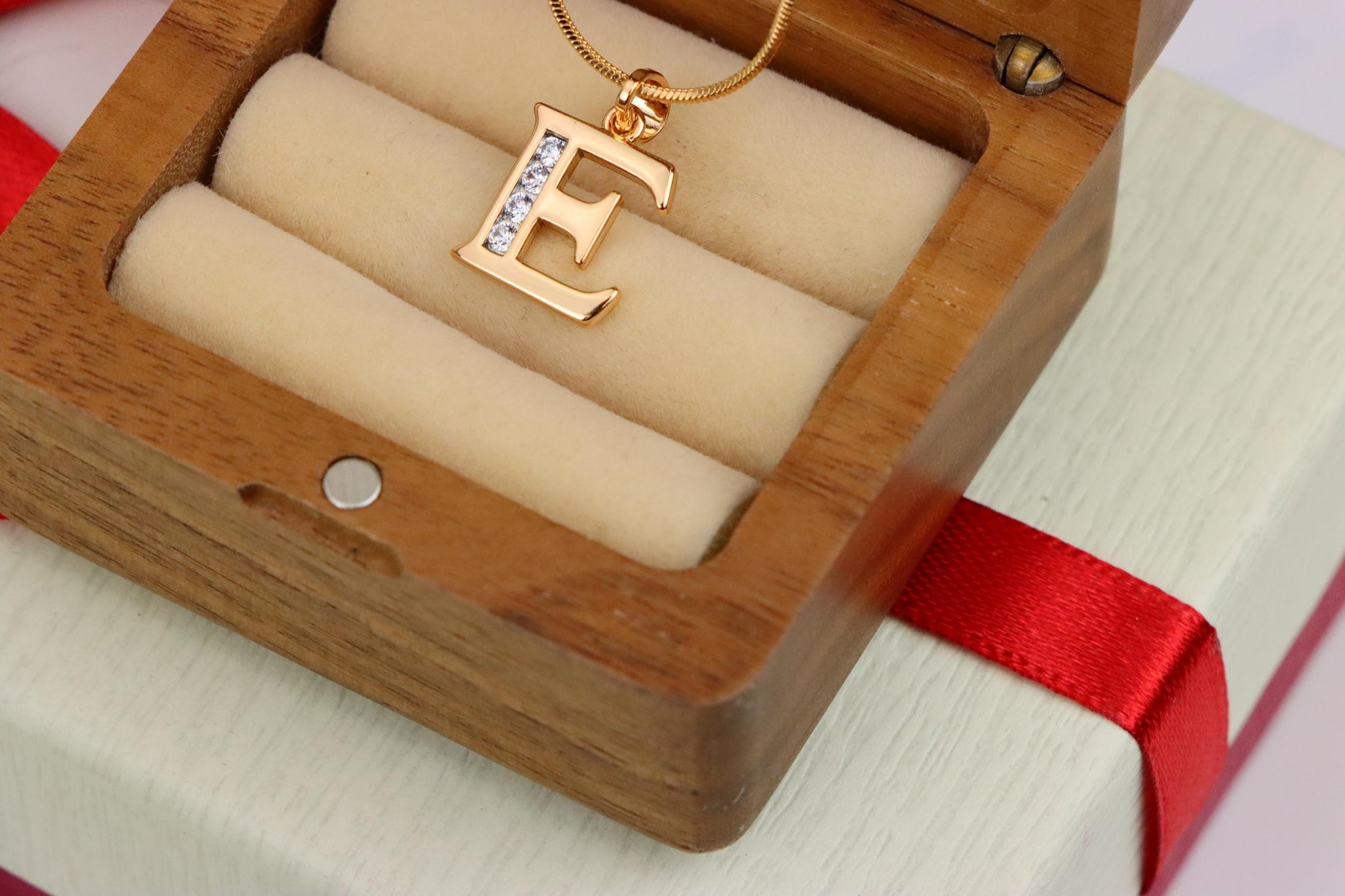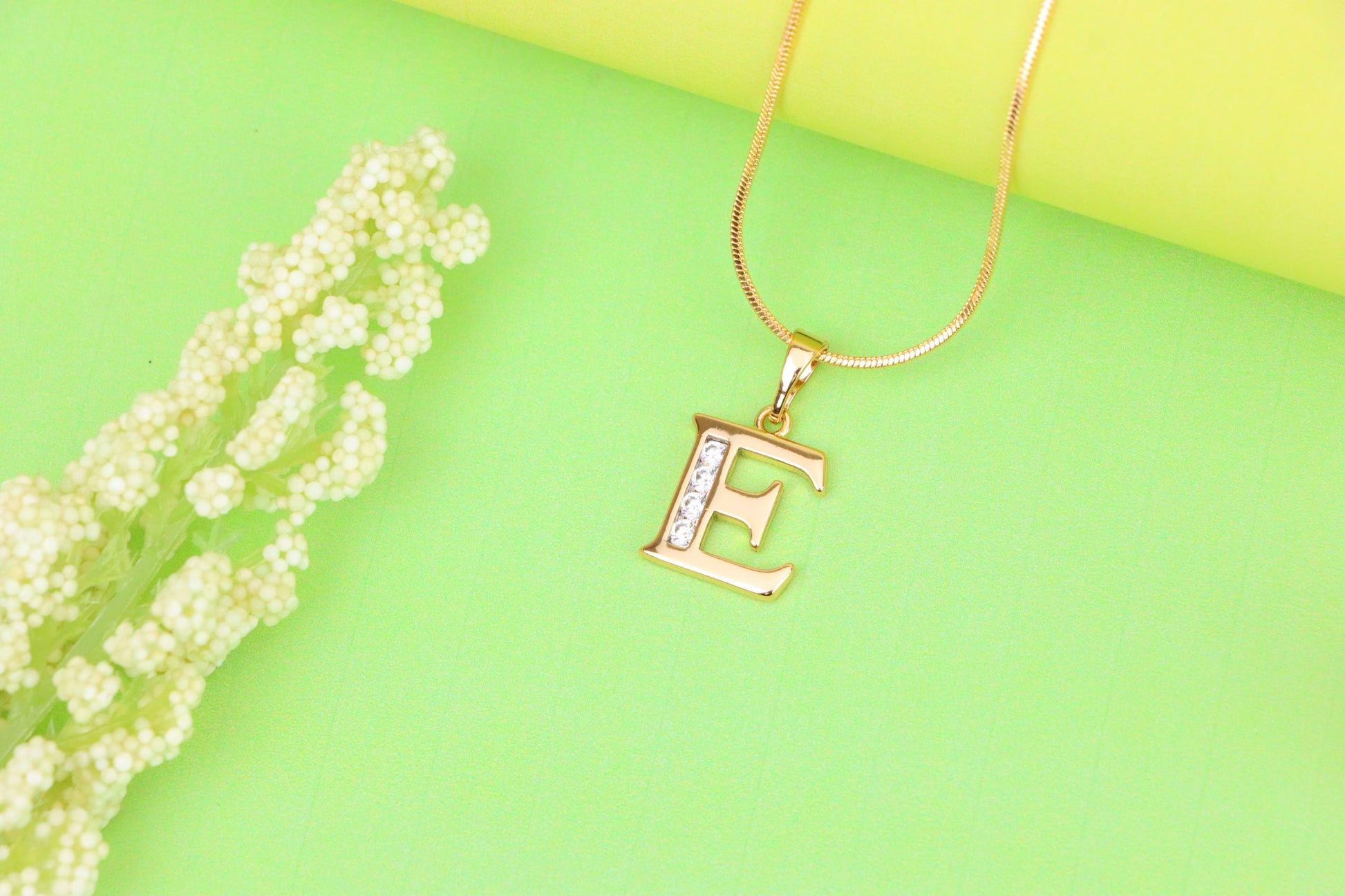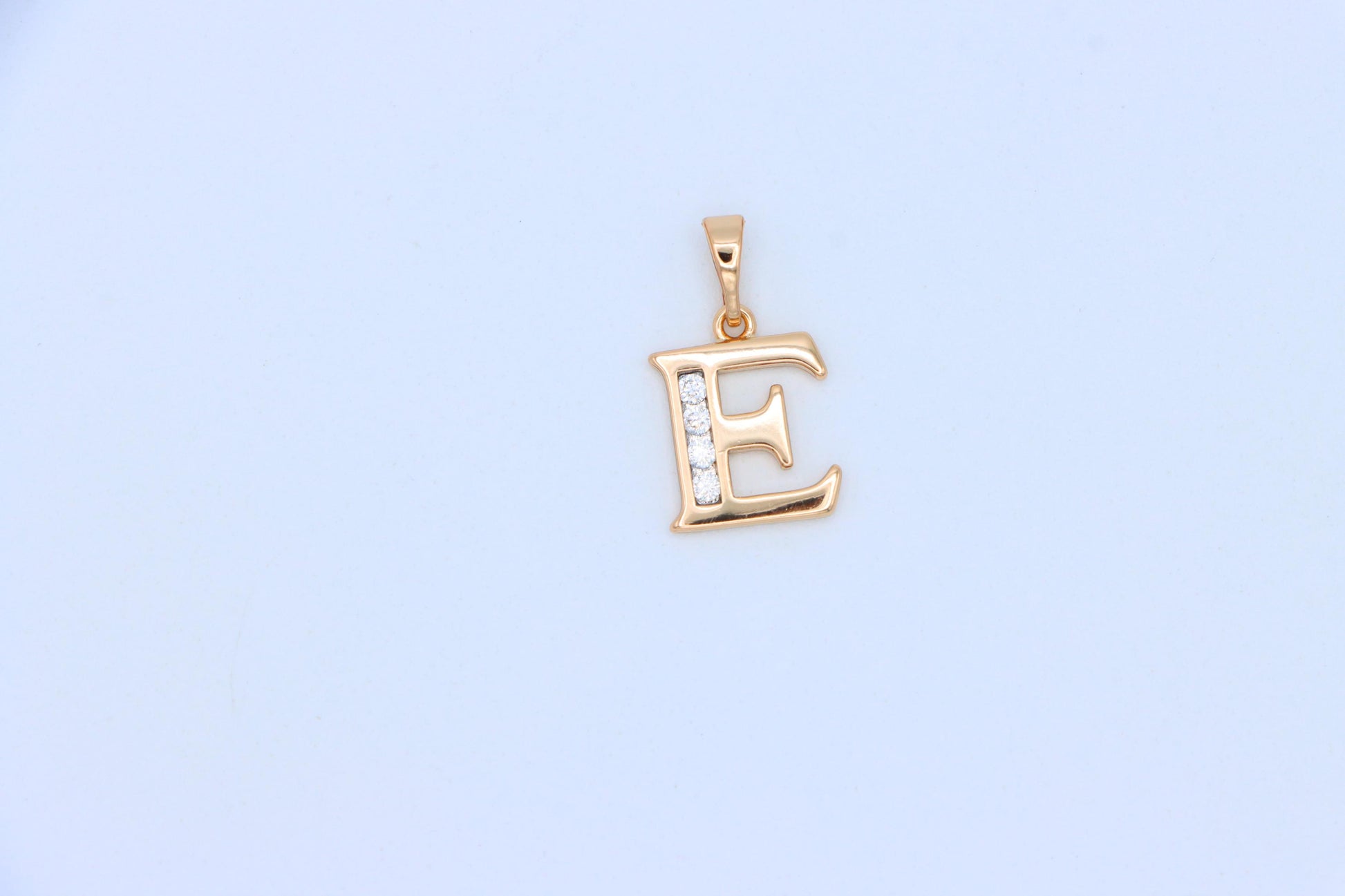 Rose Gold Letter E Pendant with Crystals – 18K Gold Plated Charm, XPPT1354