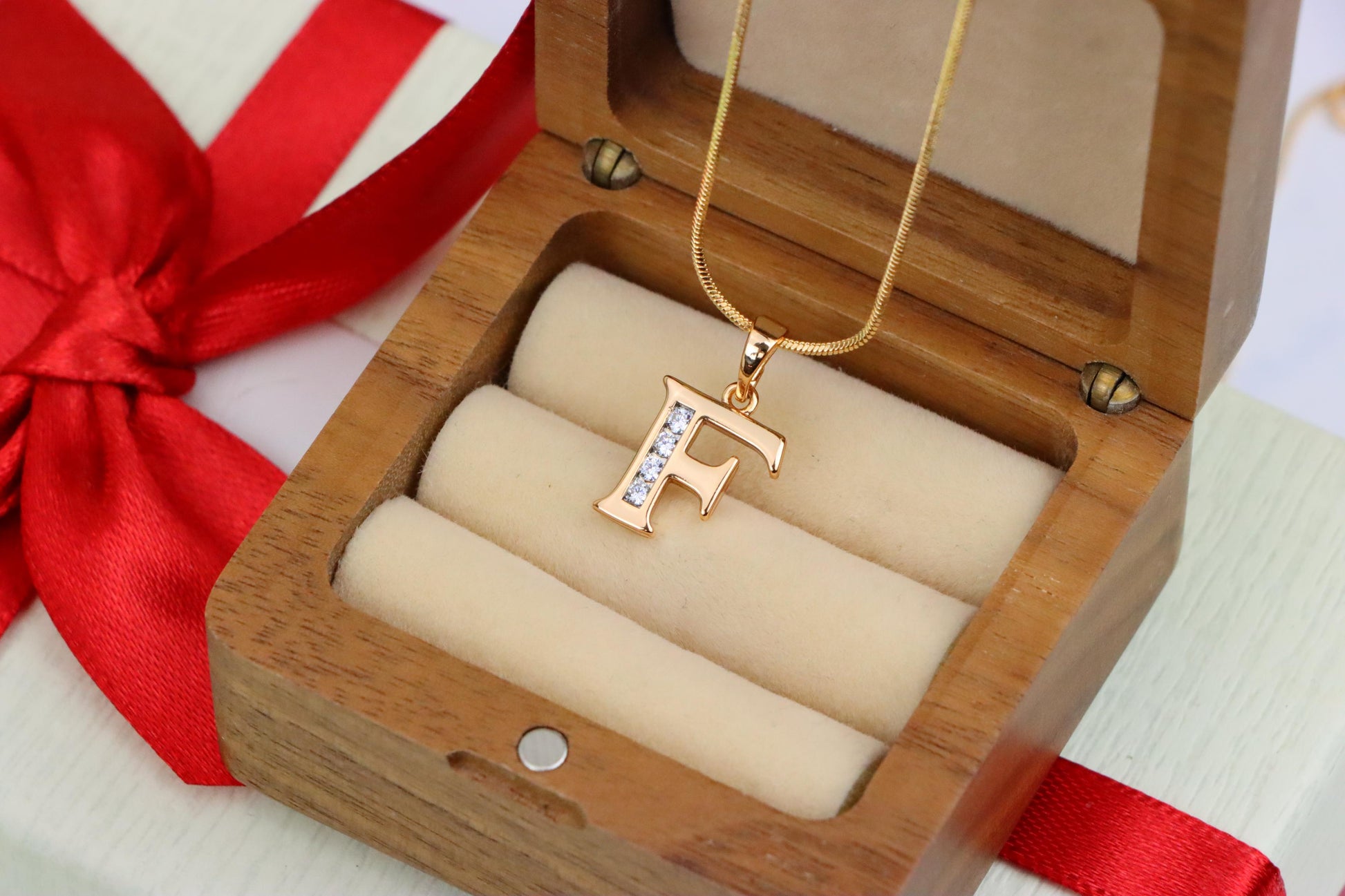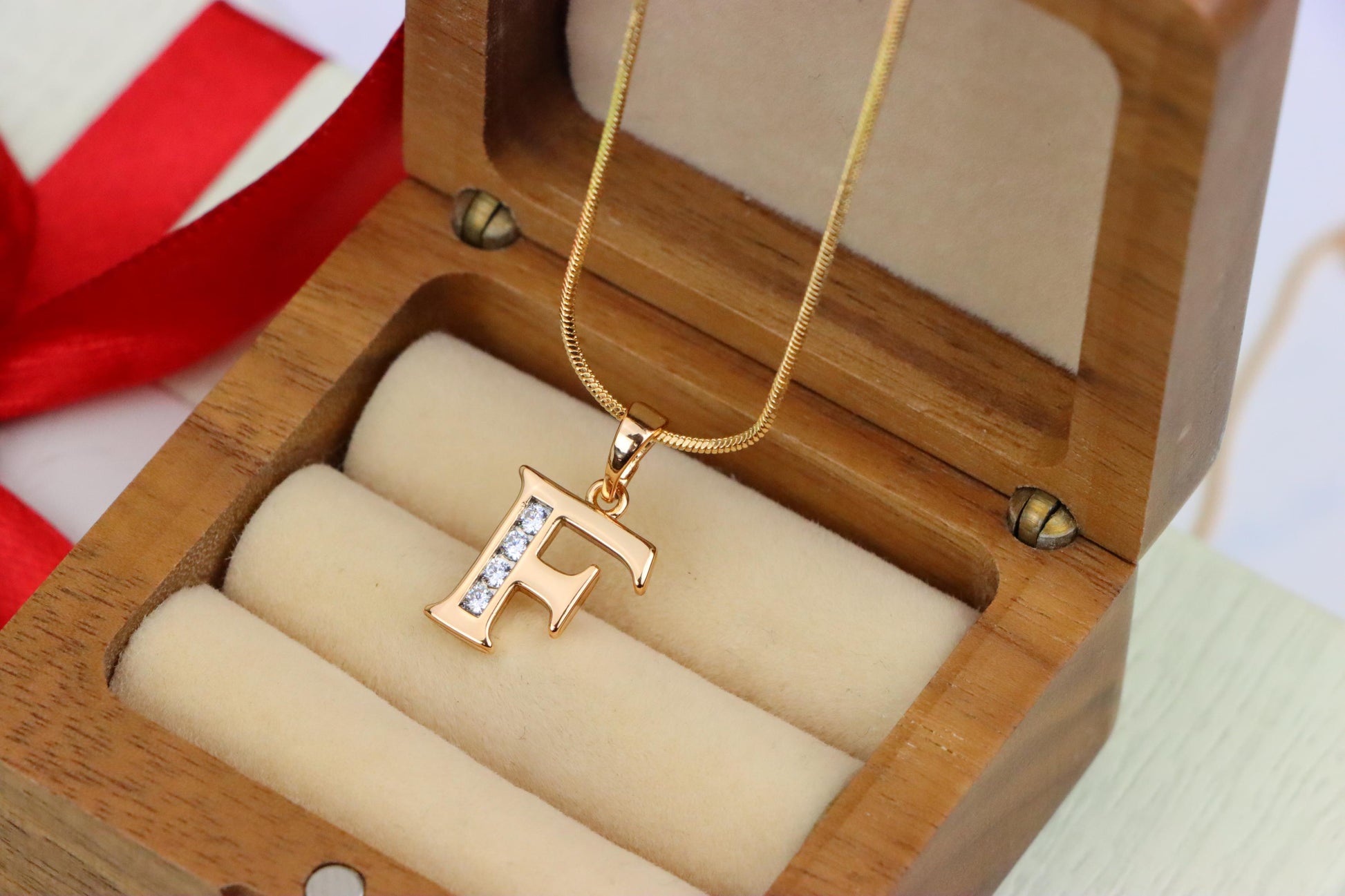 ✅ Elegant letter "F" design with clear crystal accents
