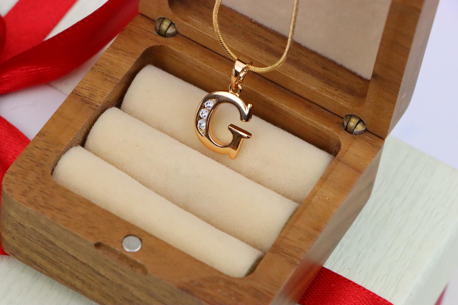 Rose Gold Letter G Pendant with Crystals – 18K Gold Plated Charm, XPPT1356