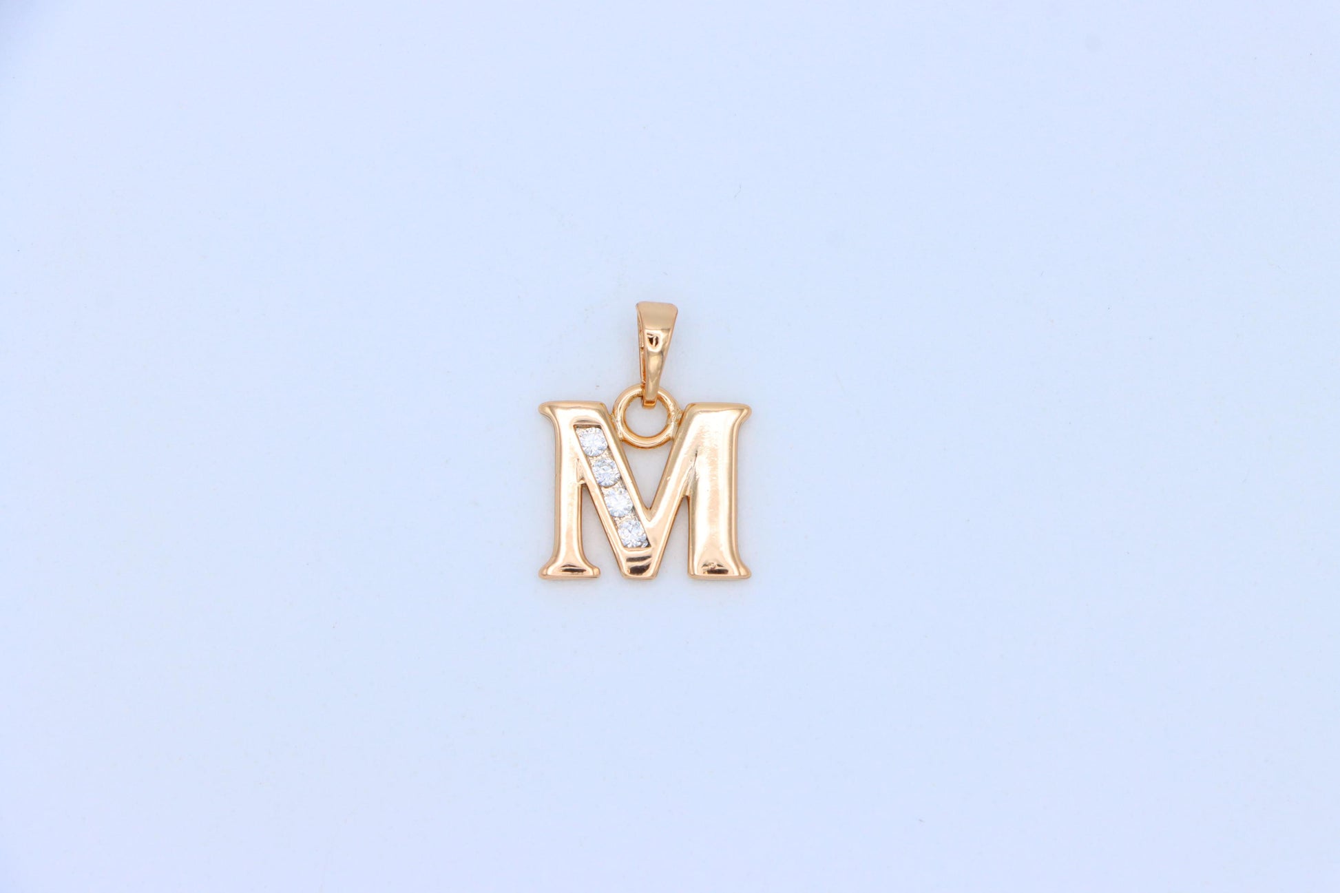 Rose Gold Letter M Pendant with Crystals – 18K Gold Plated Charm, XPPT1362
