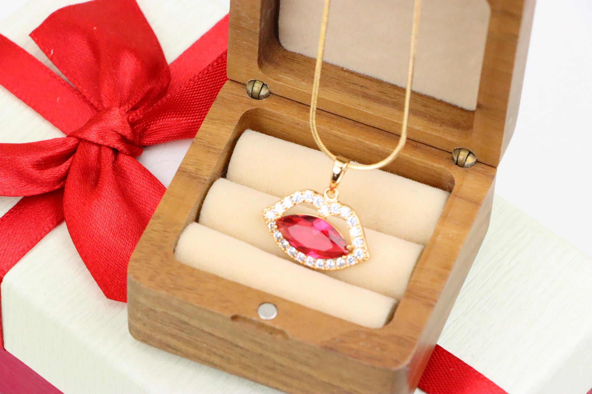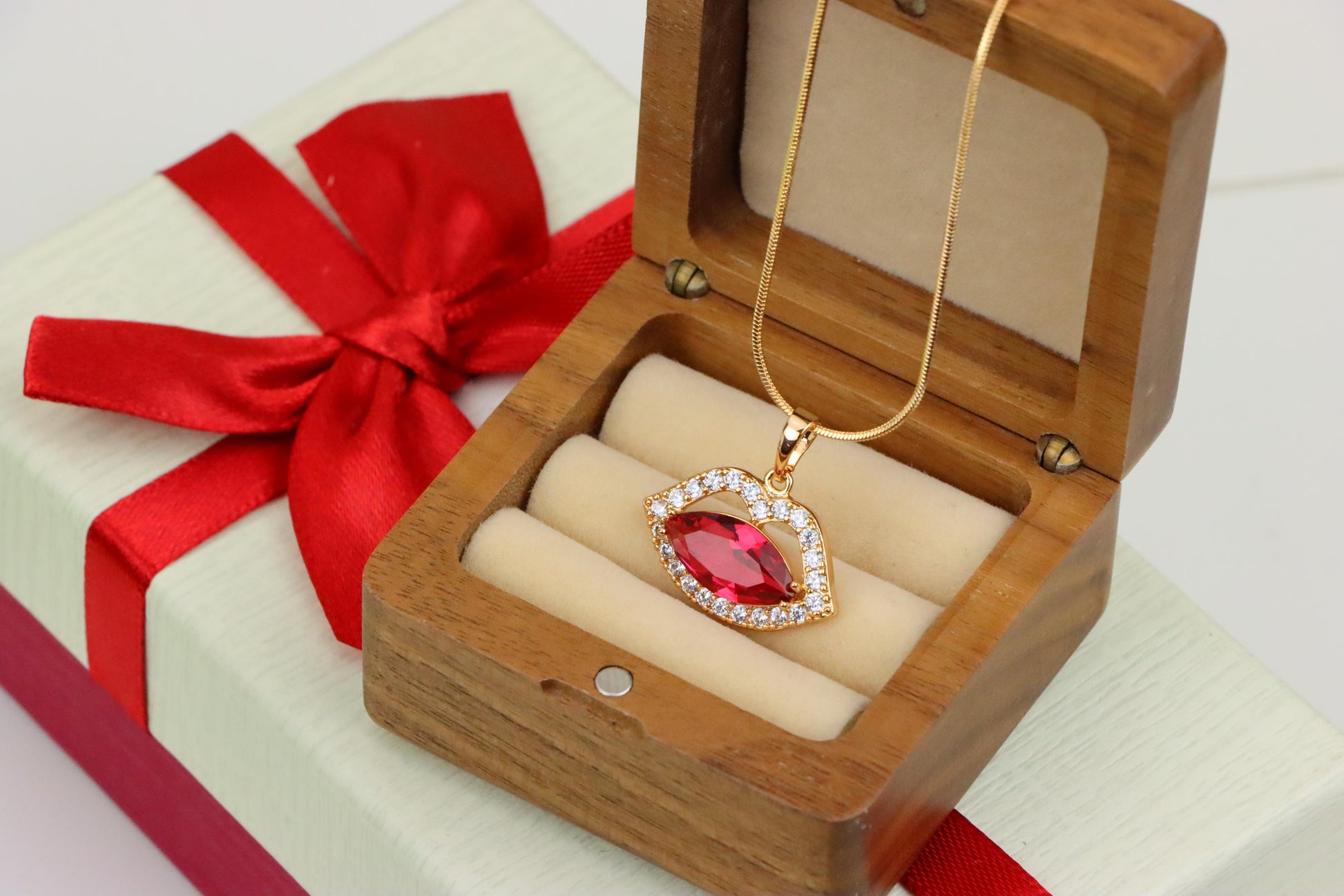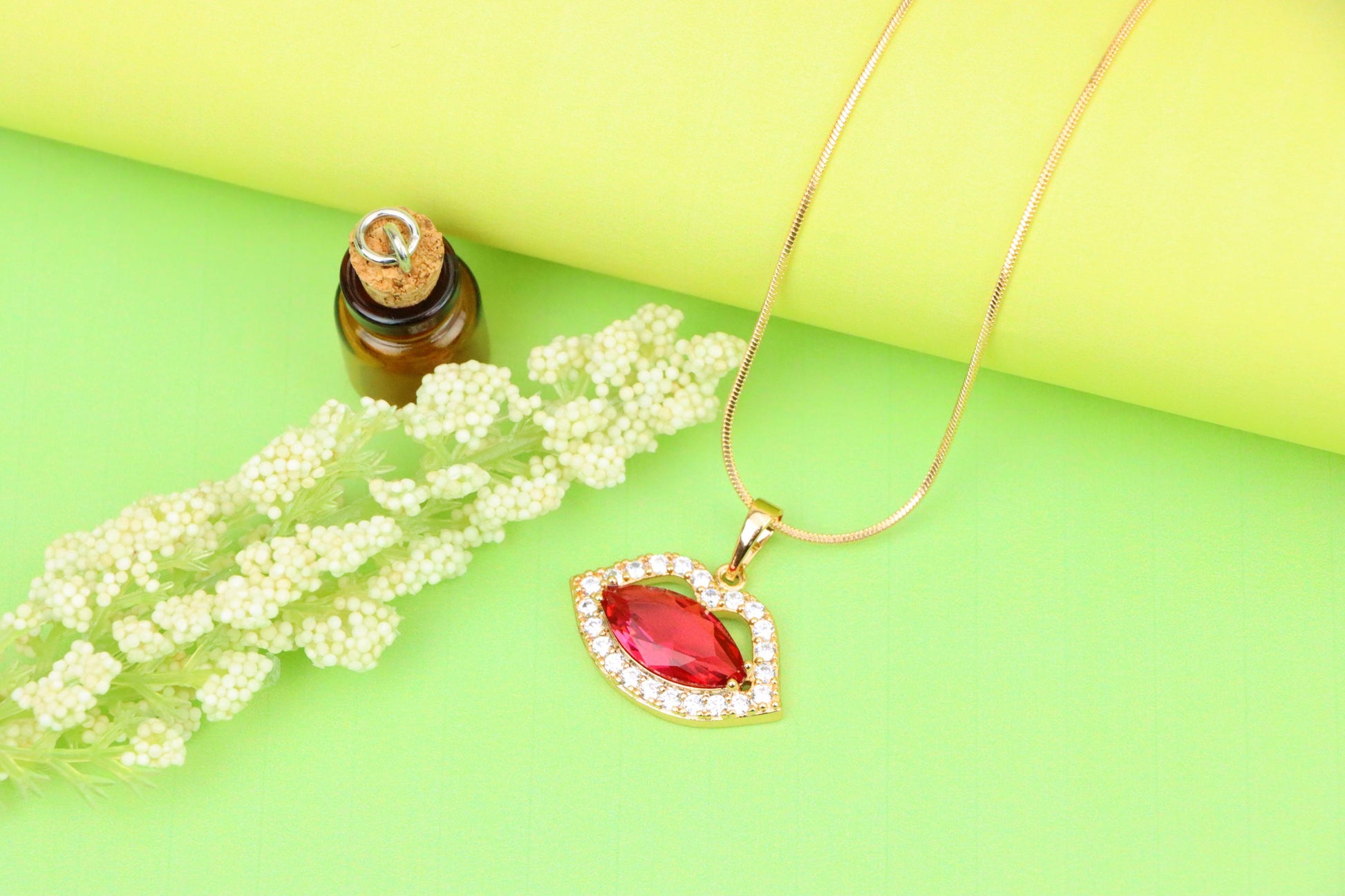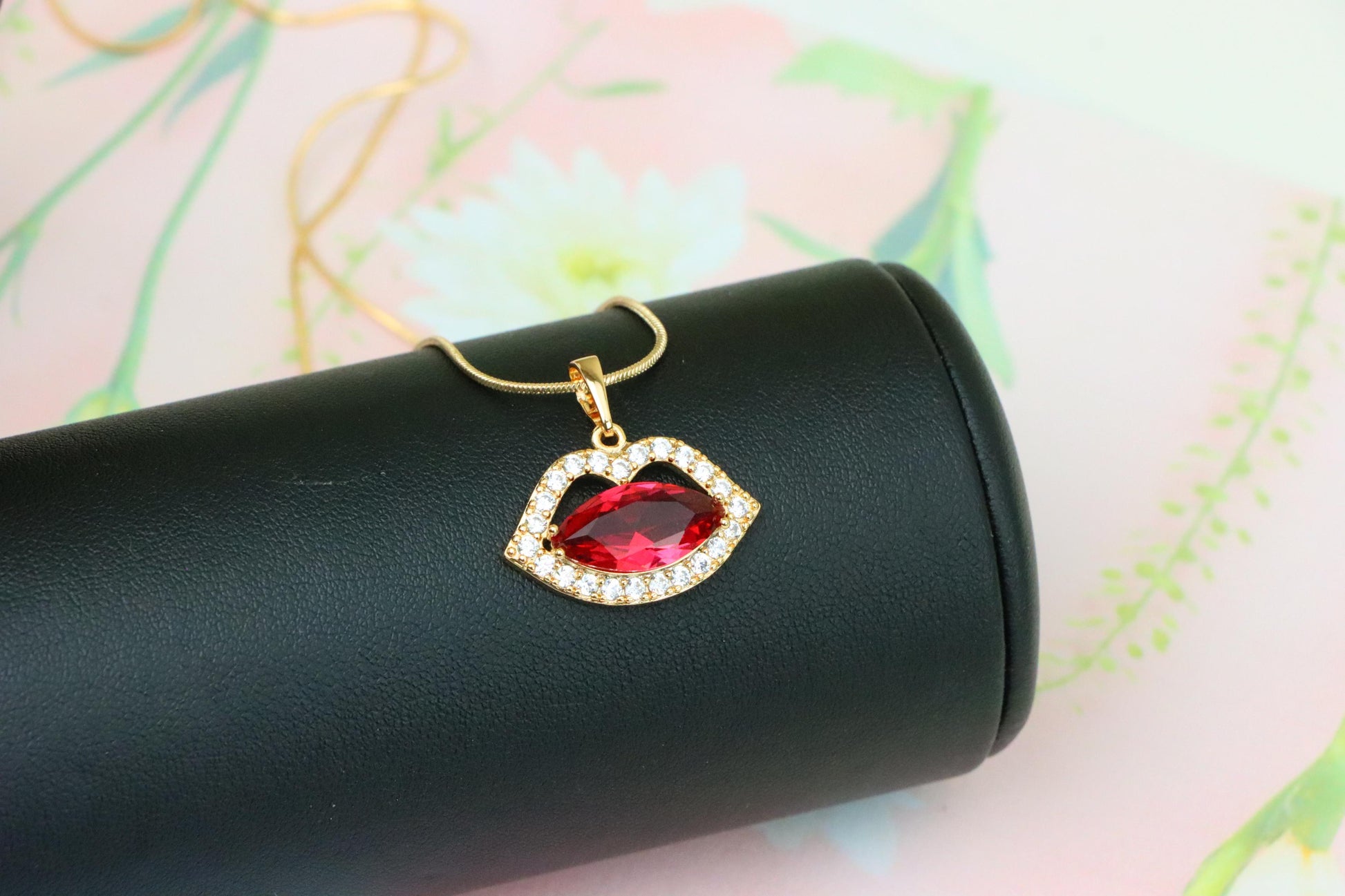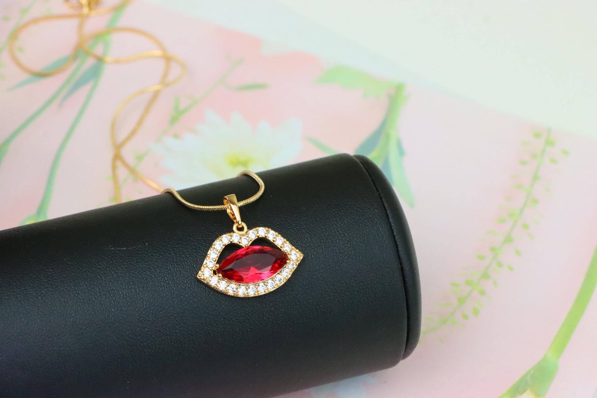 Rose Gold Lips Pendant with Red Stone – Bold & Stylish, XPPT1206