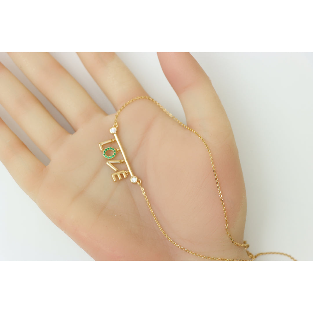 ✔ Unique dangling LOVE charm with sparkling green crystal "O"