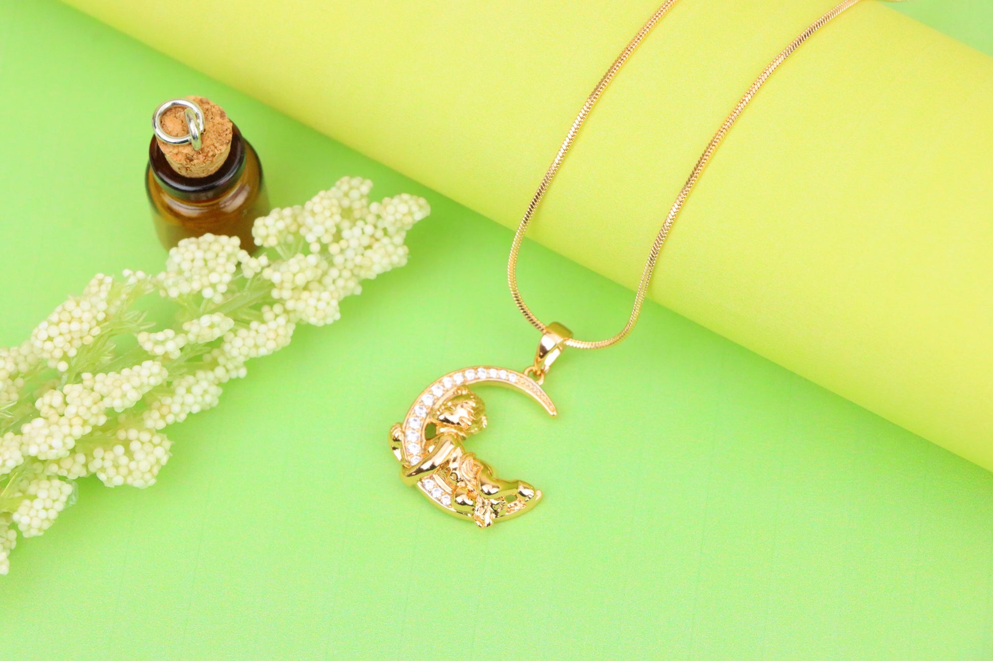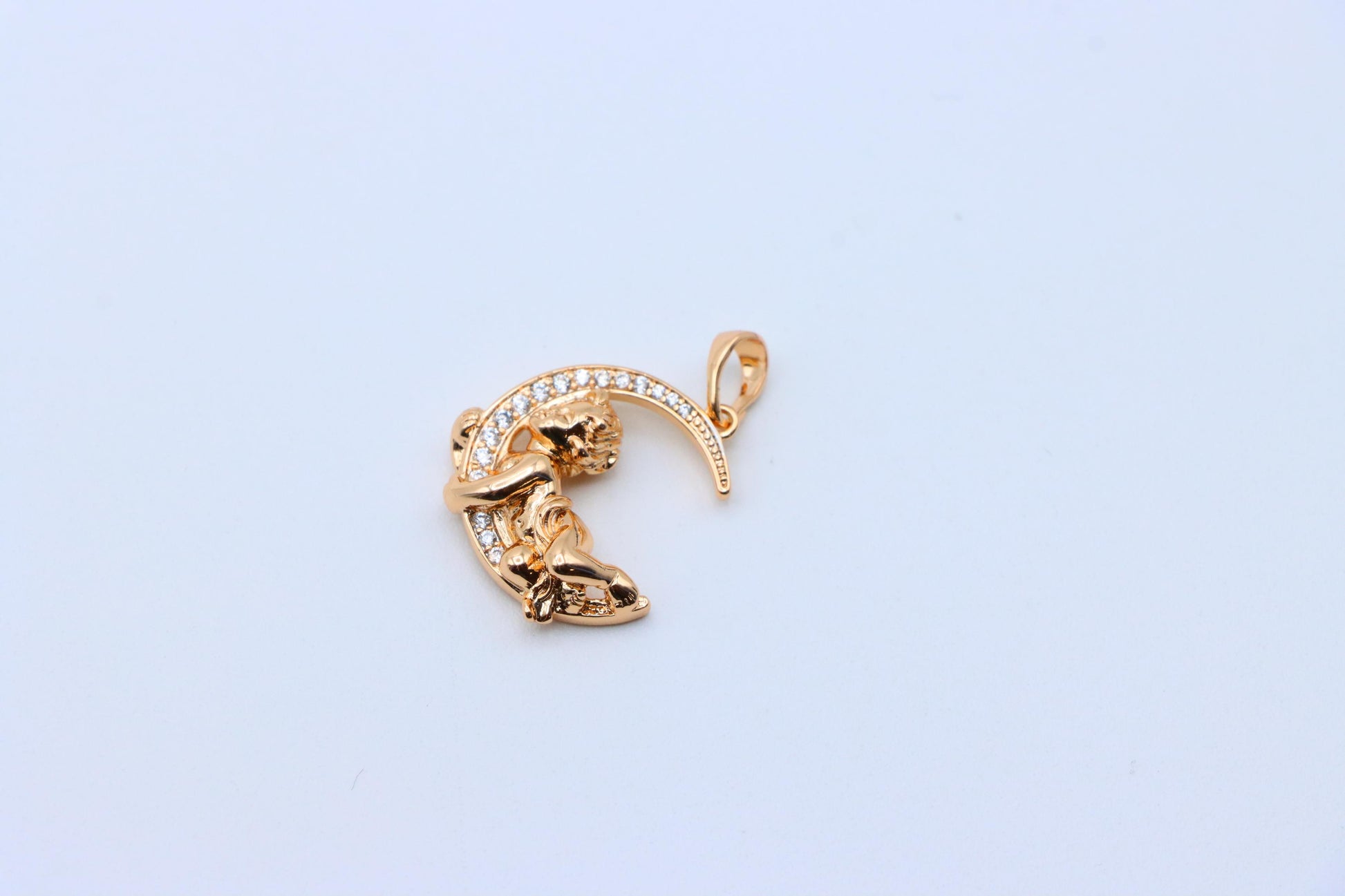 Rose Gold Moon and Angel Pendant with Sparkling CZ Accents, XPPT1234