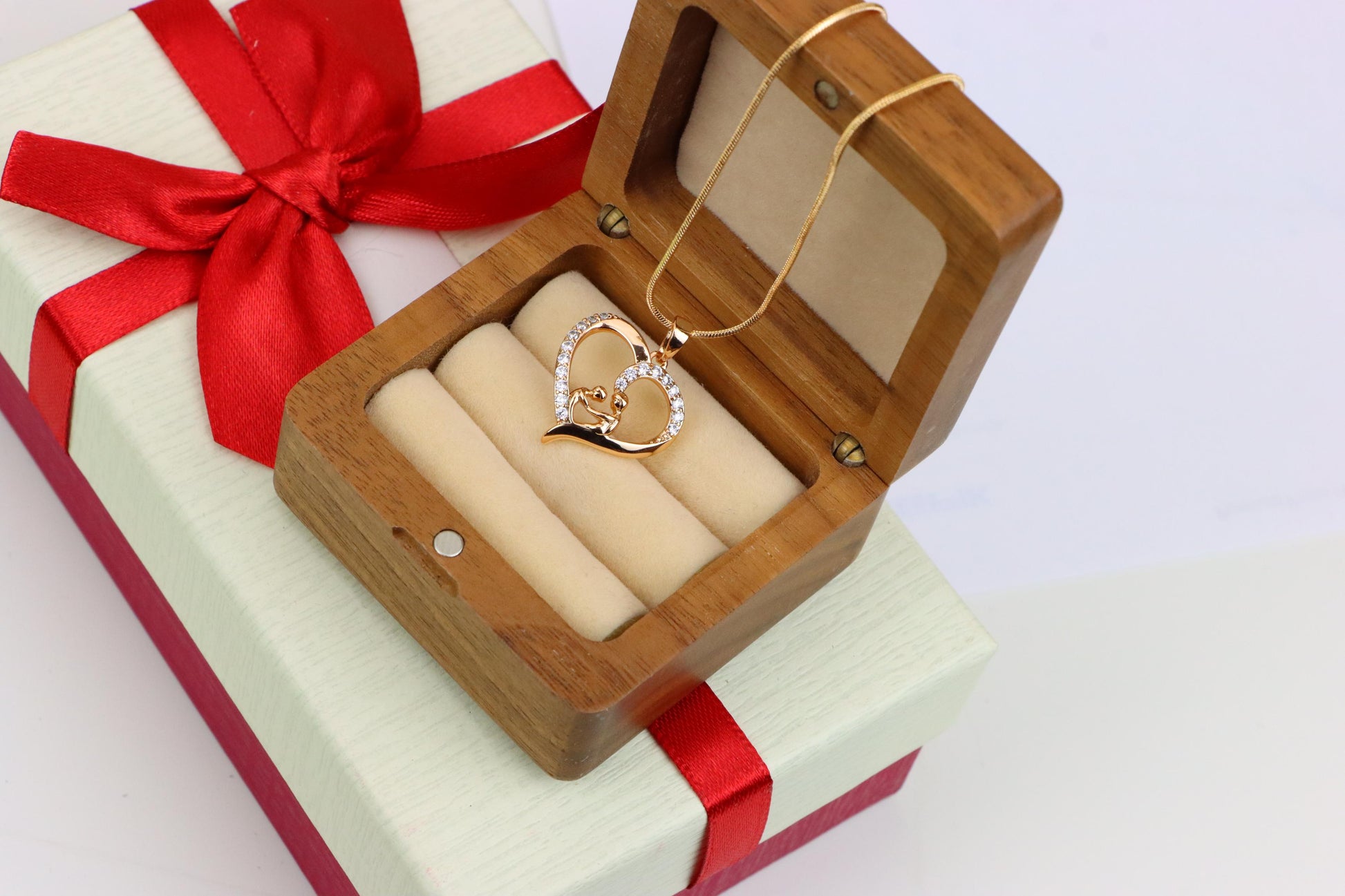 Rose Gold Mother & Child Heart Pendant with Sparkling Stones, XPPT1312