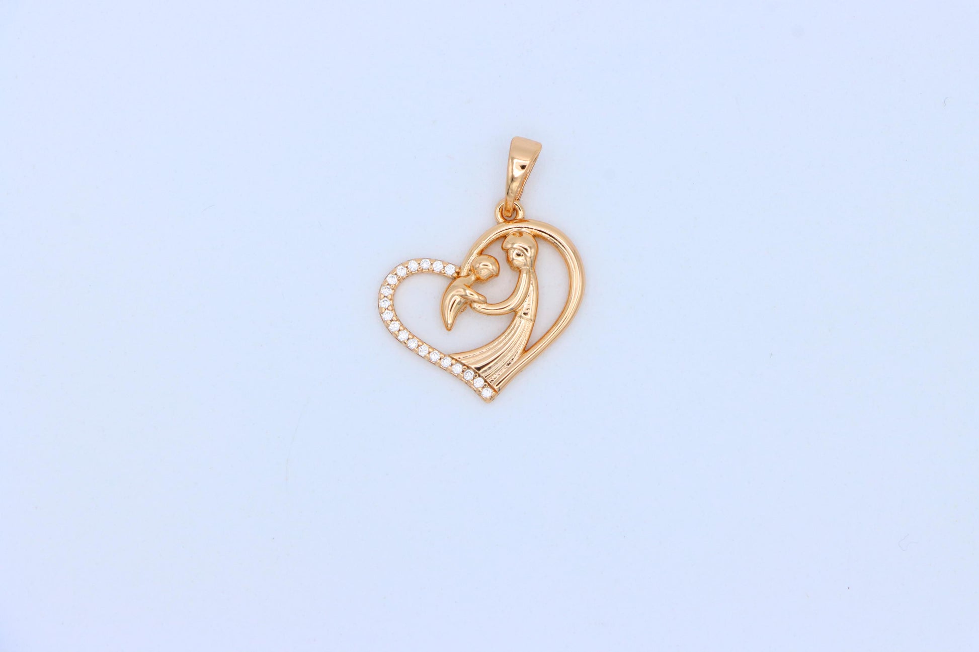 Rose Gold Mother and Child Heart Pendant with Sparkling Detail, XPPT1327