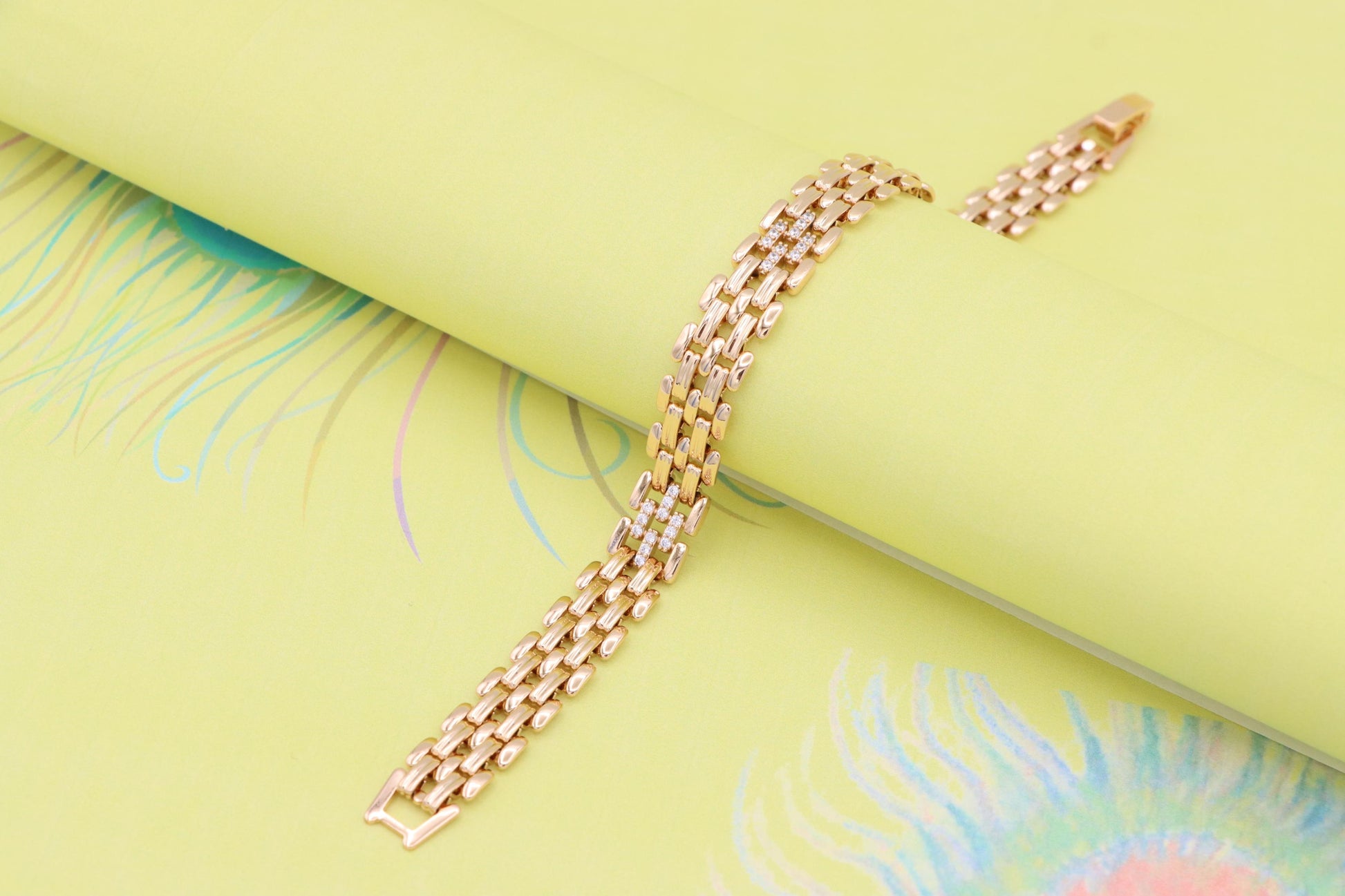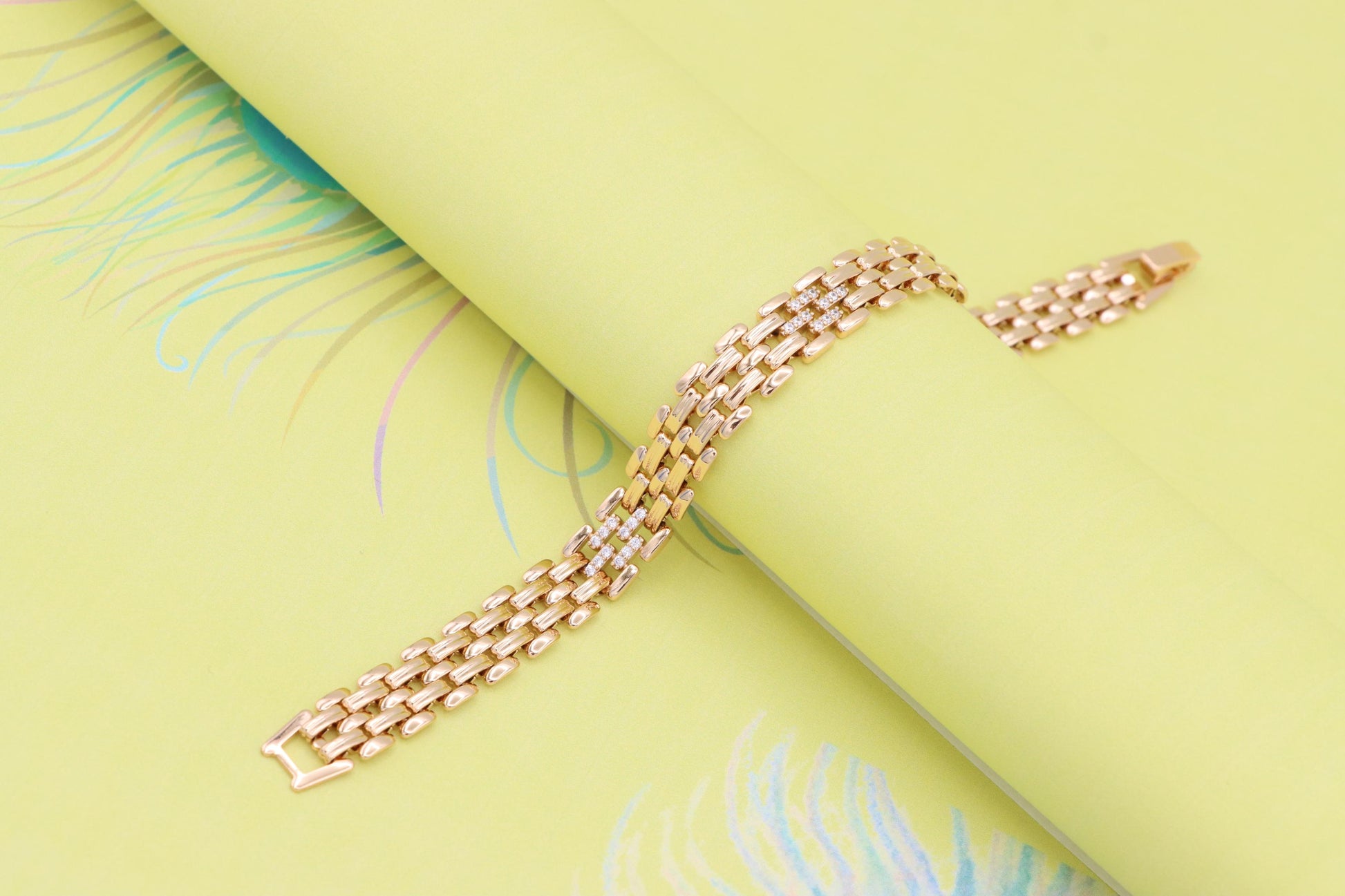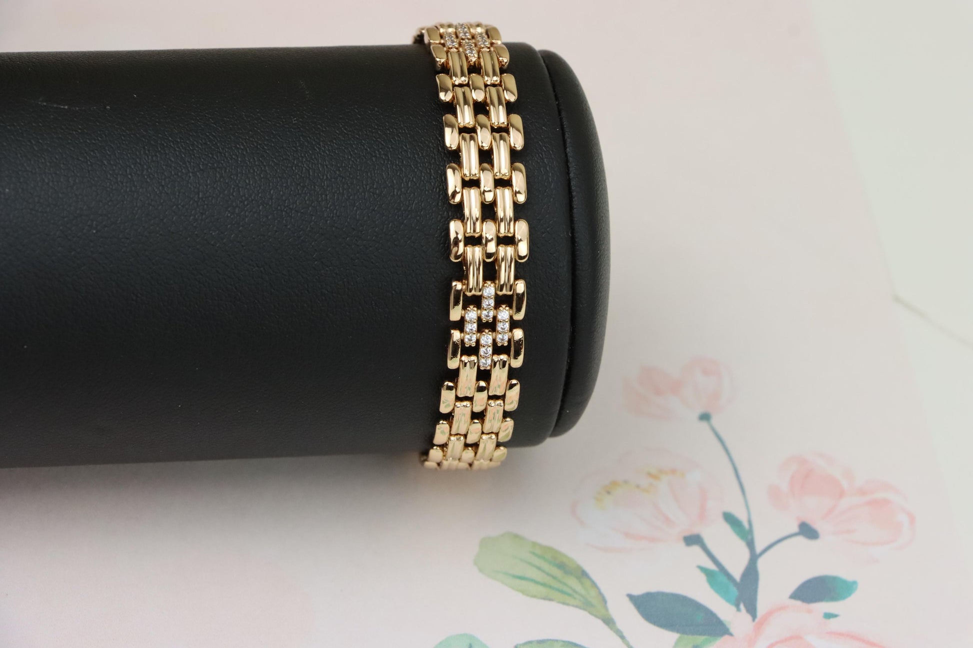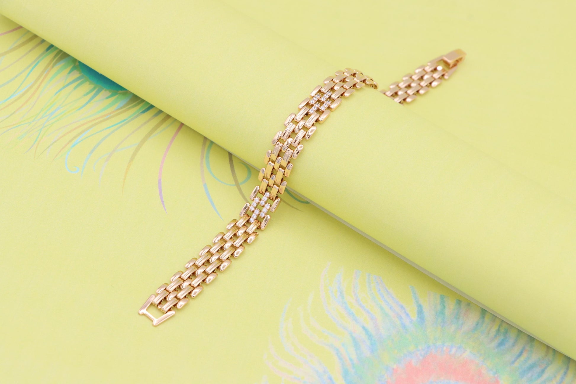 A luxurious and intricate bracelet with polished links and sparkling crystal touches.