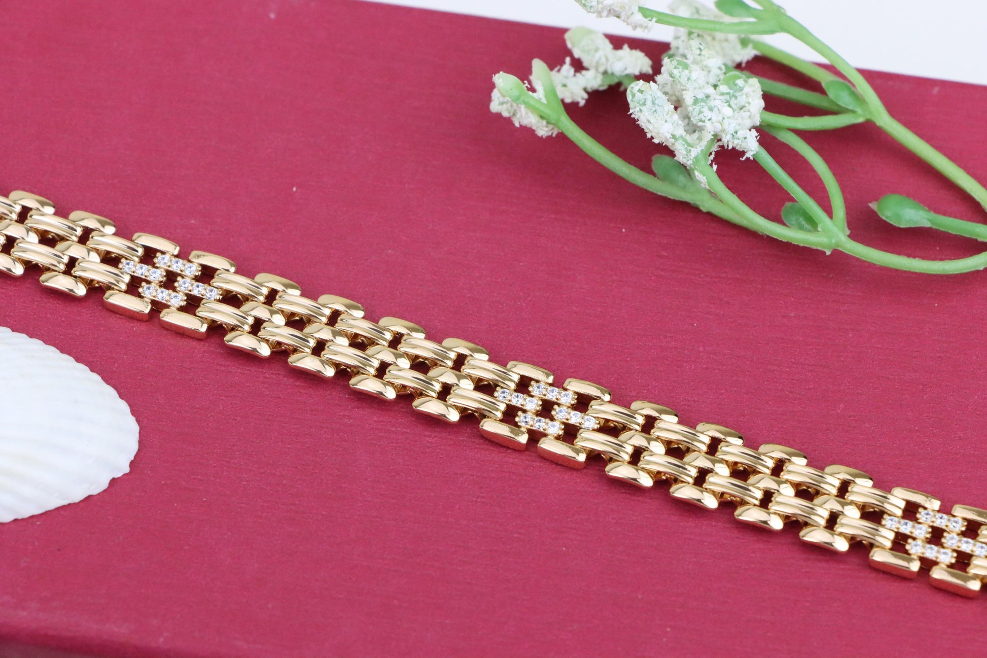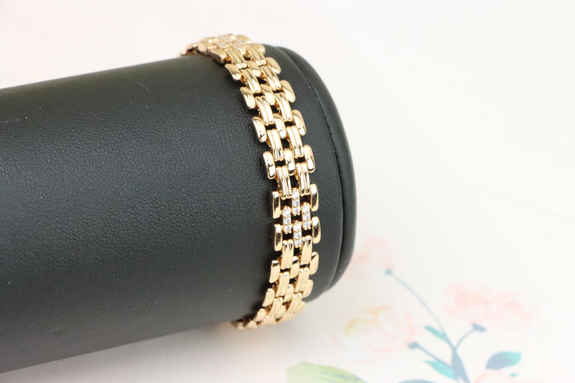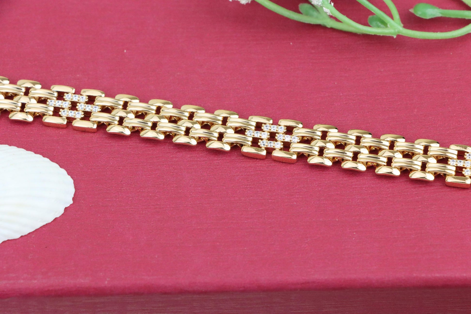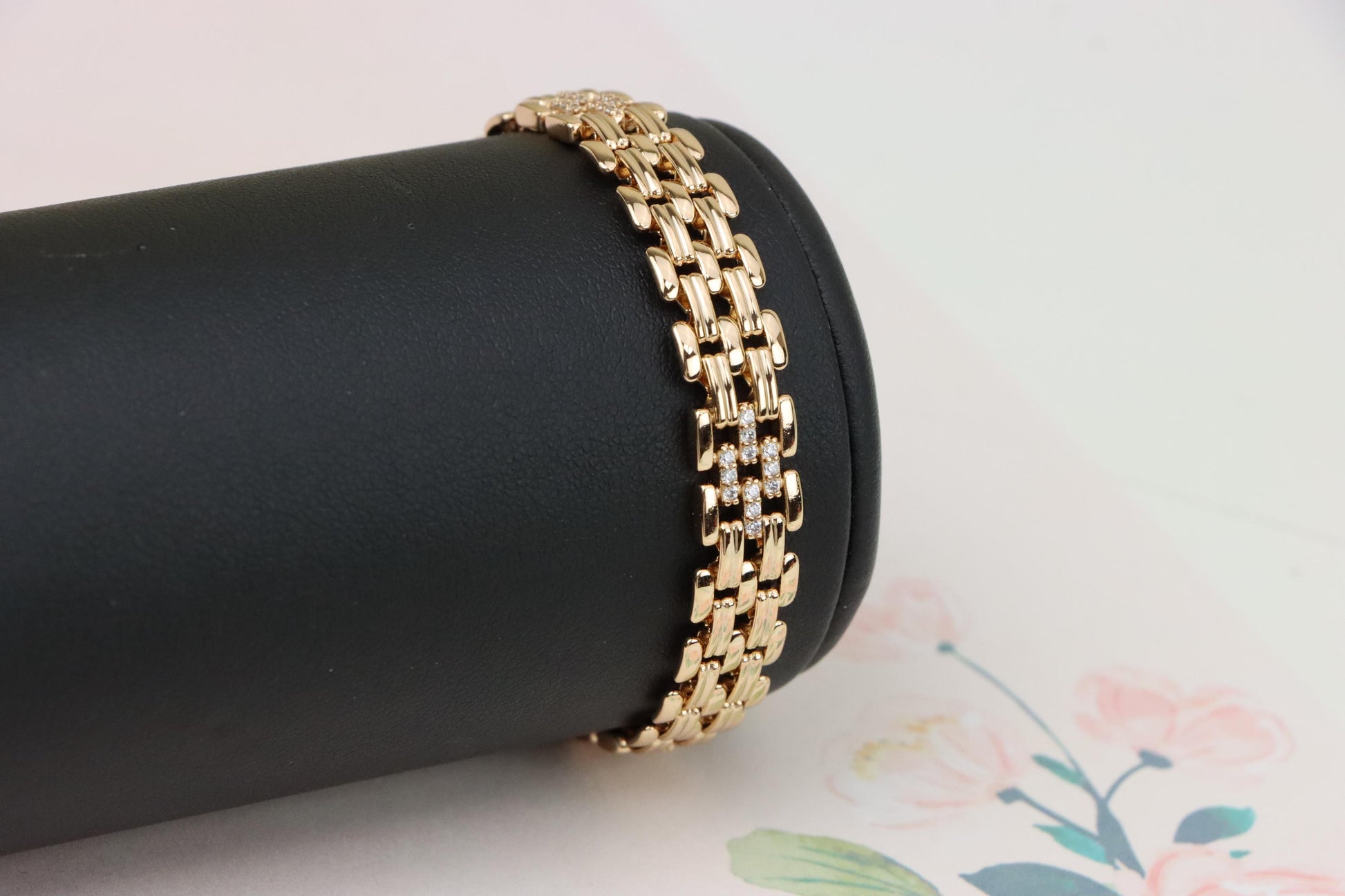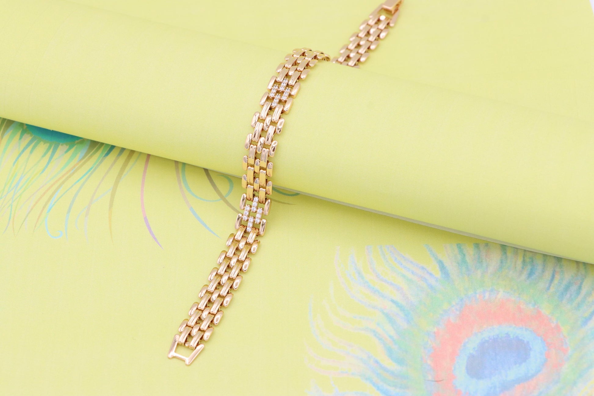 A luxurious and intricate bracelet with polished links and sparkling crystal touches.