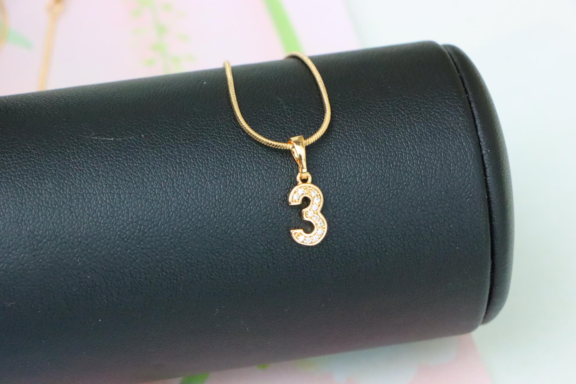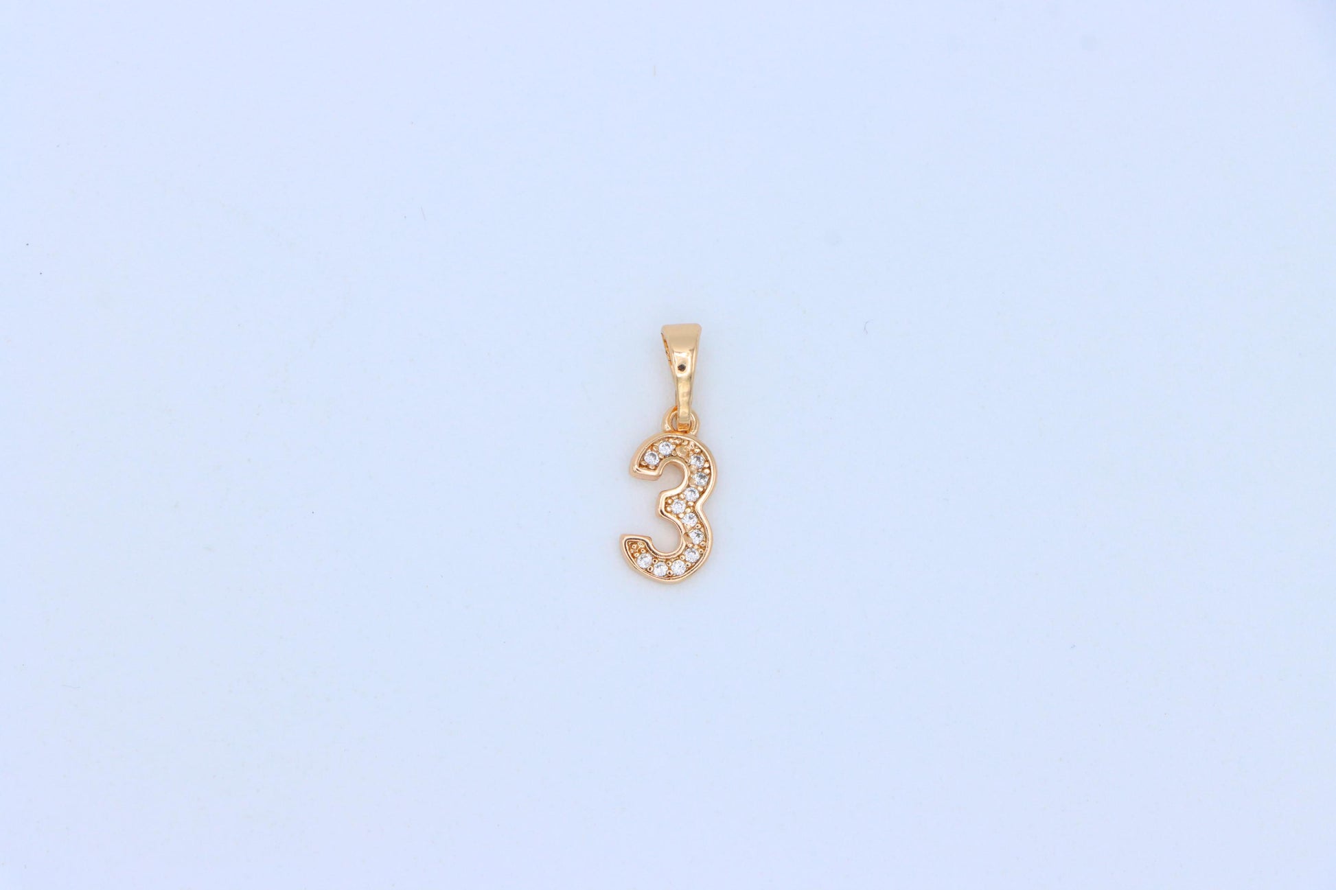 Charming rose gold number "3" pendant with dazzling crystals. Crafted from premium brass and coated in 18K gold for a luxurious and lasting shine.