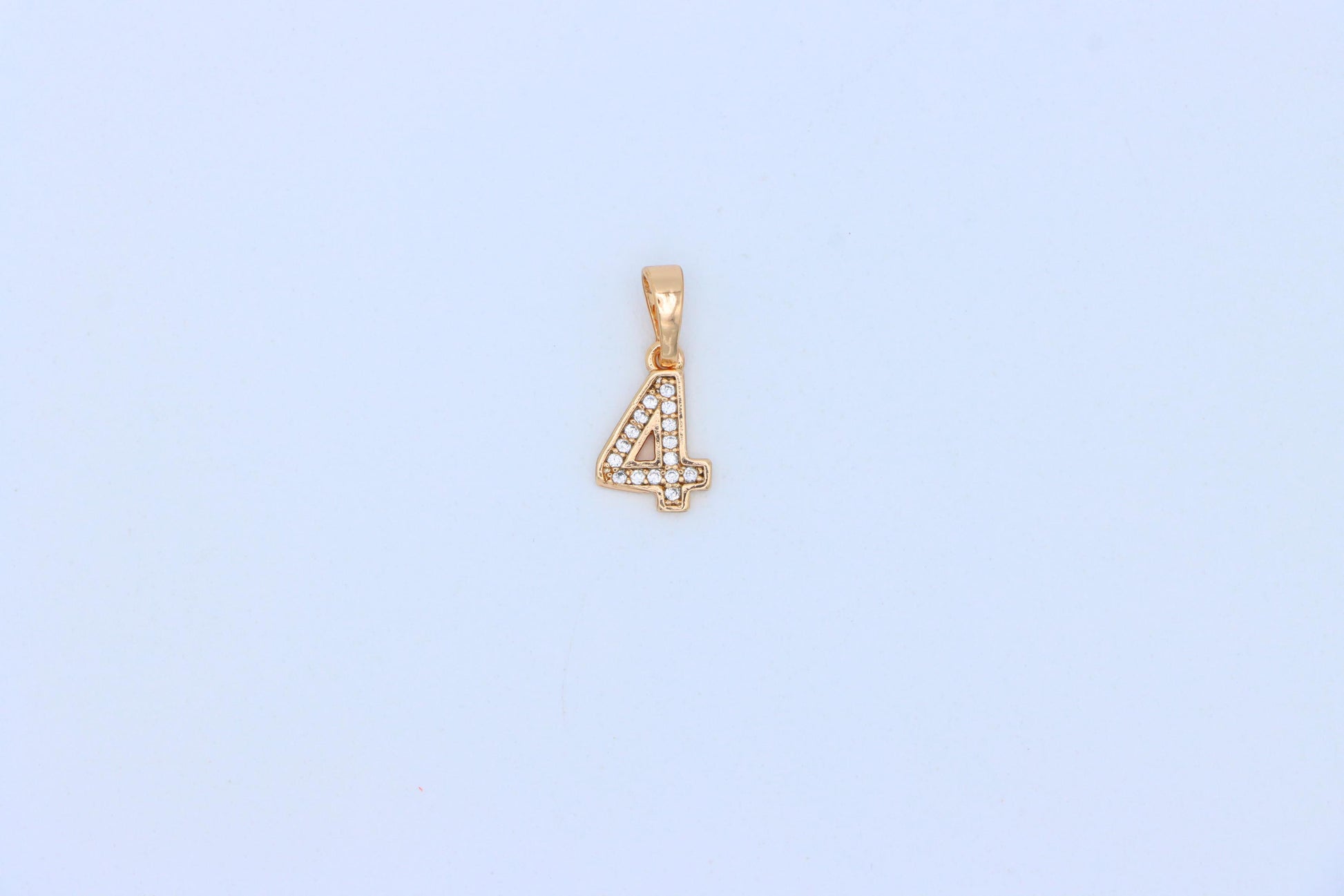 Beautifully designed number "4" rose gold pendant, accented with clear crystals. Made from high-quality brass and finished with radiant 18K gold plating.