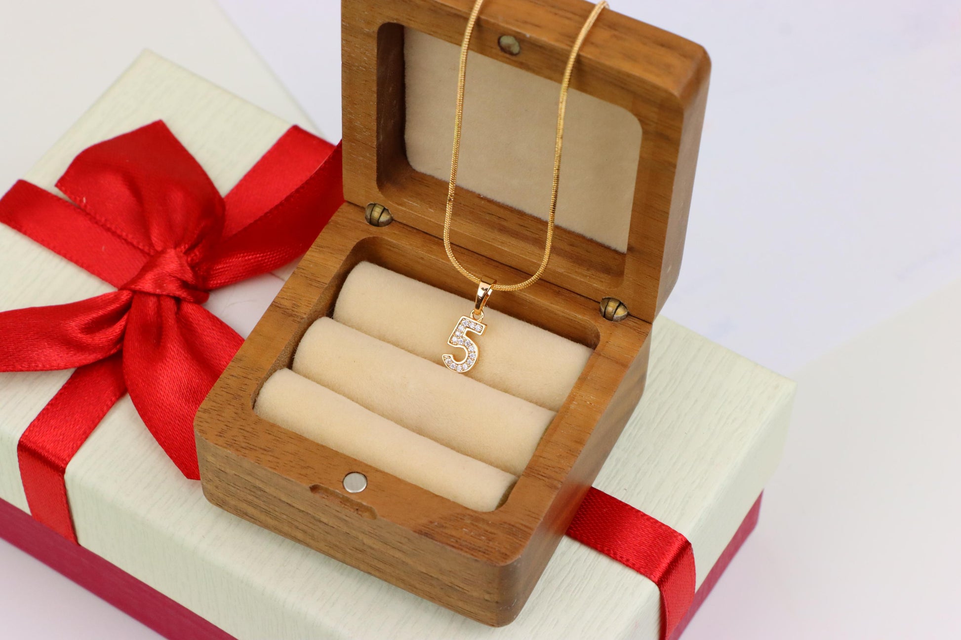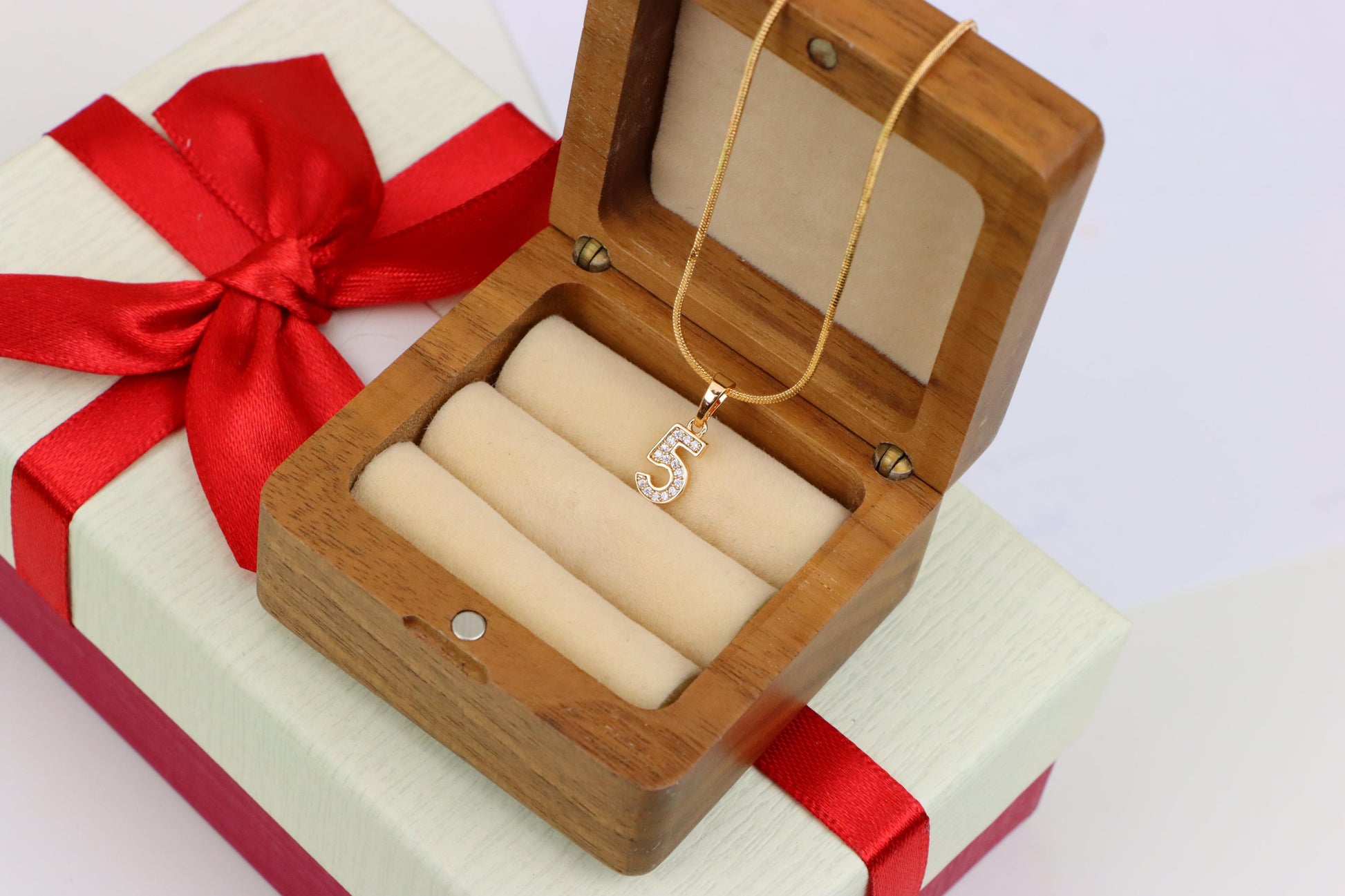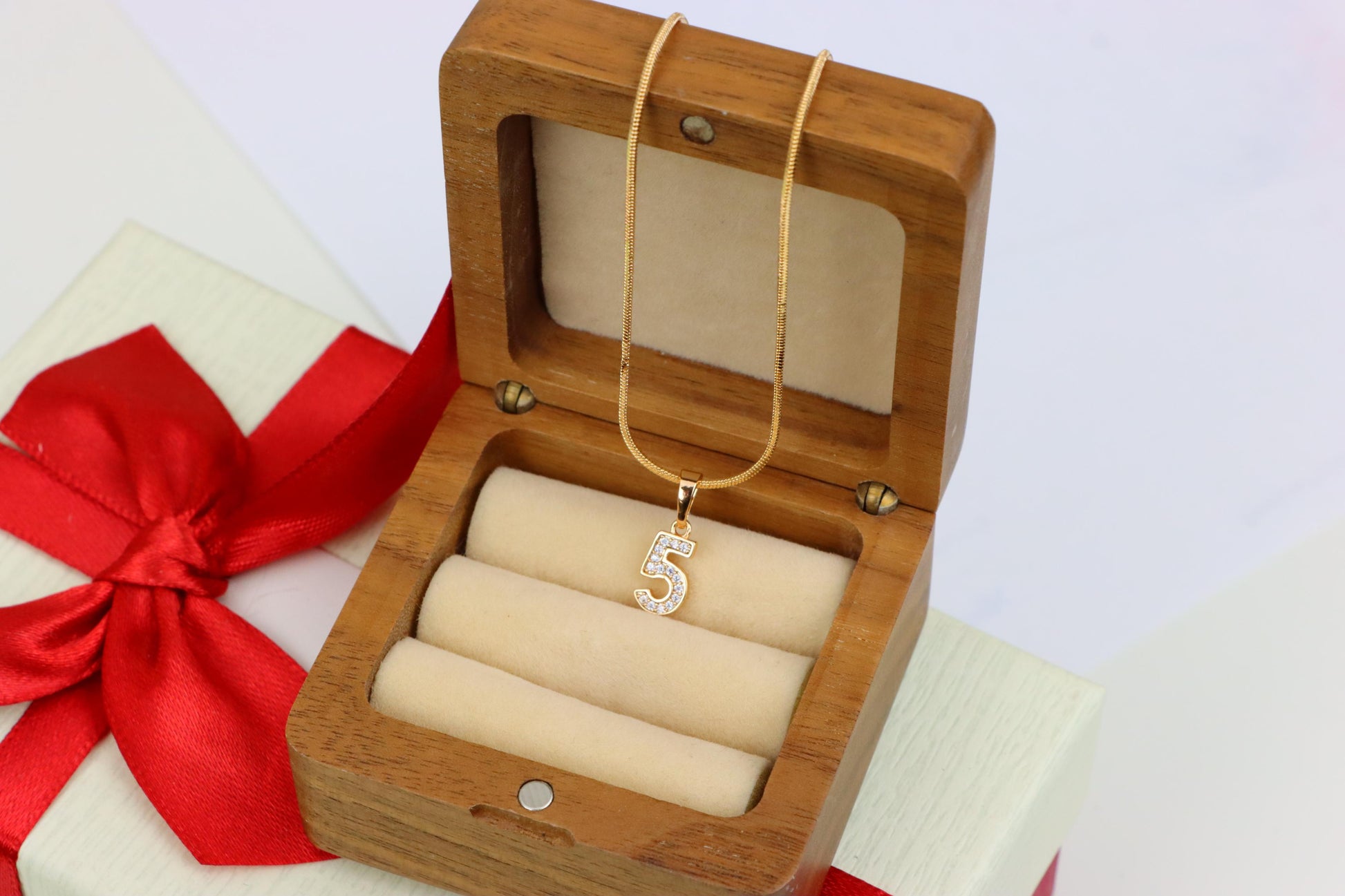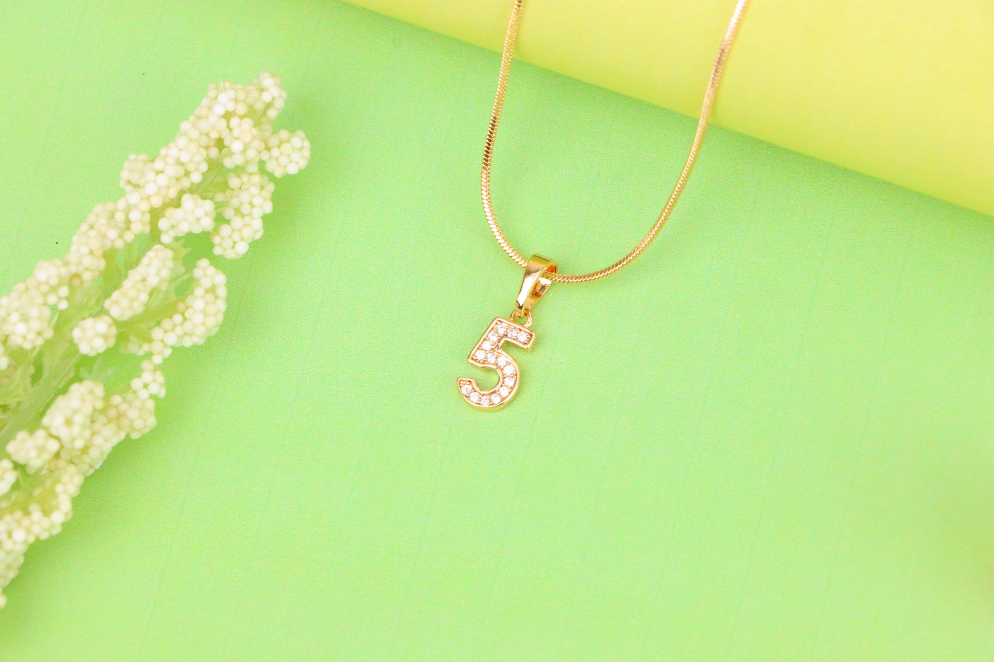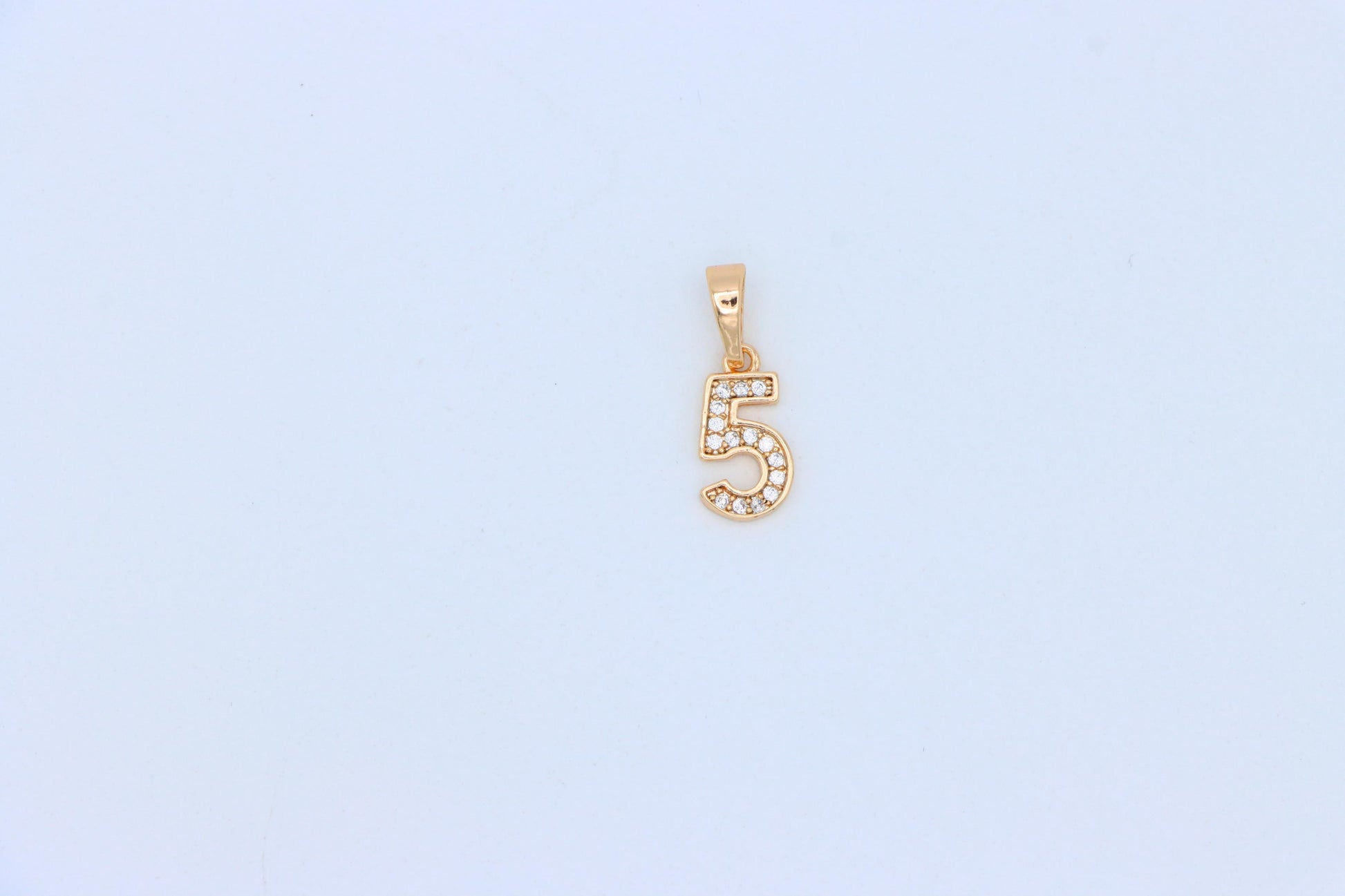 Rose Gold Number 5 Pendant with Crystals – 18K Gold Plated Charm, XPPT1345
