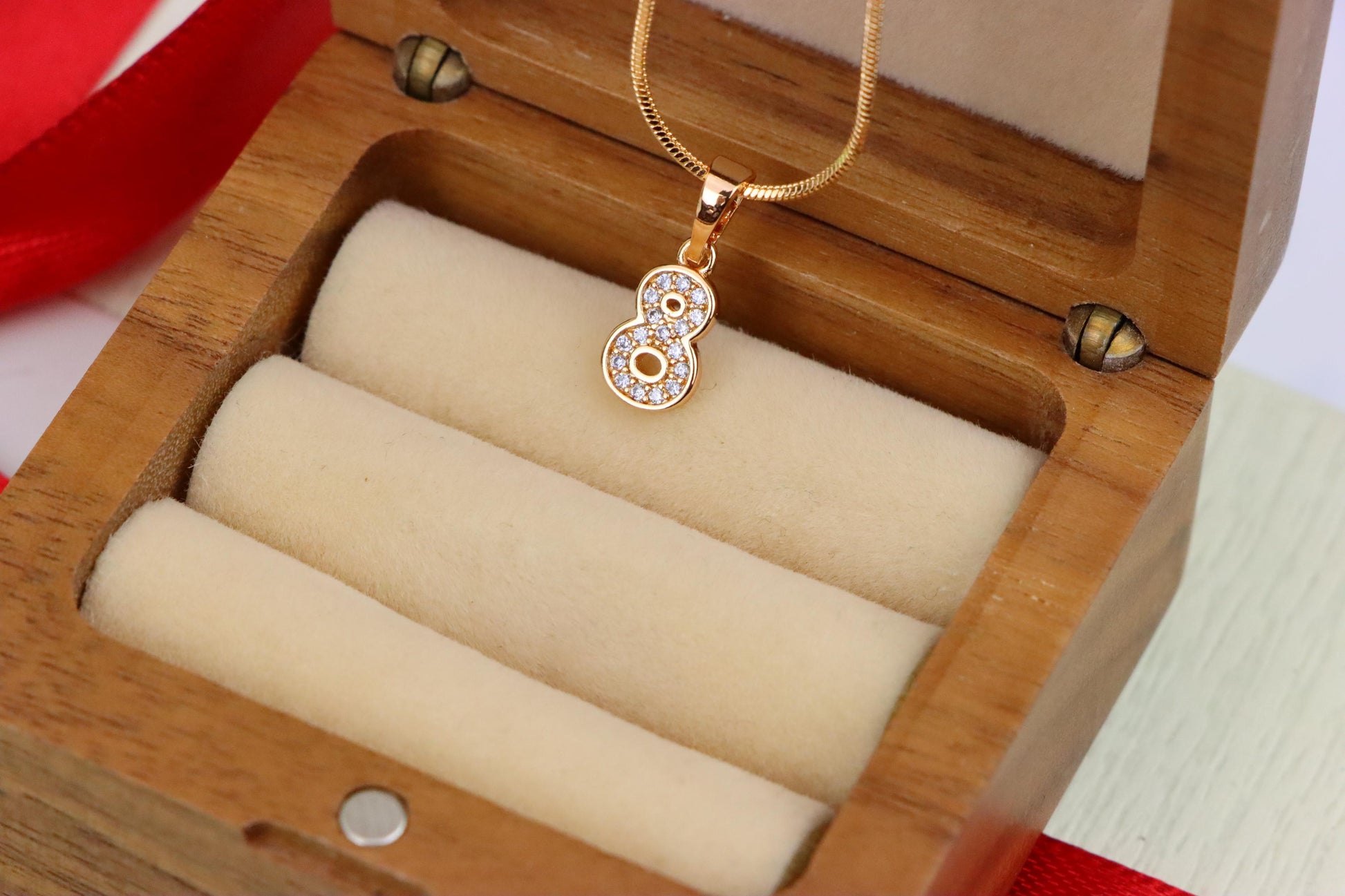 Rose Gold Number 8 Pendant with Crystals – 18K Gold Plated Charm, XPPT1348
