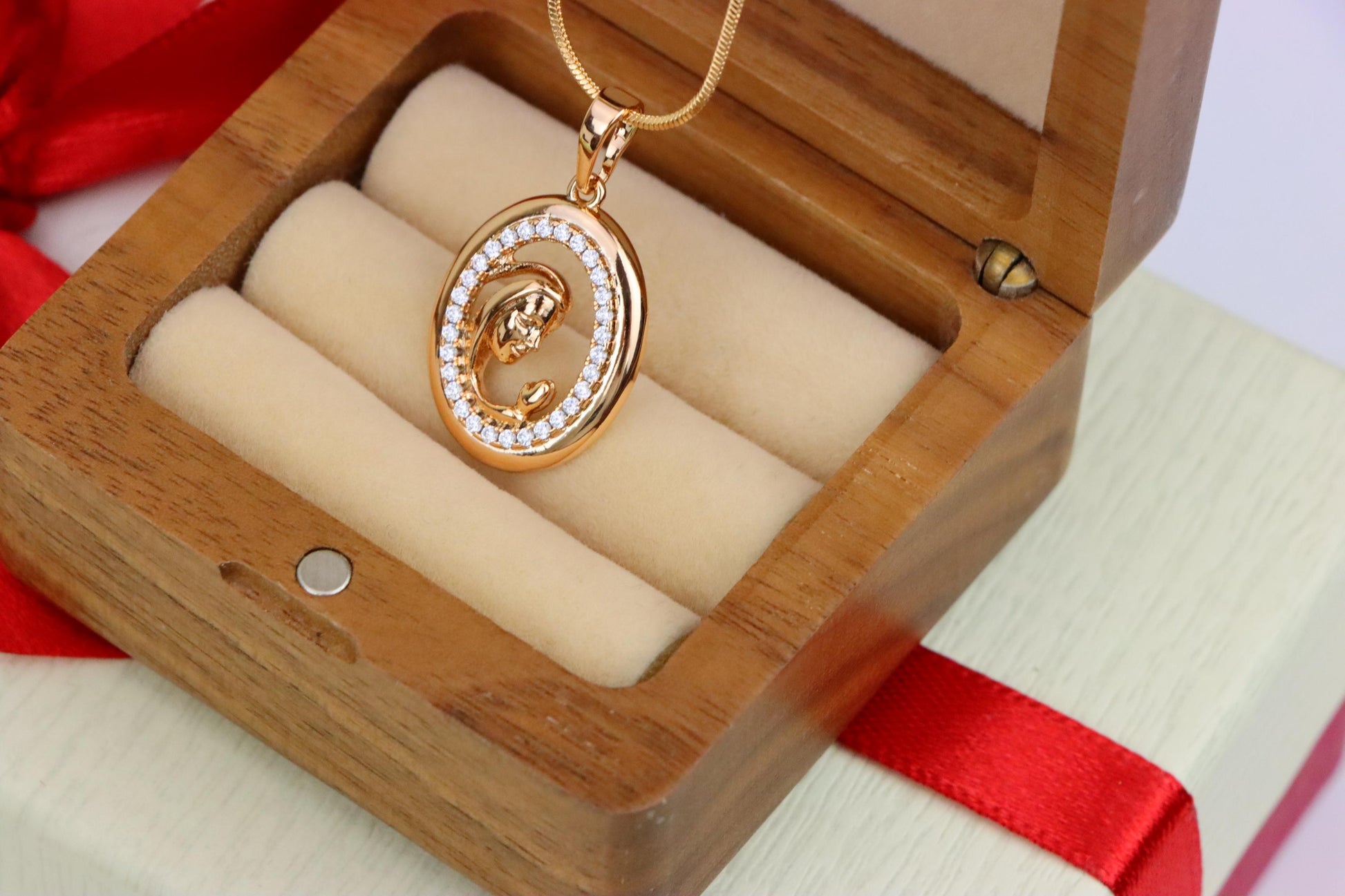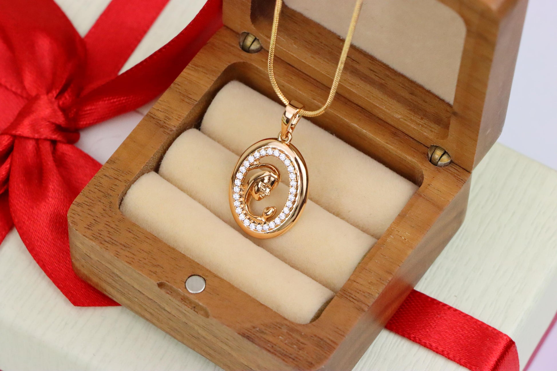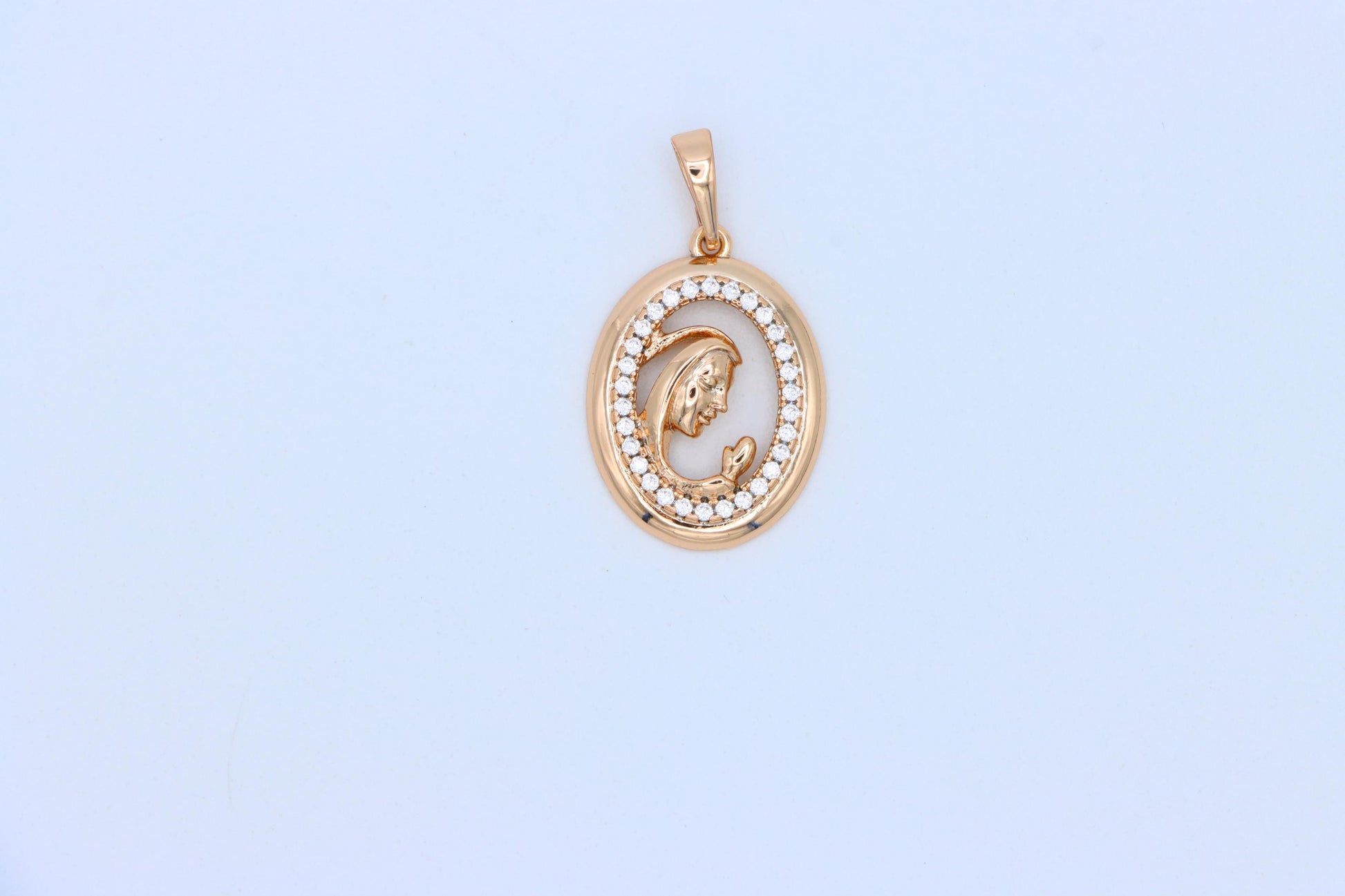 Rose Gold Oval Pendant with Mother and Child Crystal Frame Design, XPPT1511