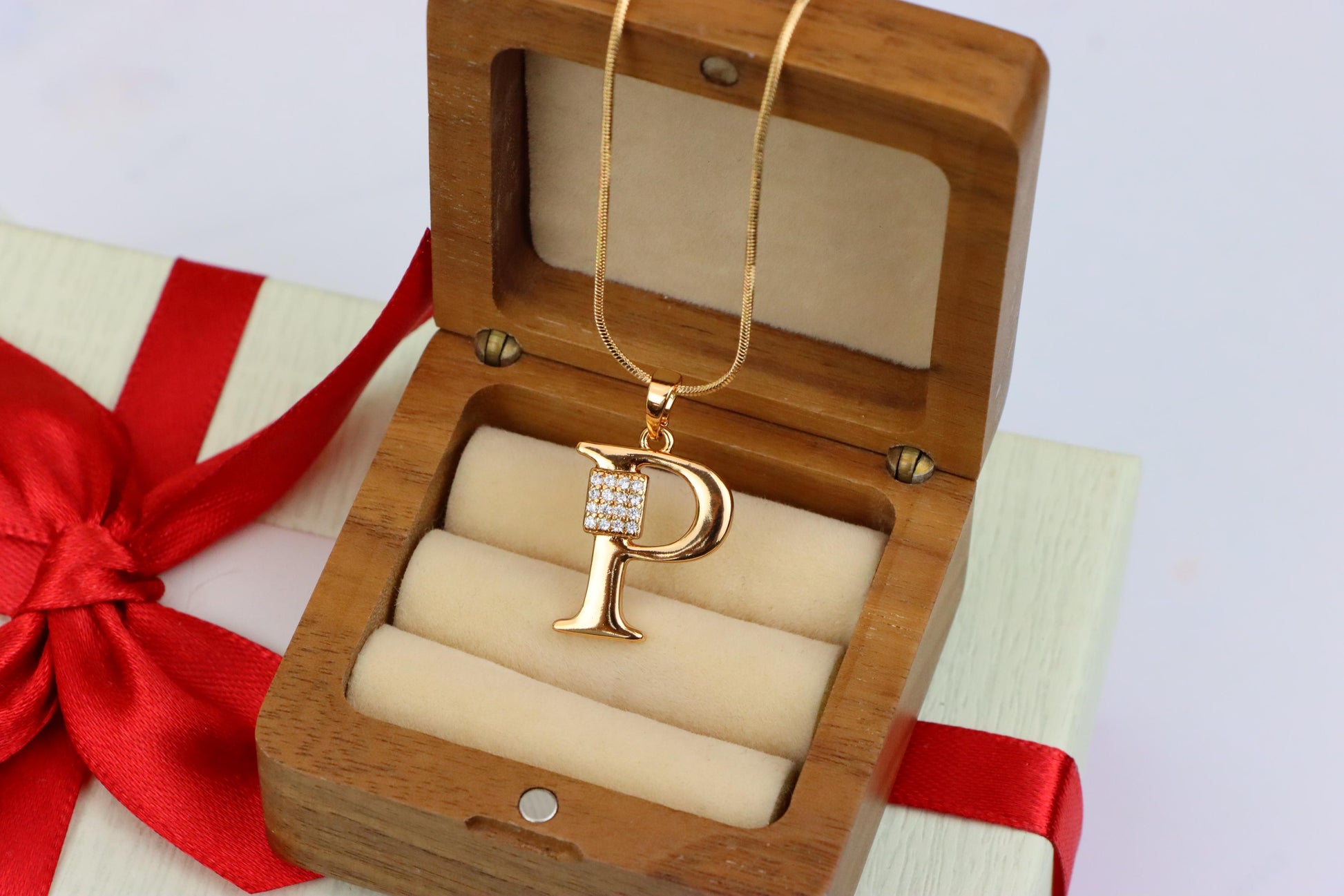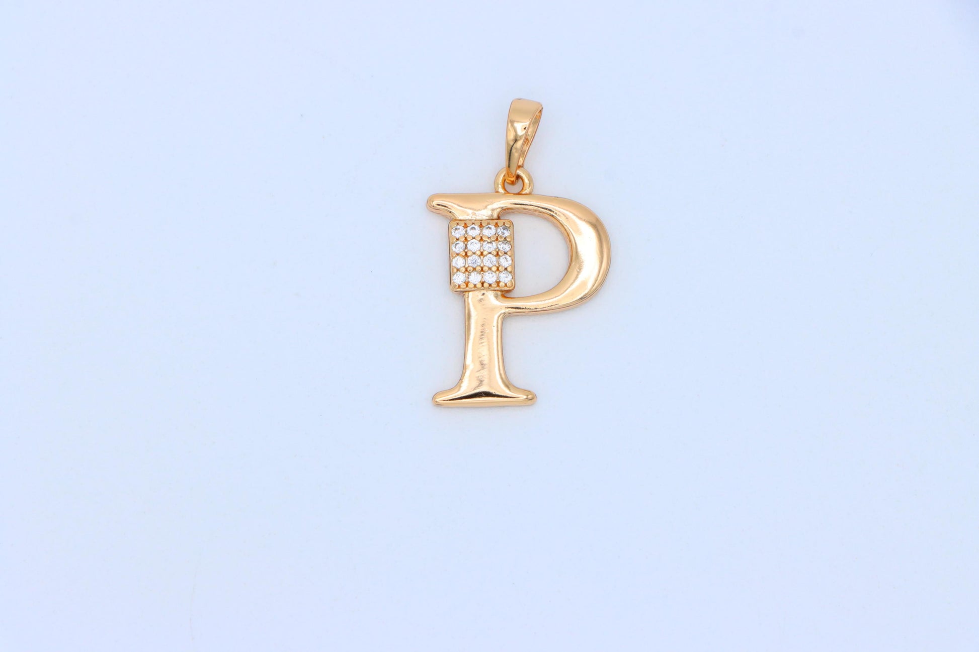 Rose Gold P Letter Pendant with CZ Accents, XPPT1427