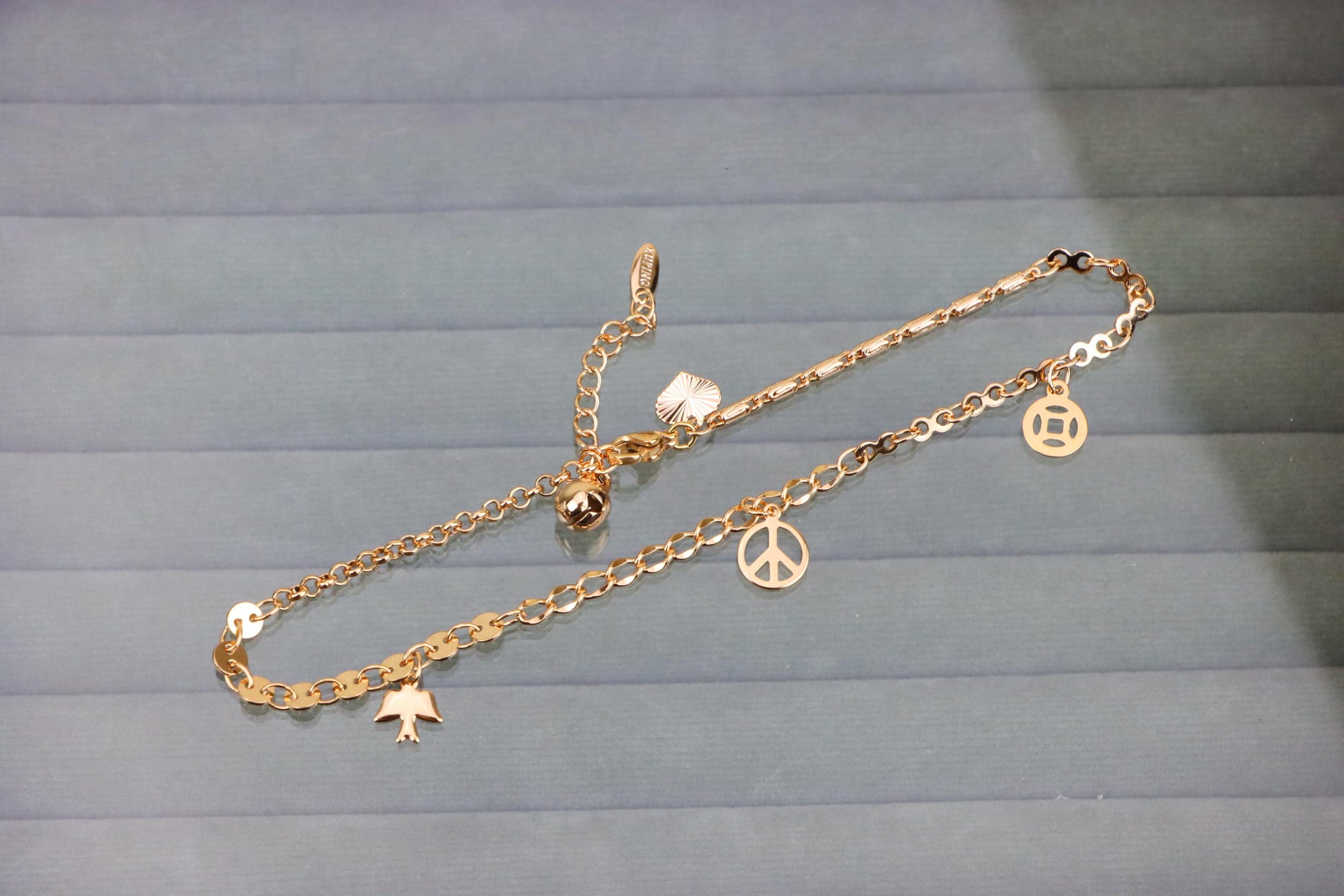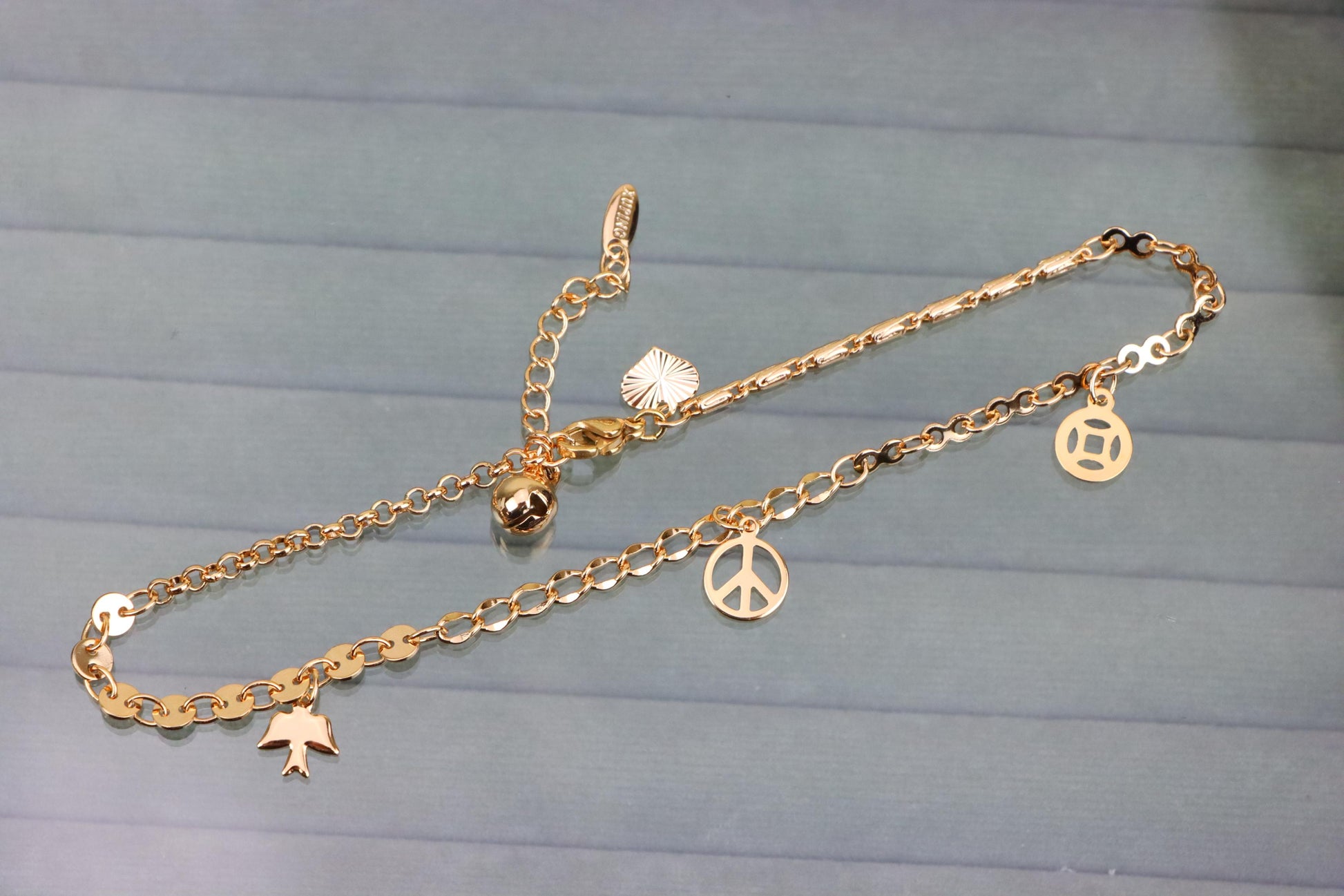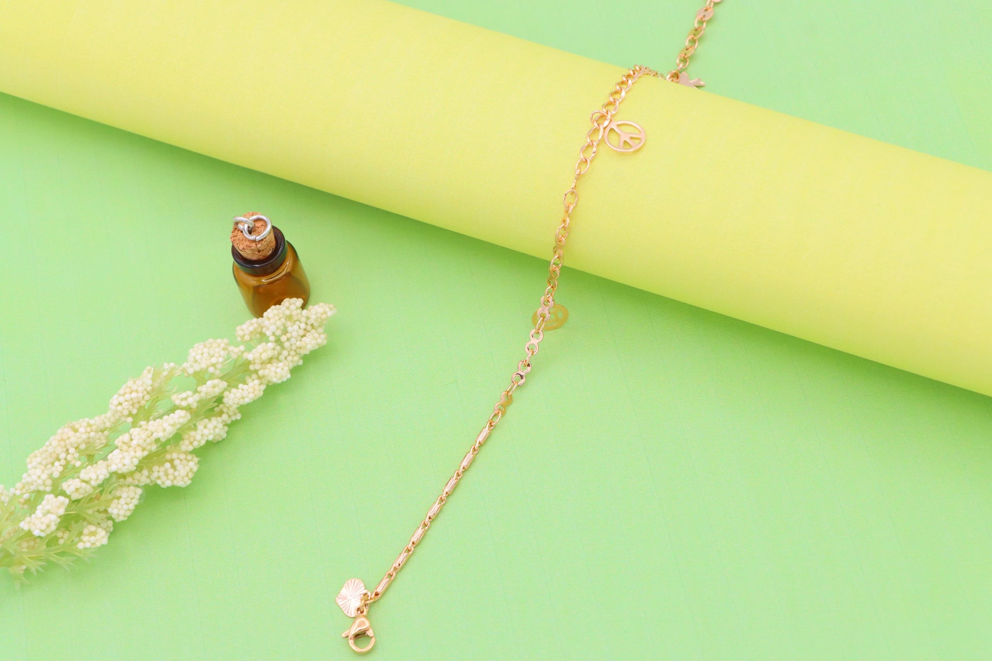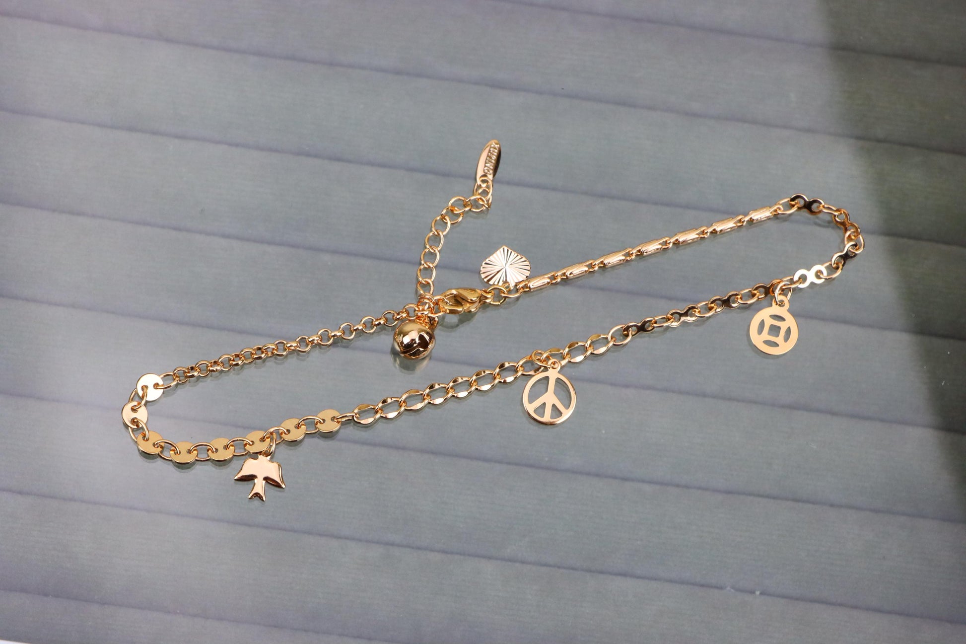 Rose Gold Peace & Charm Anklet for Women, XPAL1041