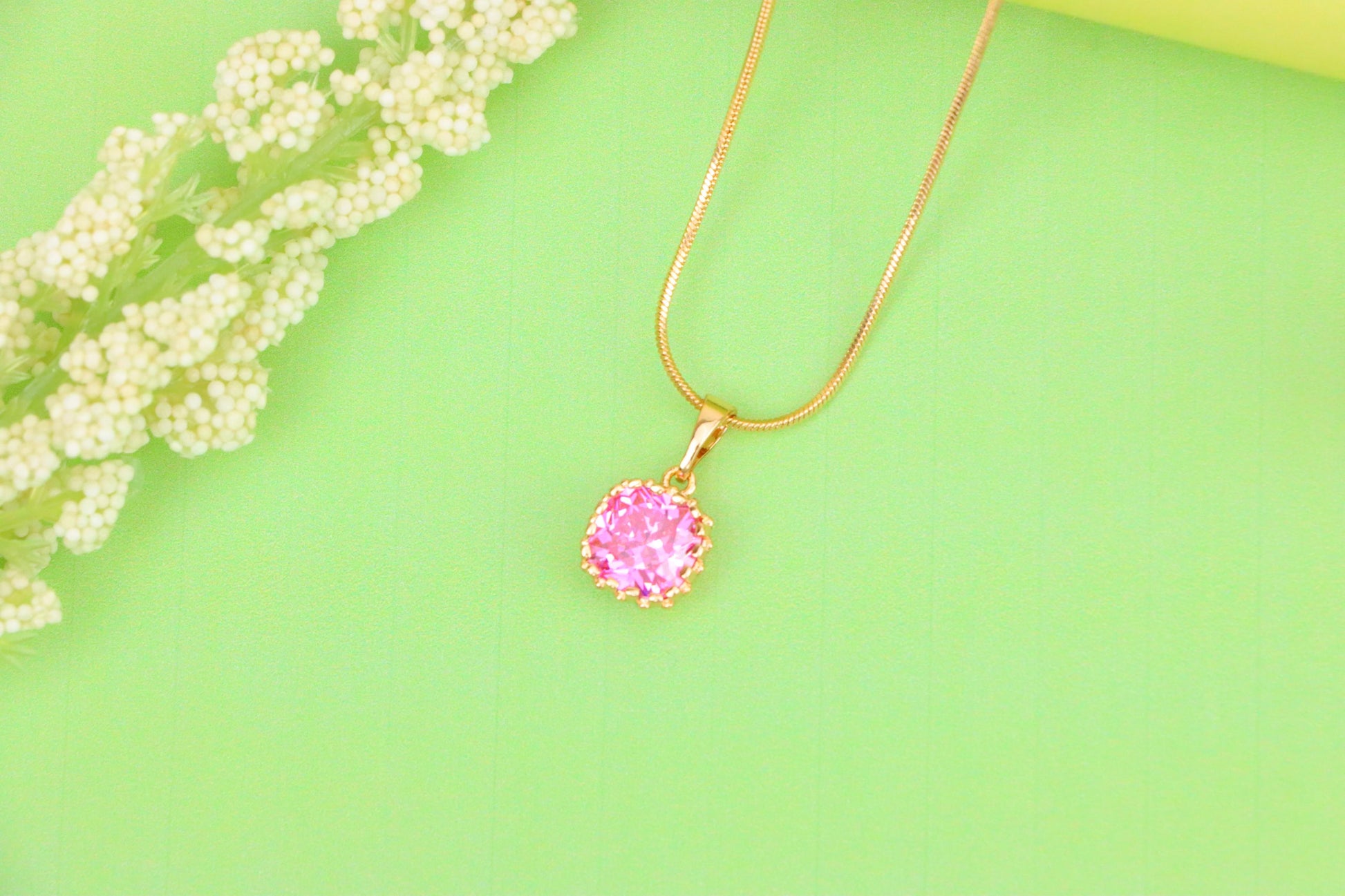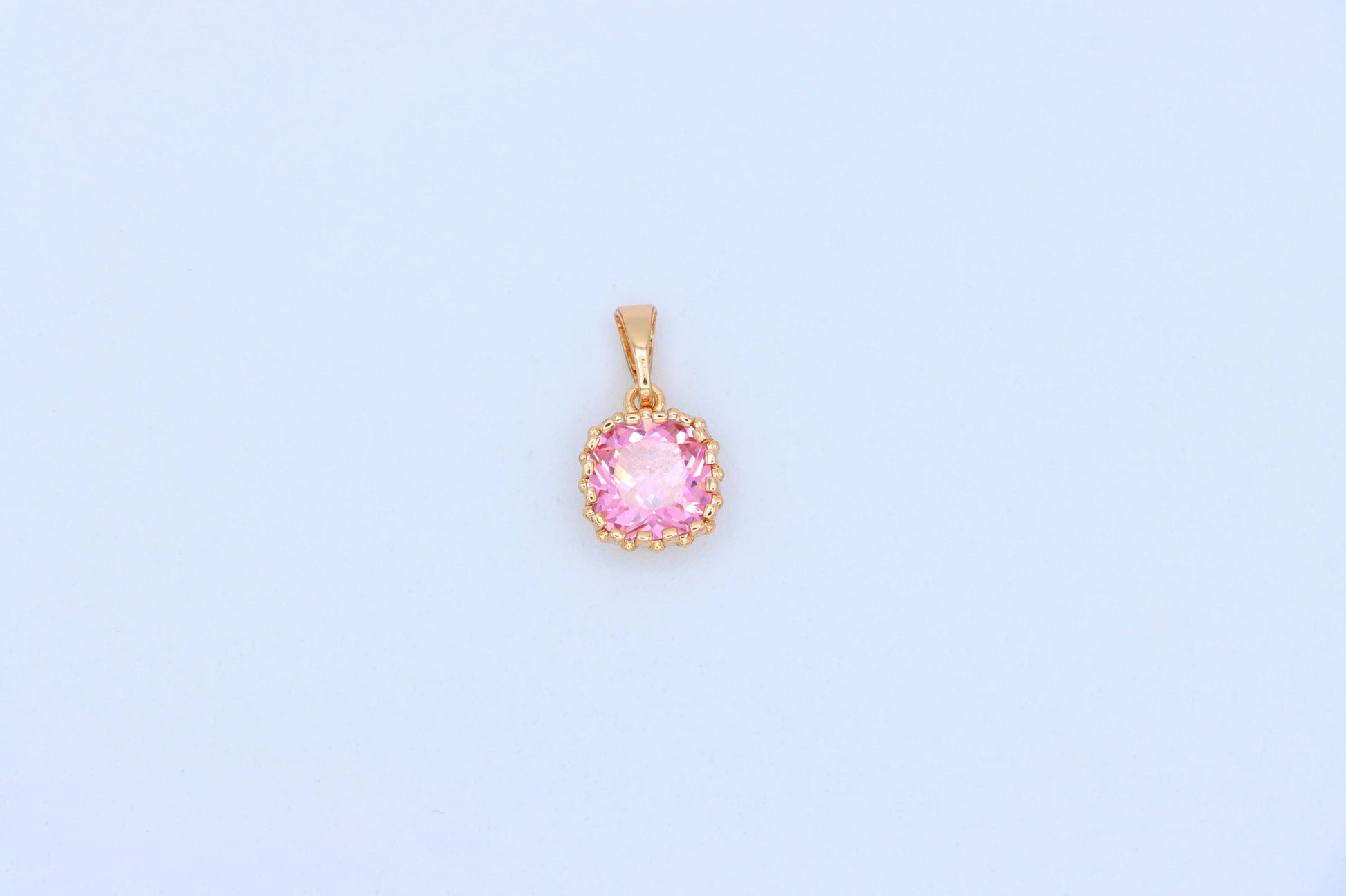 Chic and delicate rose gold pendant featuring a pink cushion-cut stone, ideal for adding a soft pop of color to your everyday or occasion look.