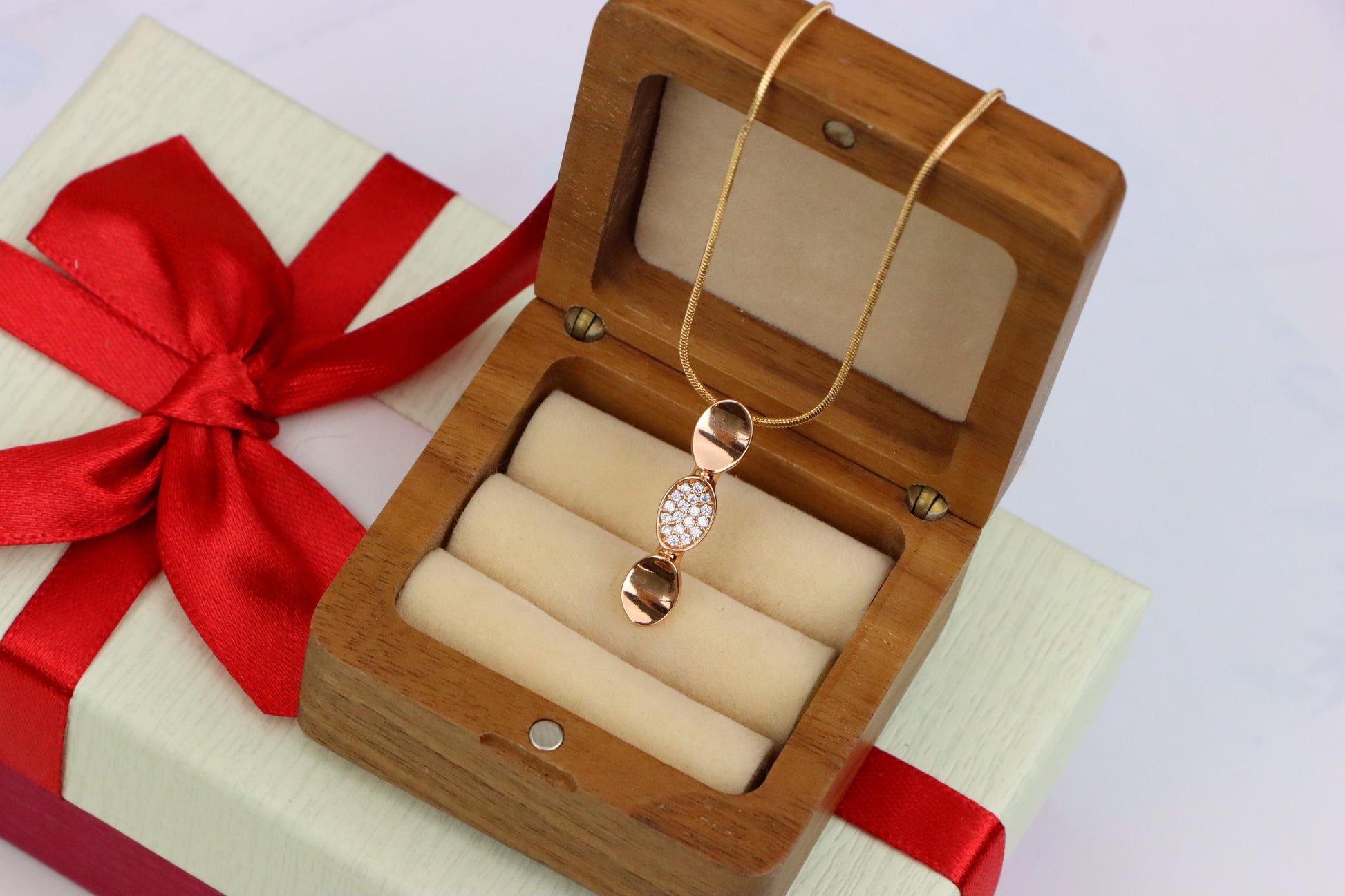 Delicate and chic rose gold pendant crafted for a refined statement.