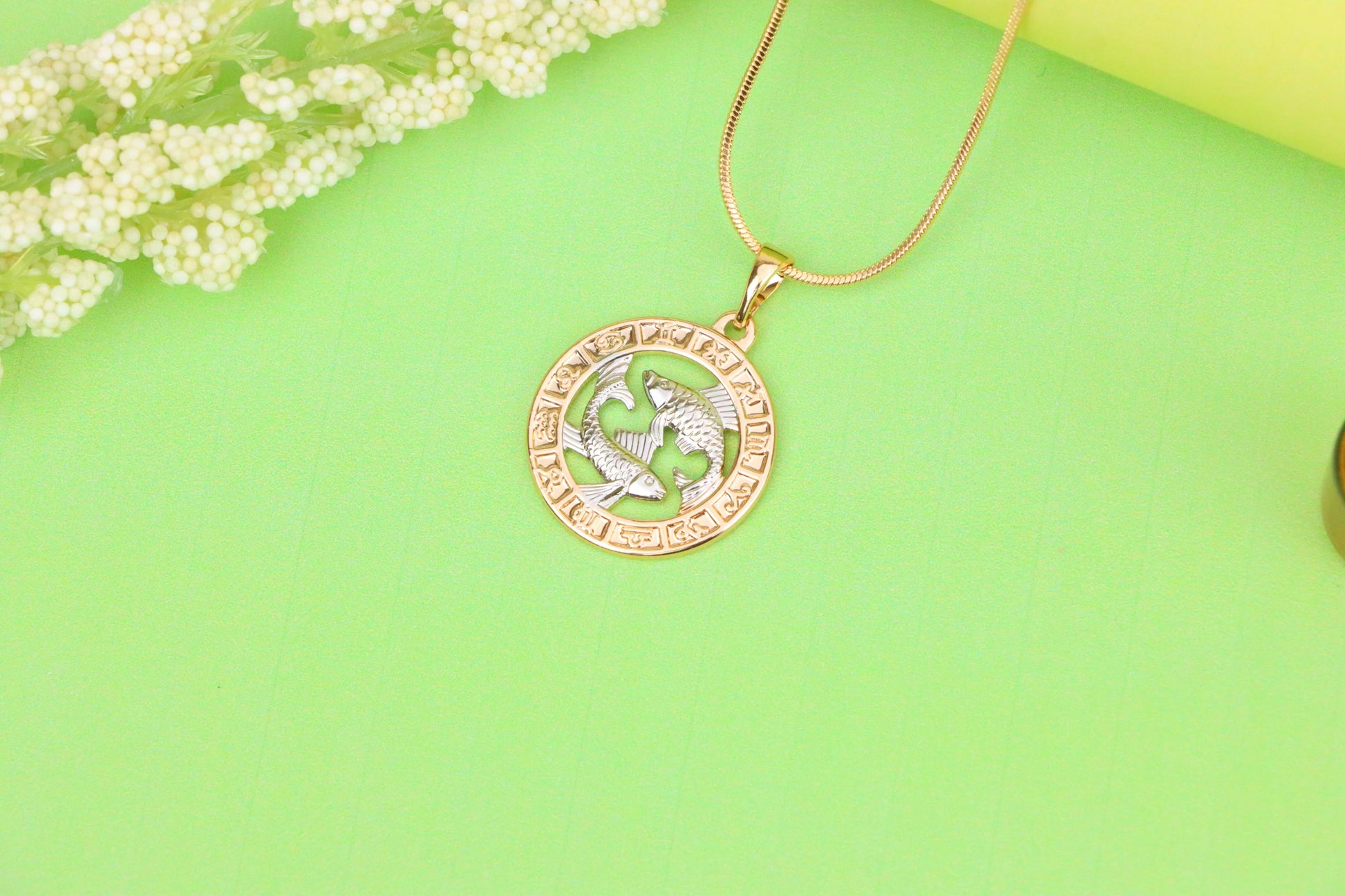 Elegant rose gold pendant showcasing the Pisces zodiac with twin fish detail, crafted for style and symbolism.