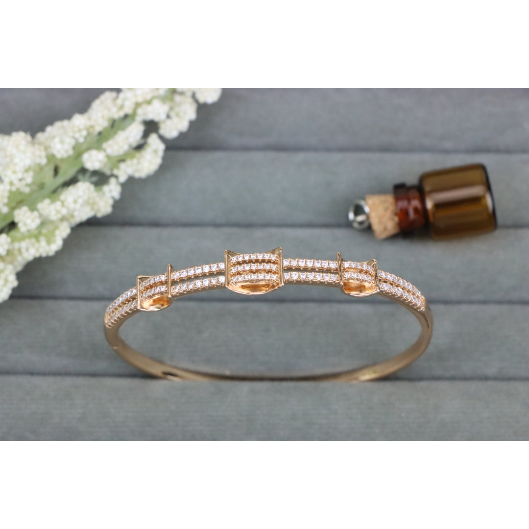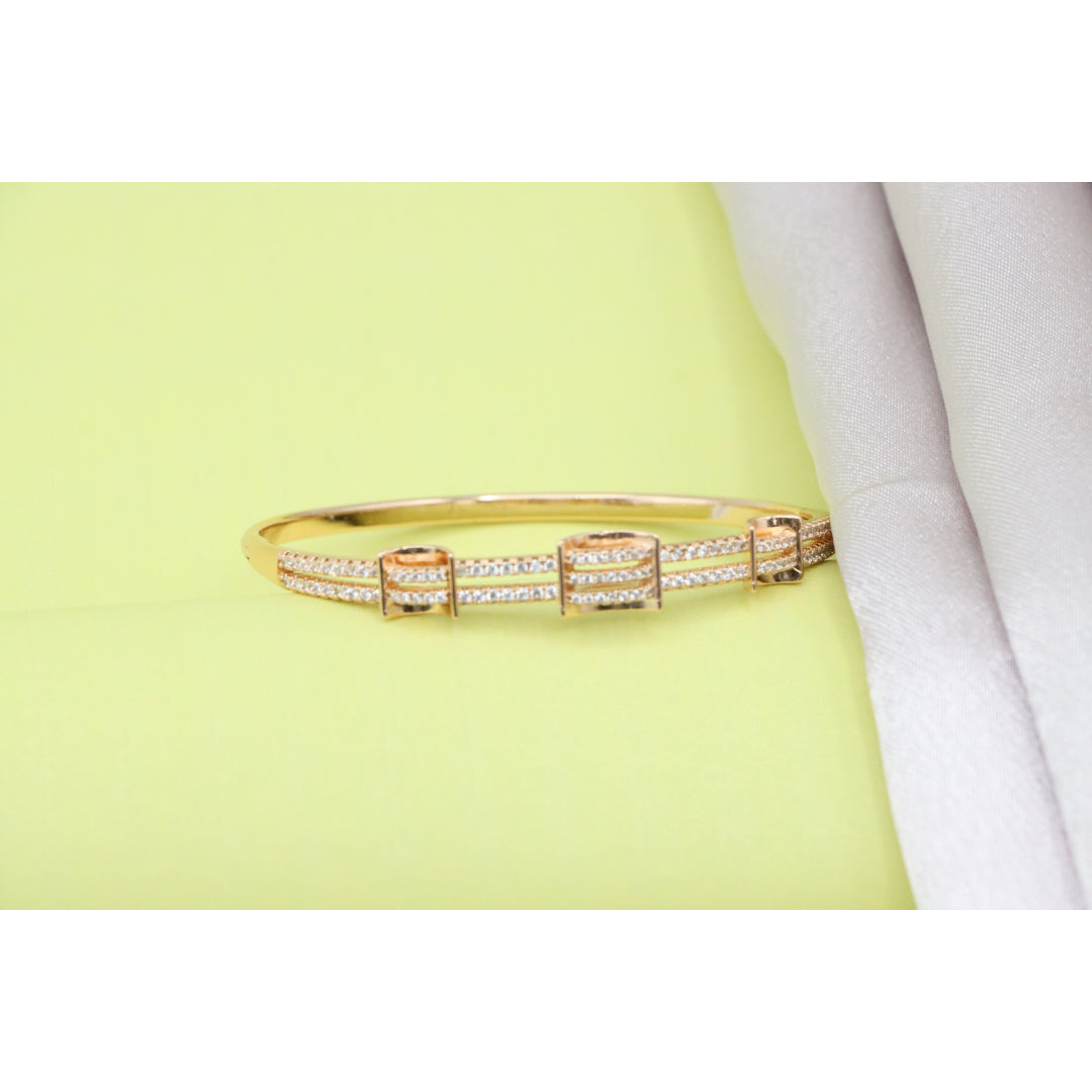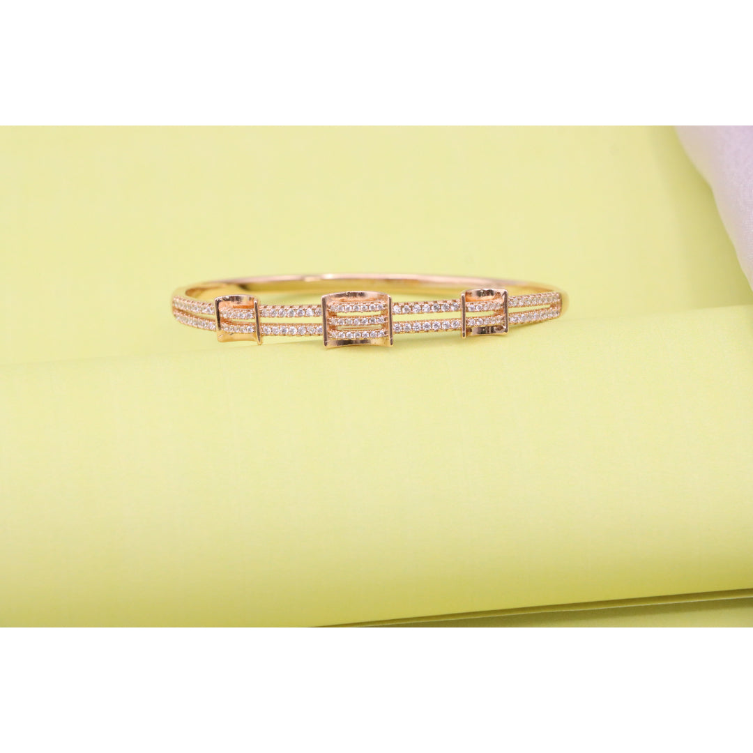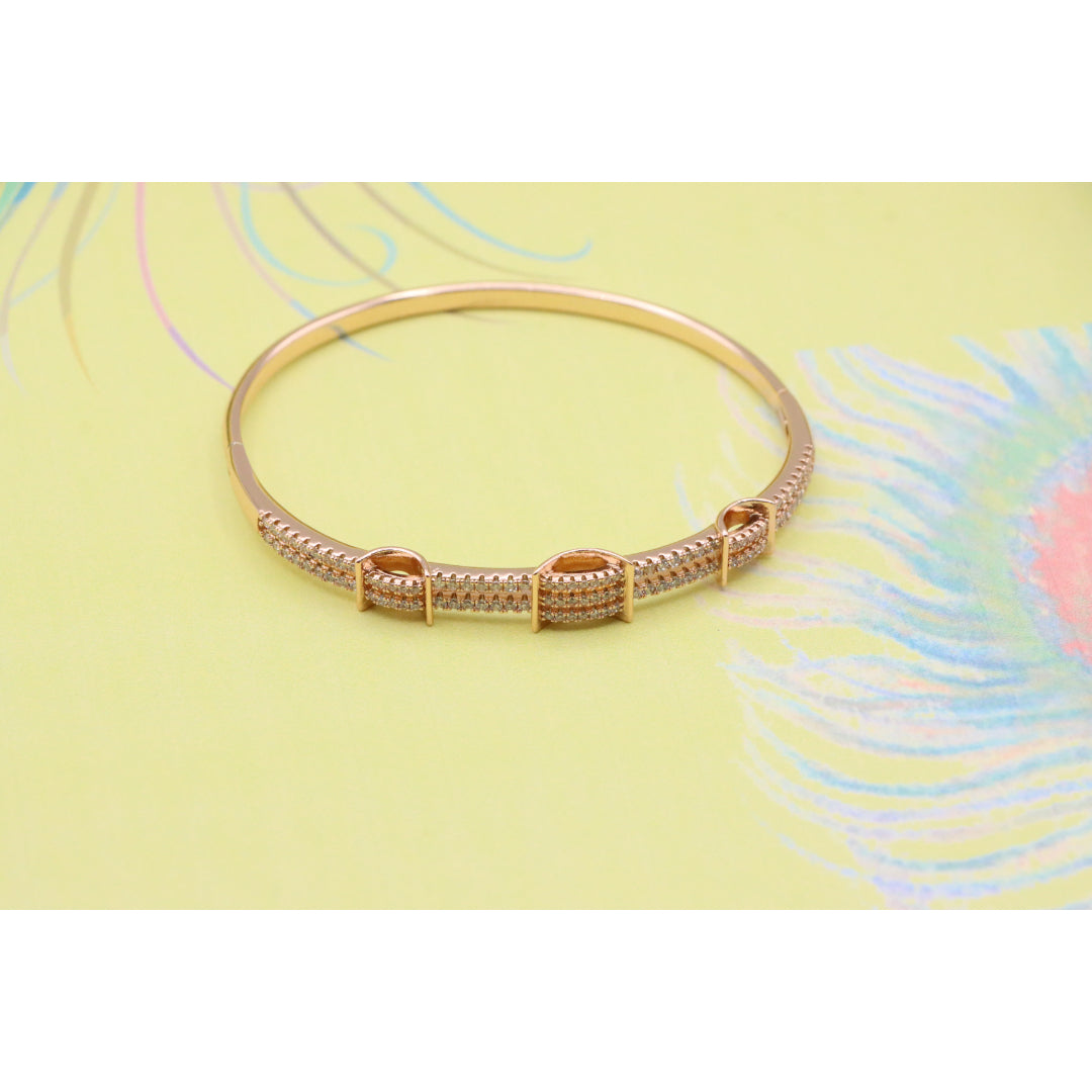 Rose Gold Plated Bangle with Double Row Cubic Zirconia Detailing, XPBL0419