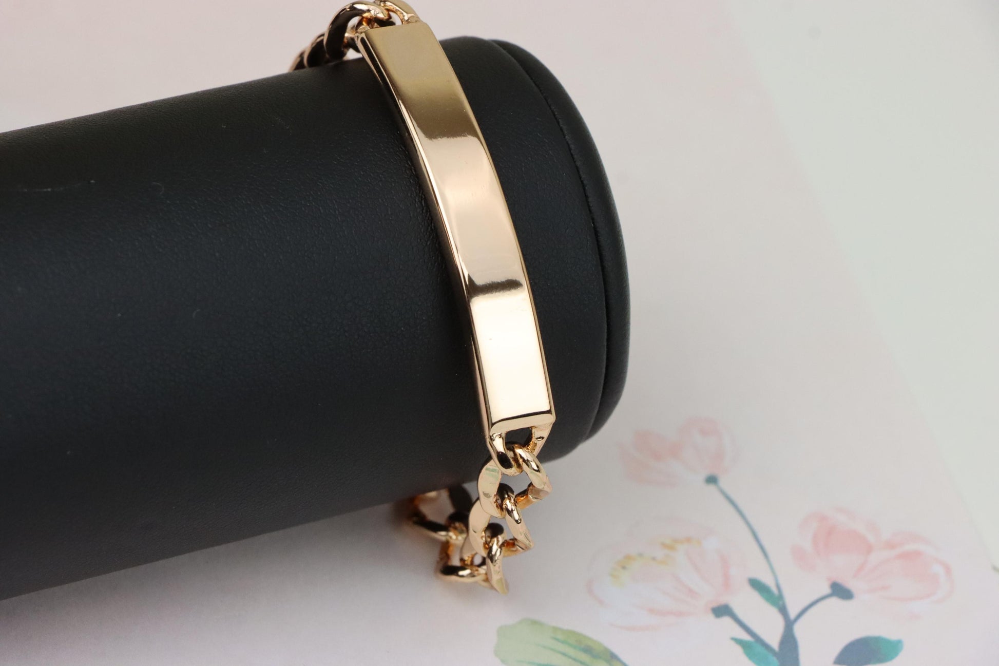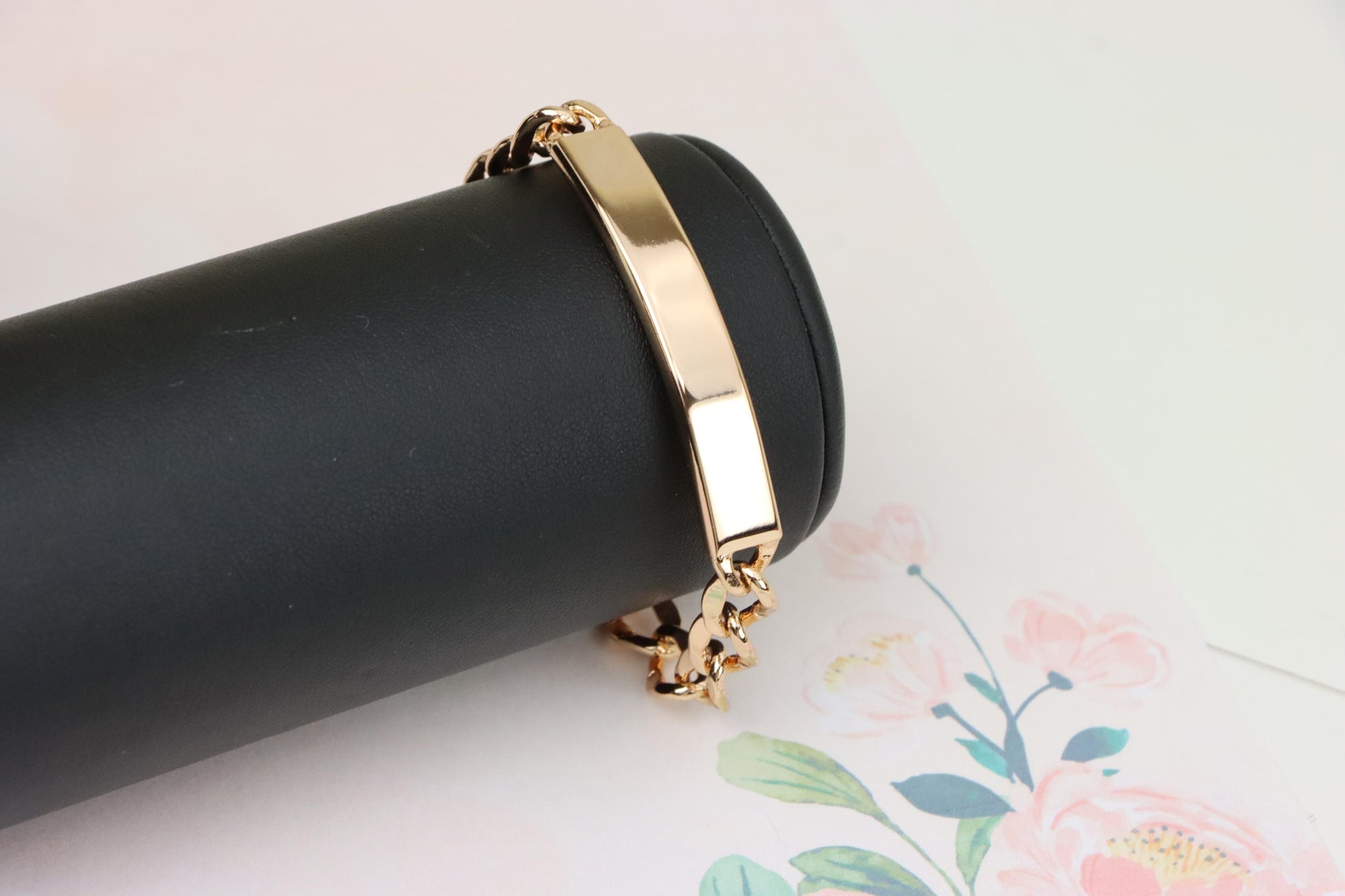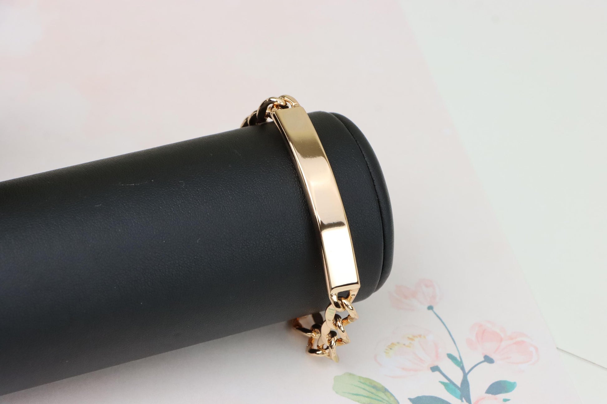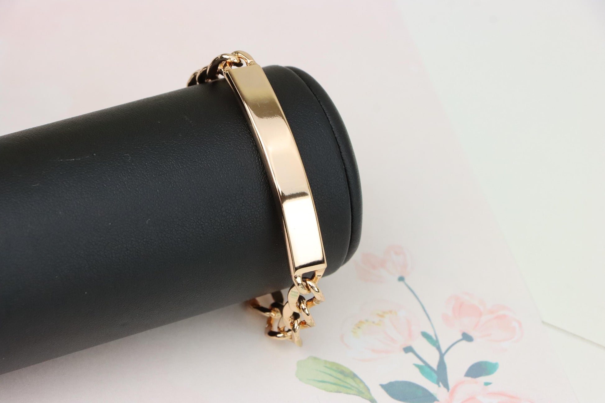 Elegant and timeless, this rose gold bracelet features a high-polish ID bar and textured chain links, making it perfect for both everyday wear and special occasions.