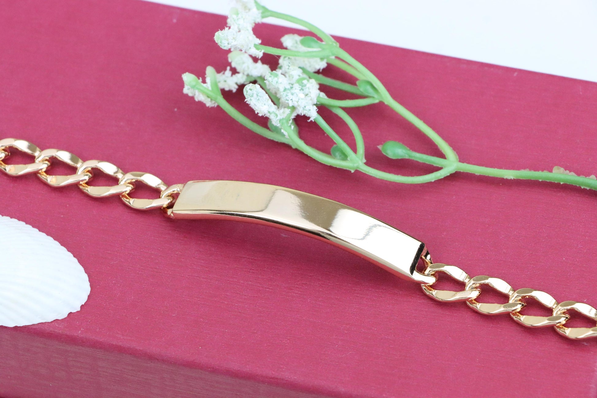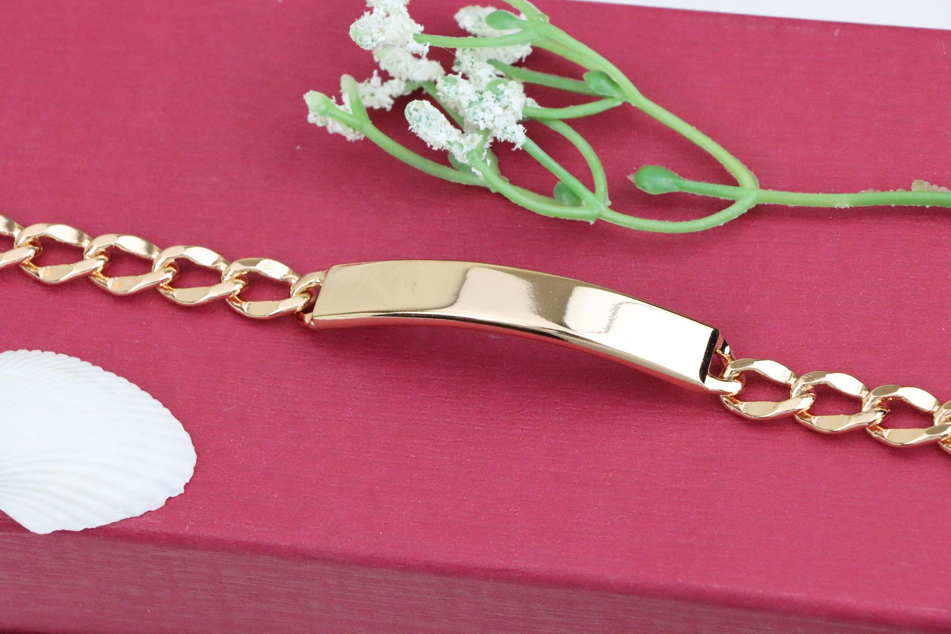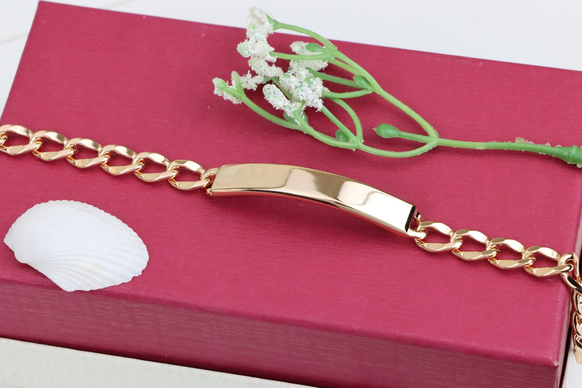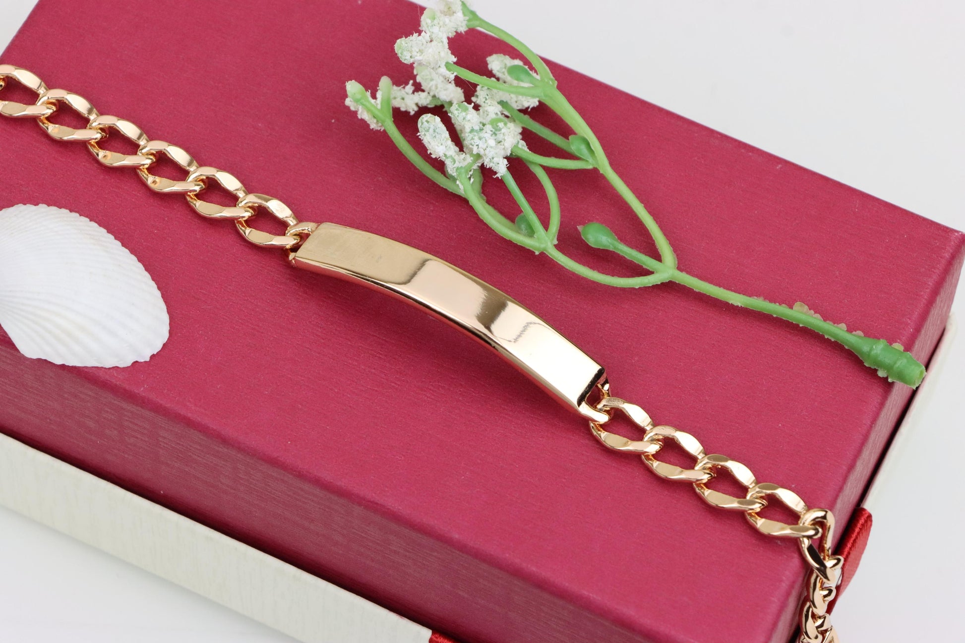 Rose Gold Plated Bracelet with Bold Polished ID Bar Chain Design, XPBL1081