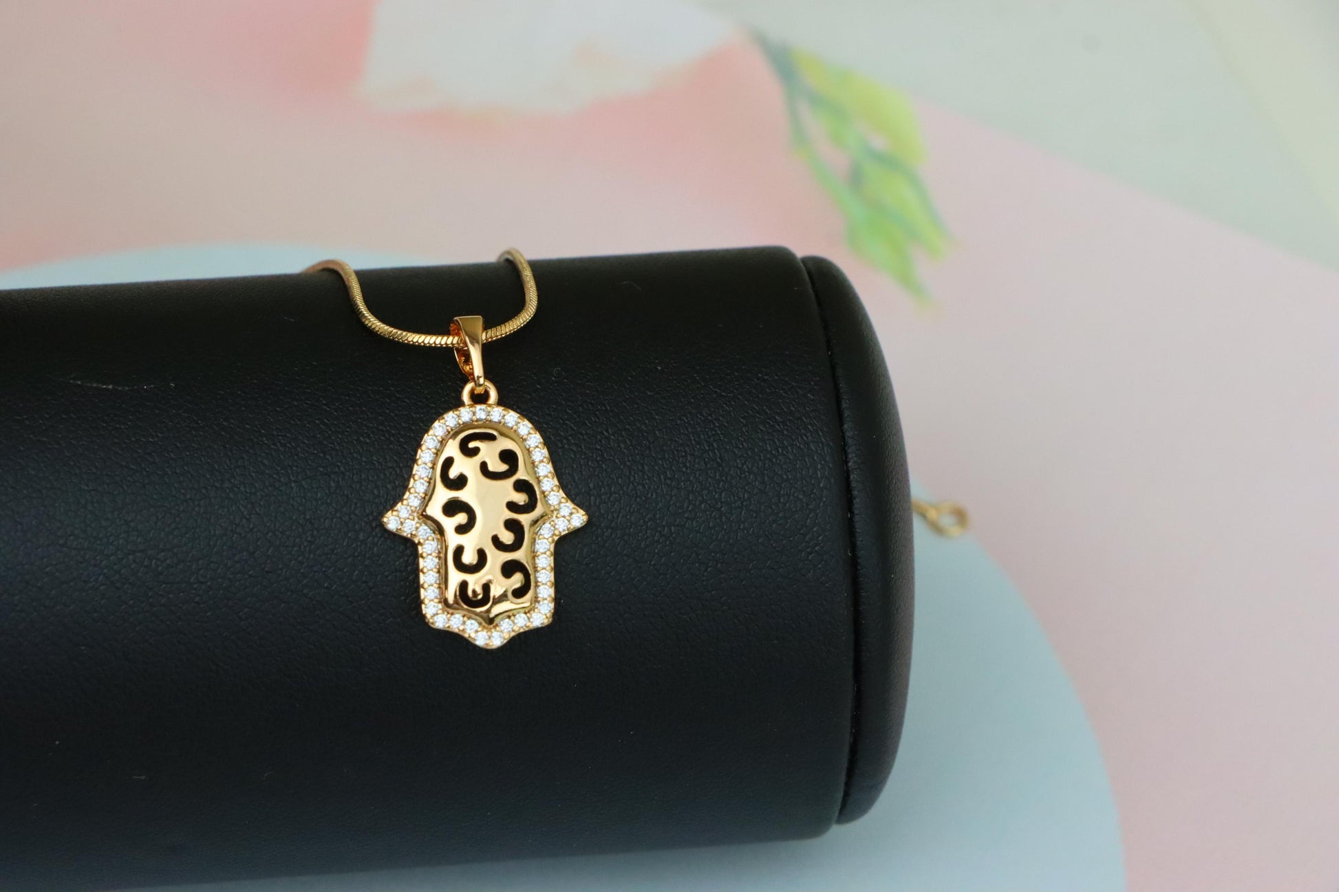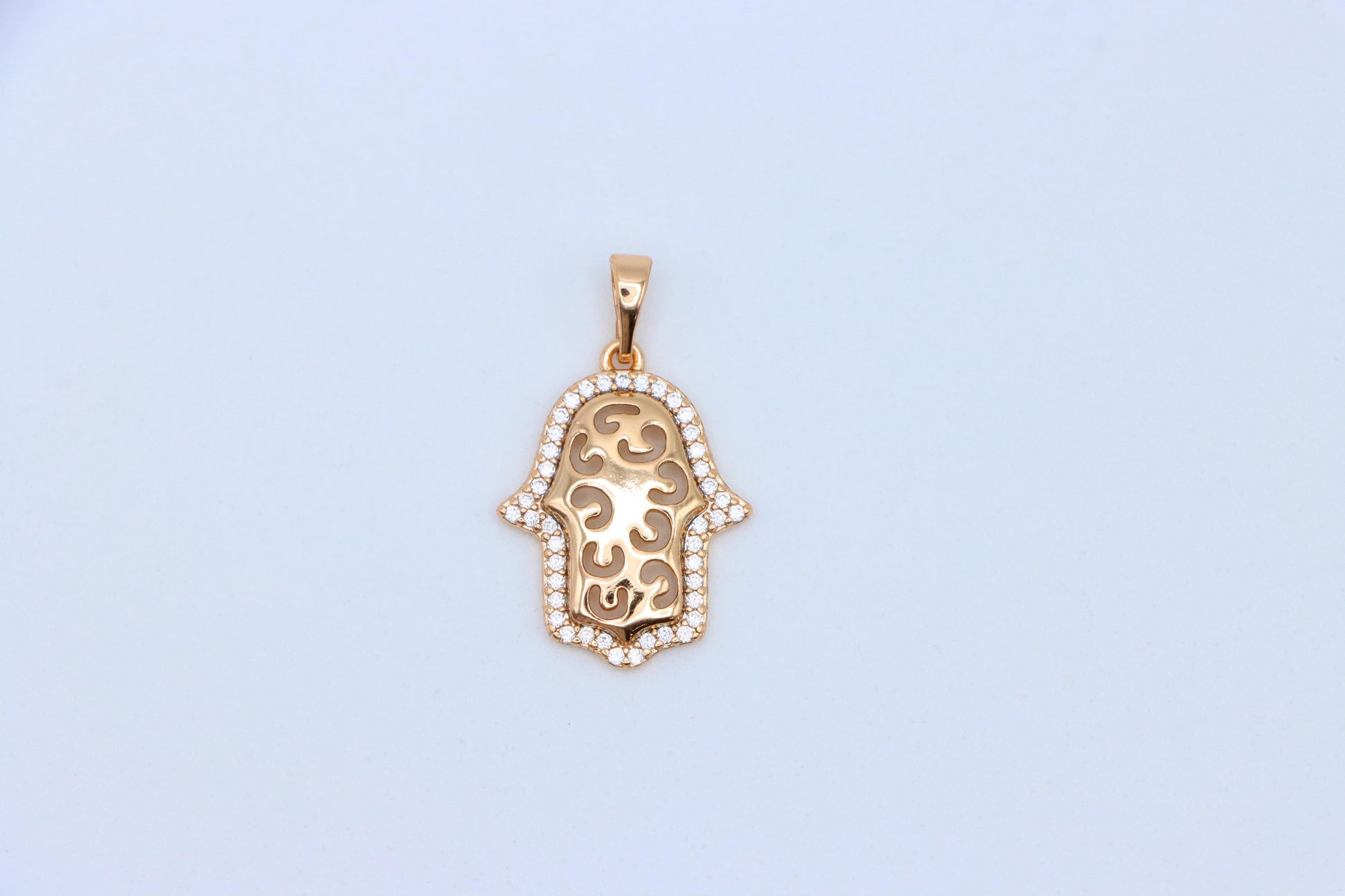 Rose Gold Plated Hamsa Hand Pendant with Intricate Cutout Design, XPPT1628 (2149-2)