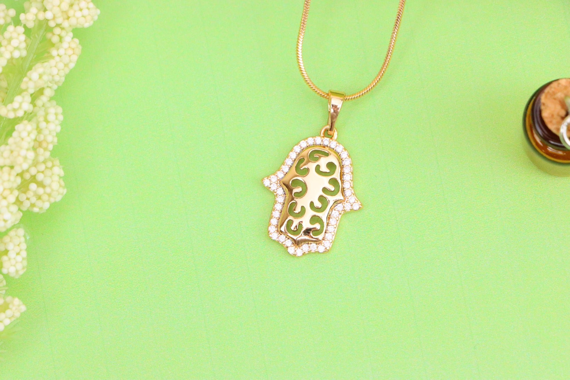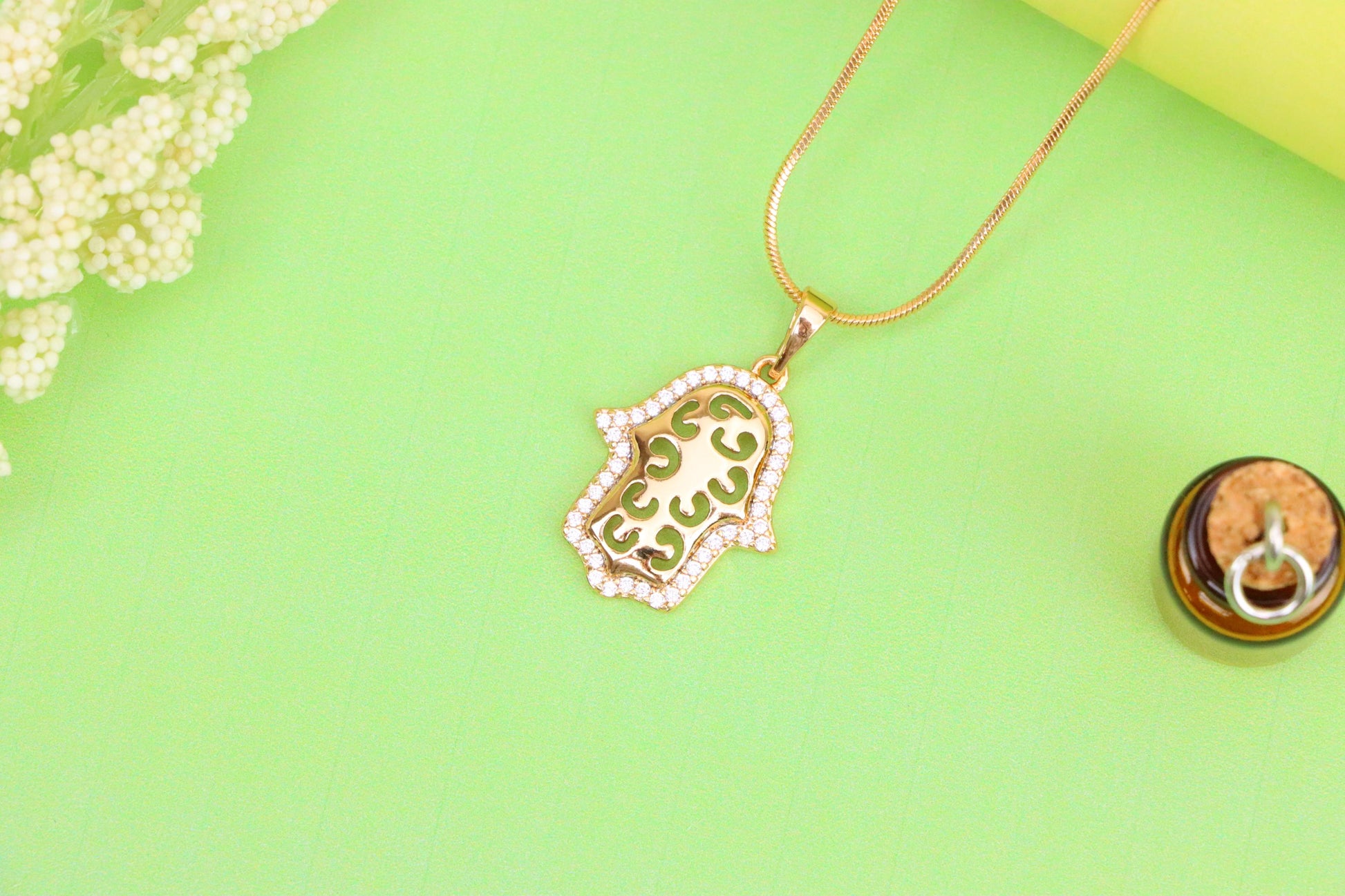 Rose Gold Plated Hamsa Hand Pendant with Intricate Cutout Design, XPPT1628