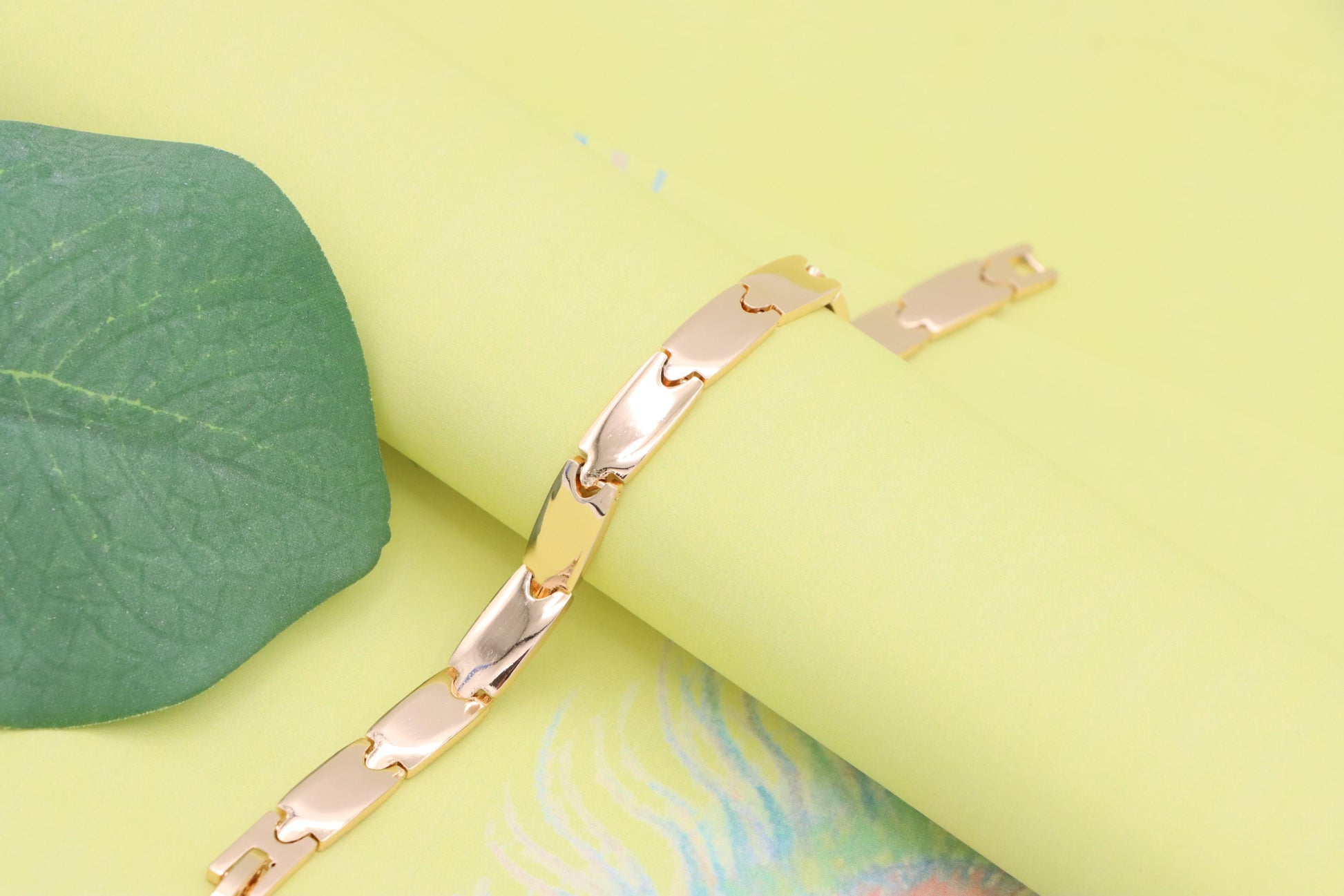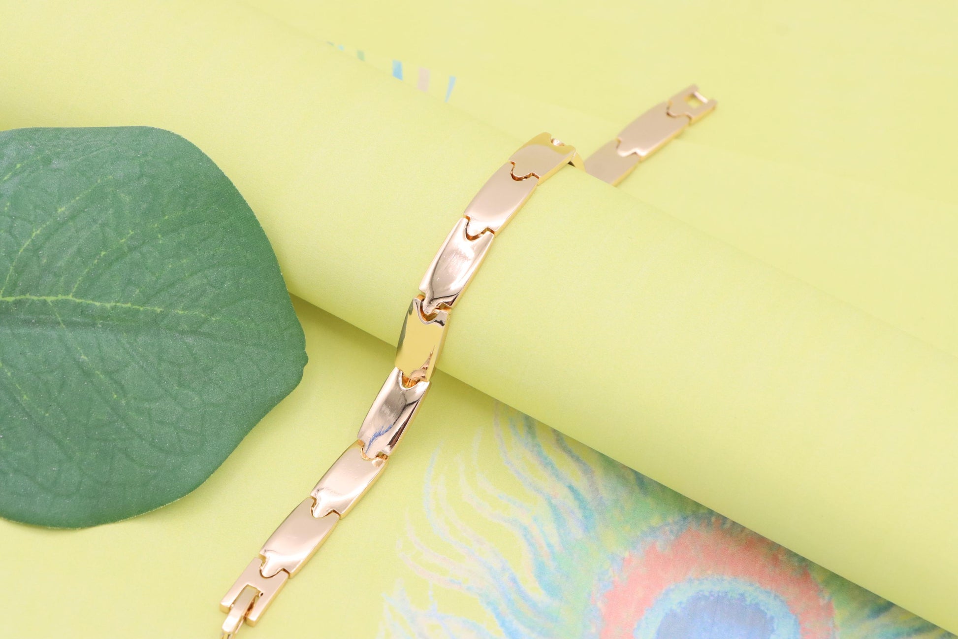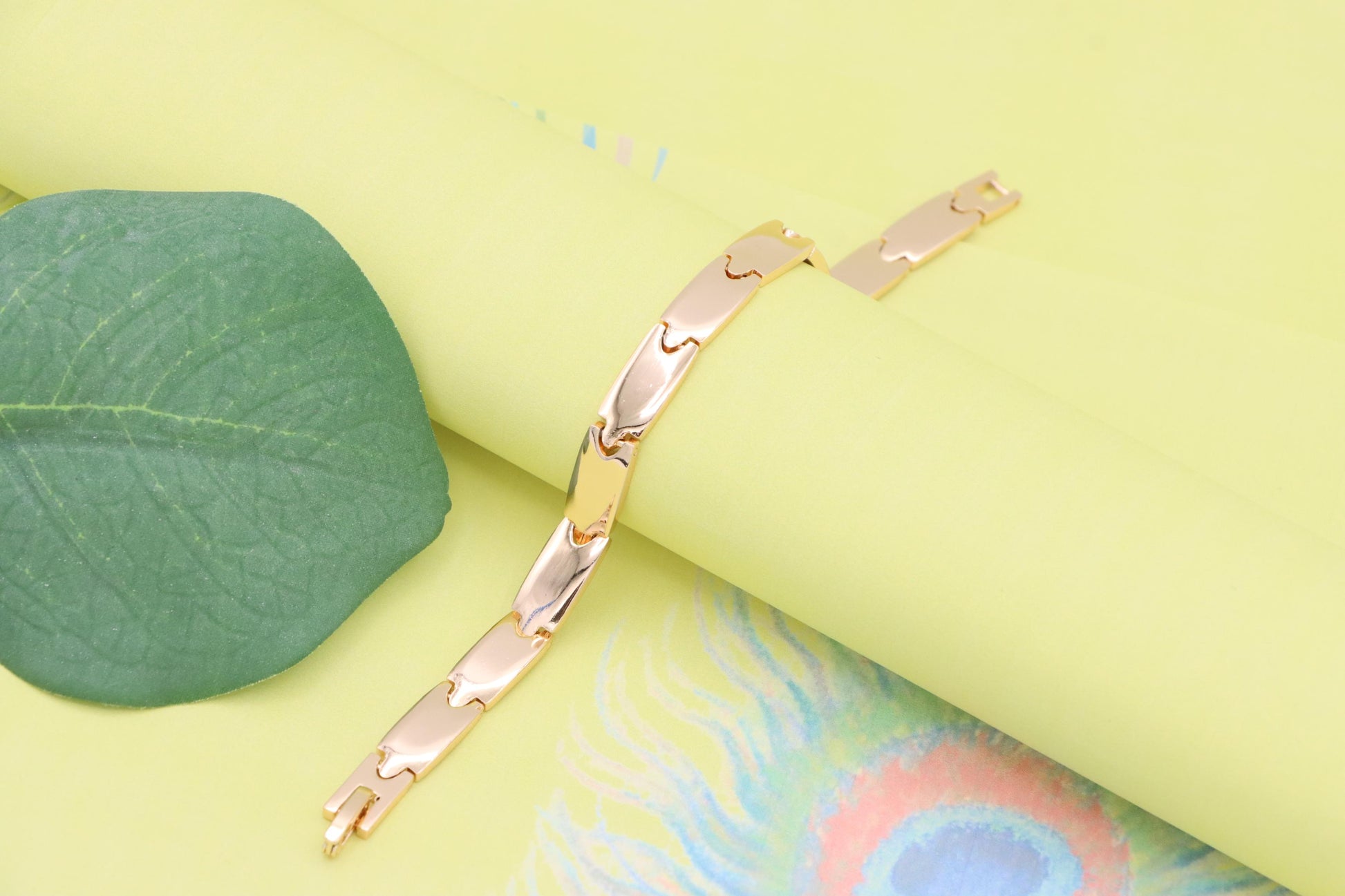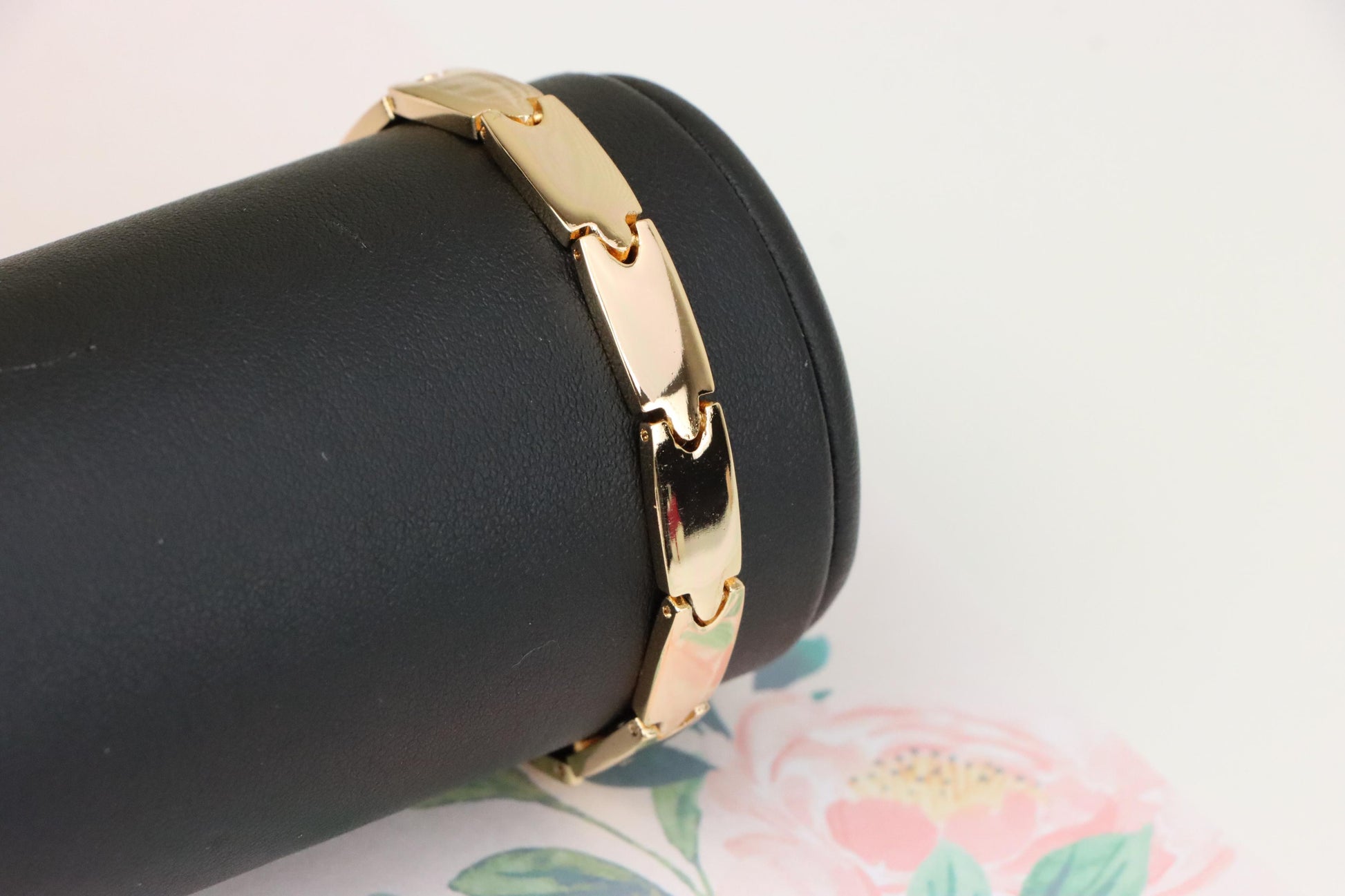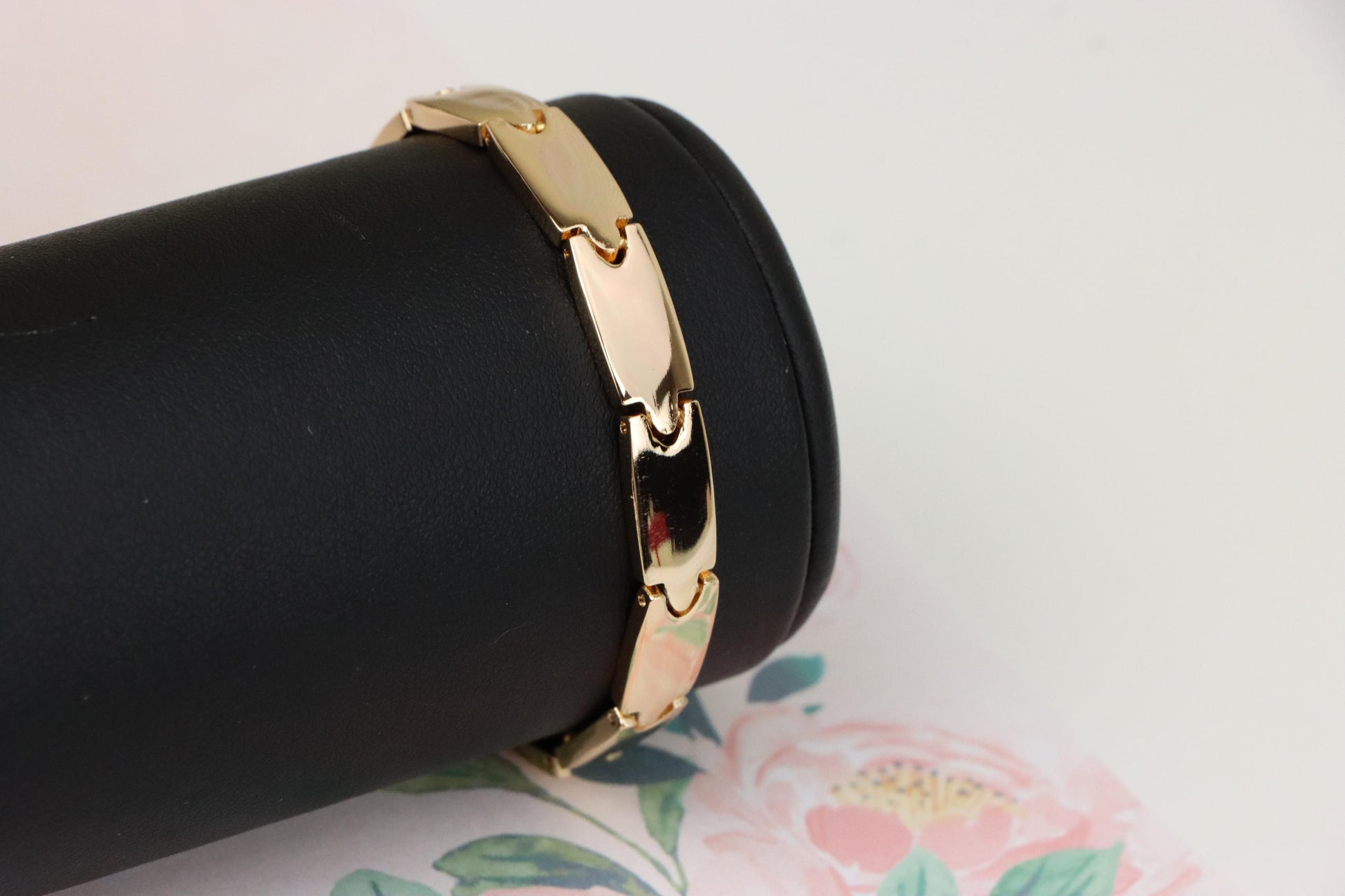 Elegant rose gold bracelet crafted with polished links for a clean, modern look.