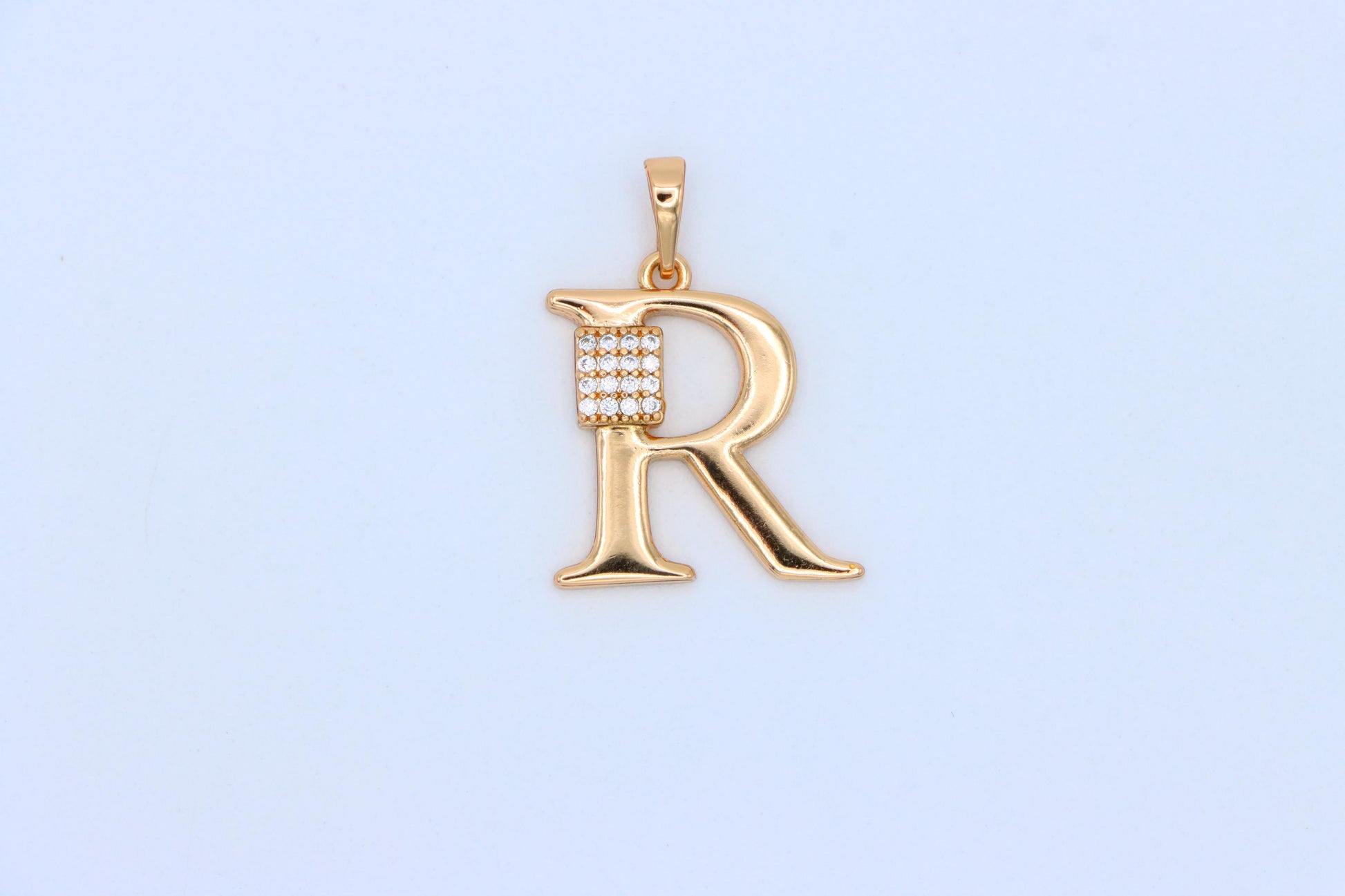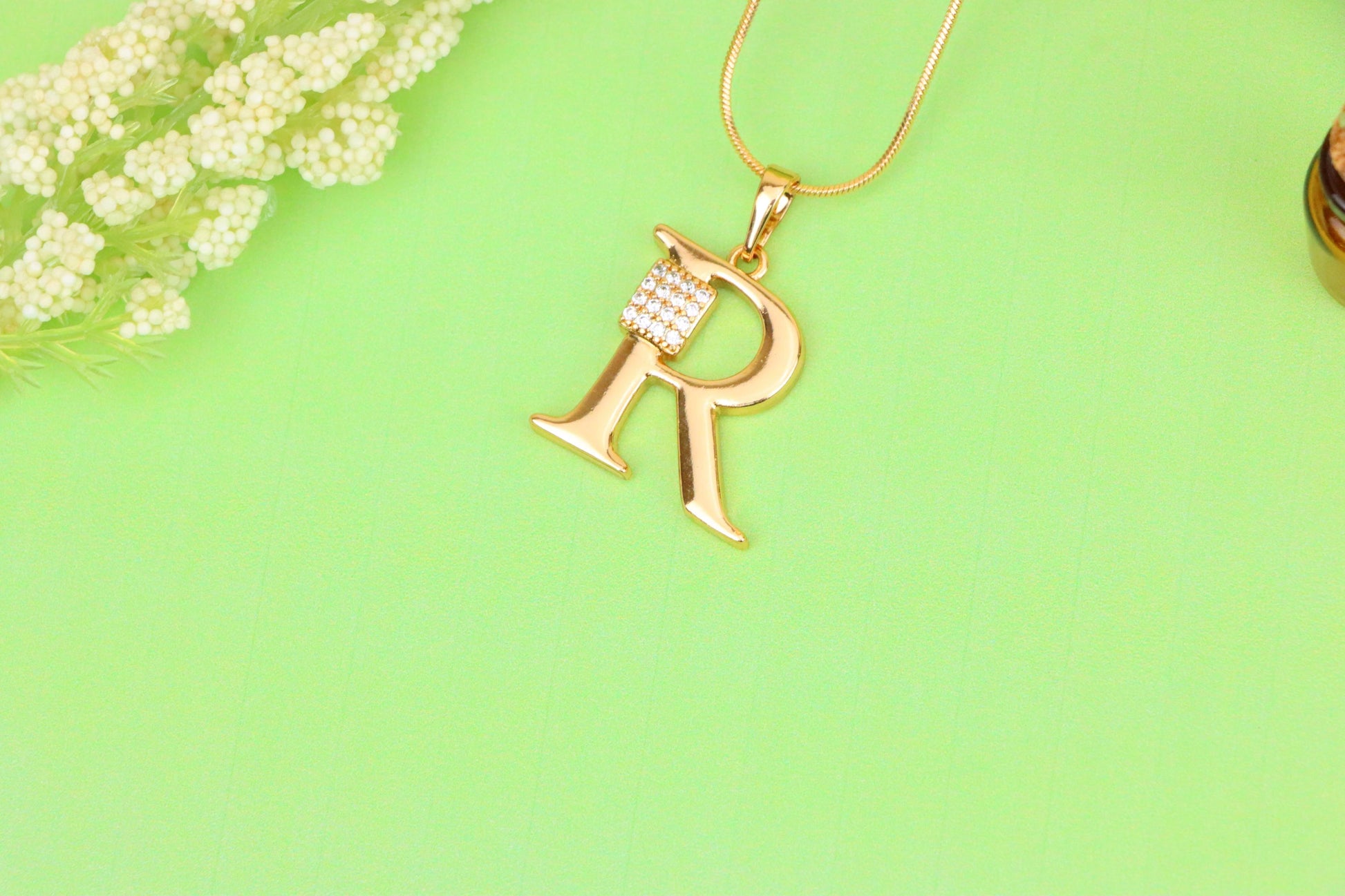 Rose Gold R Letter Pendant with CZ Accent, XPPT1429