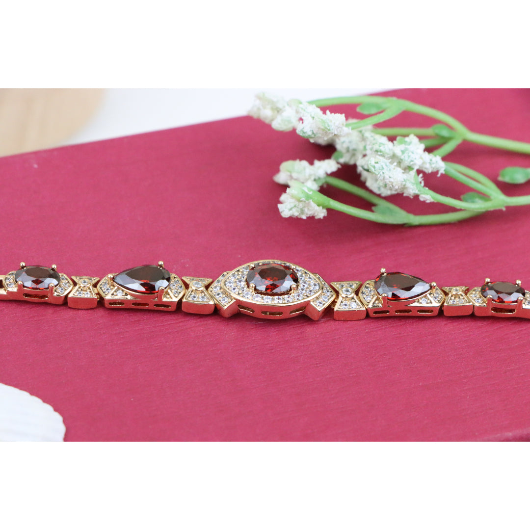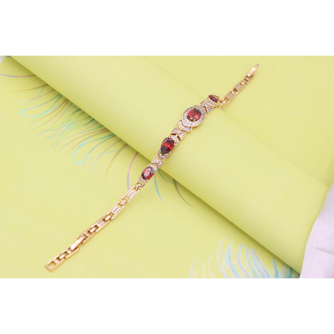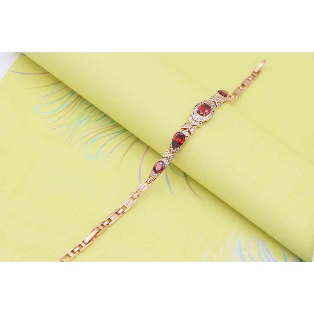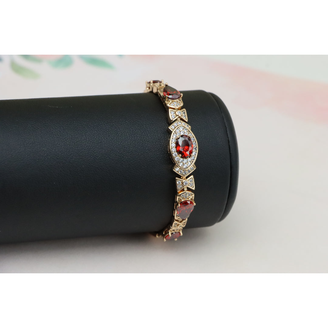 ✔ Elegant bracelet with rich red oval stones and sparkling crystals
