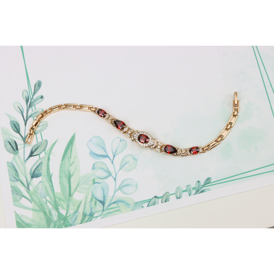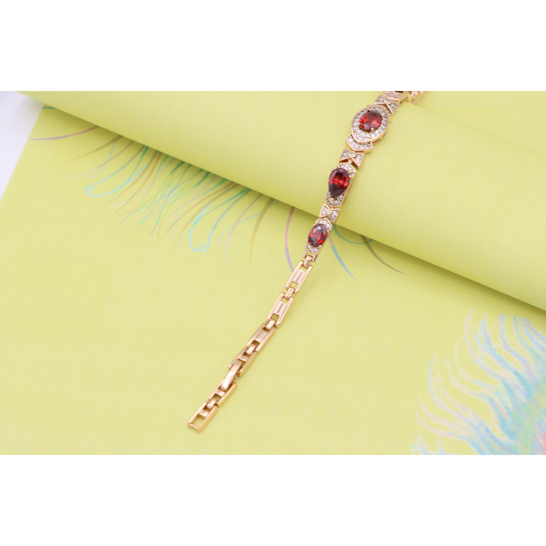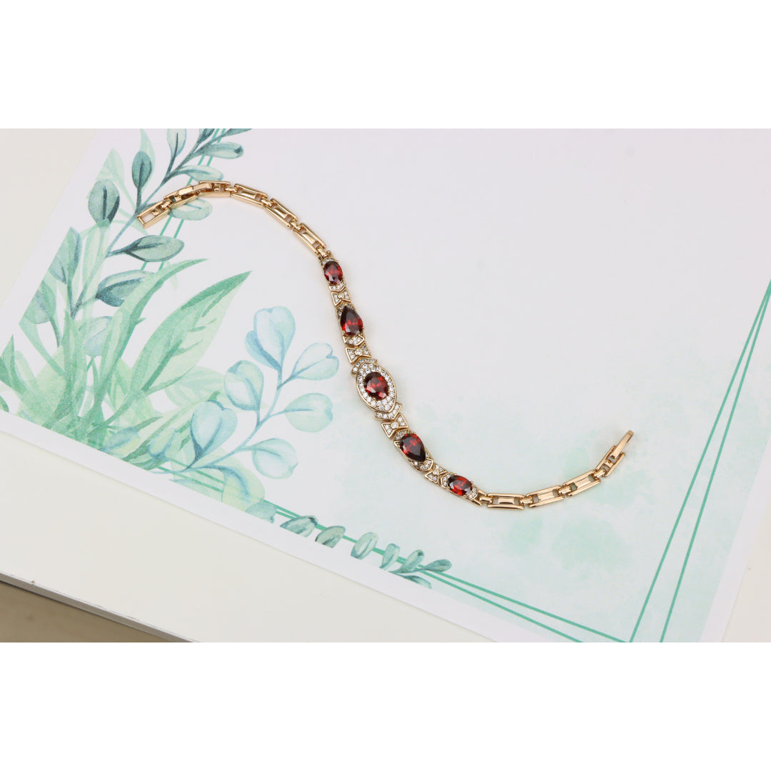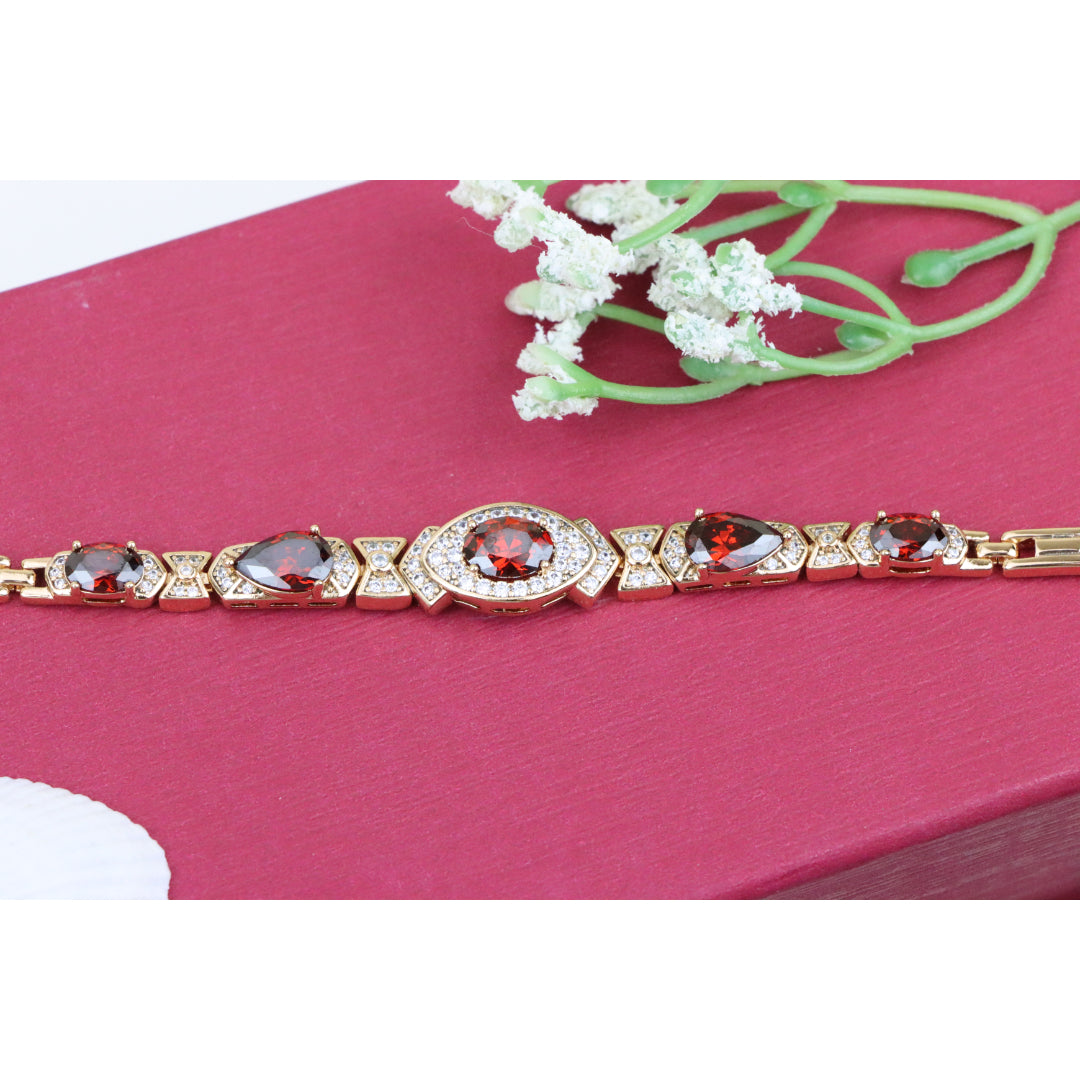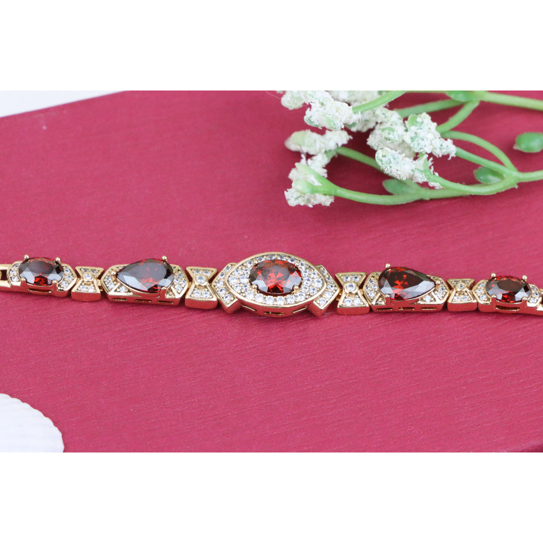 ✔ Elegant bracelet with rich red oval stones and sparkling crystals