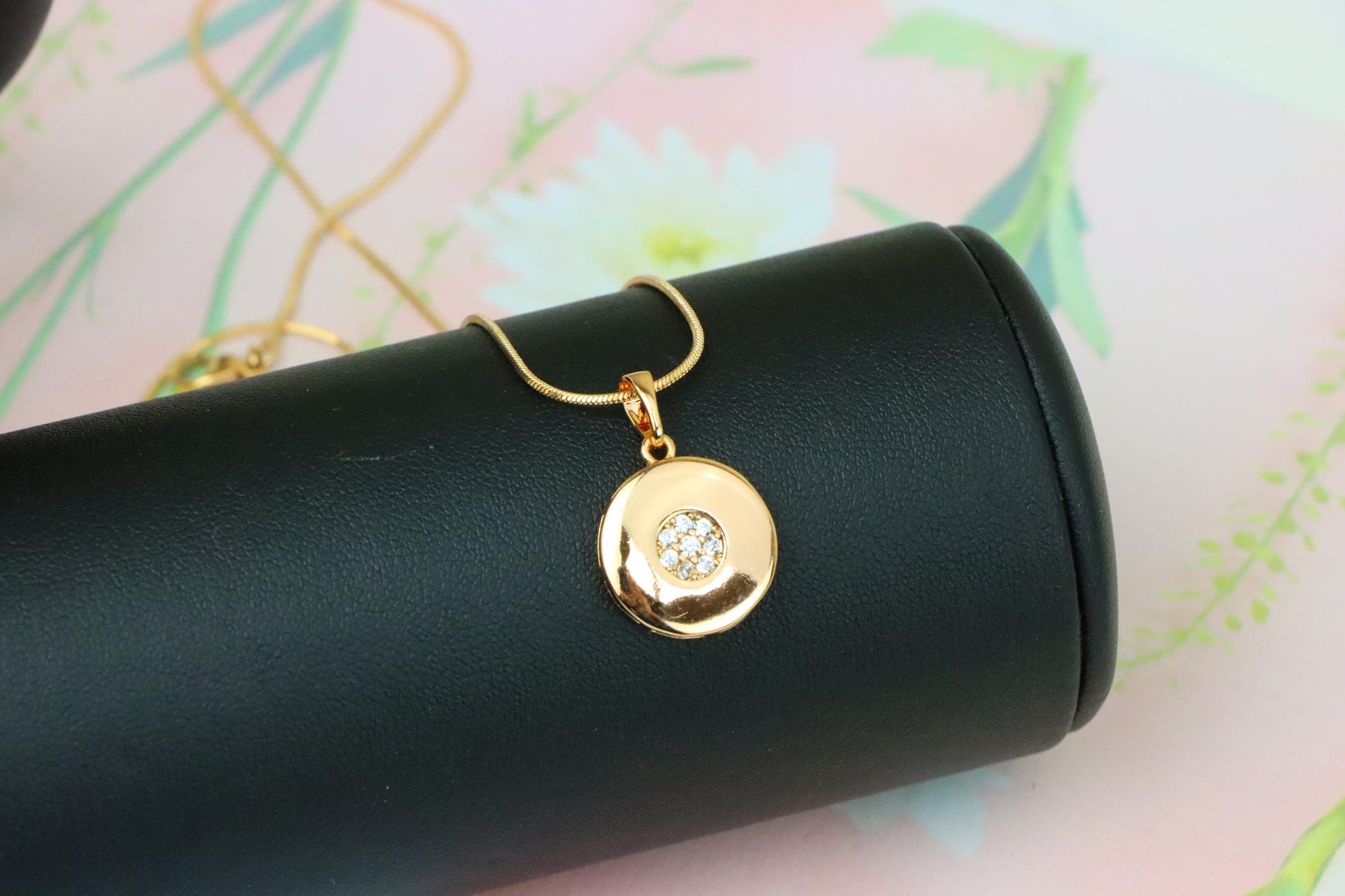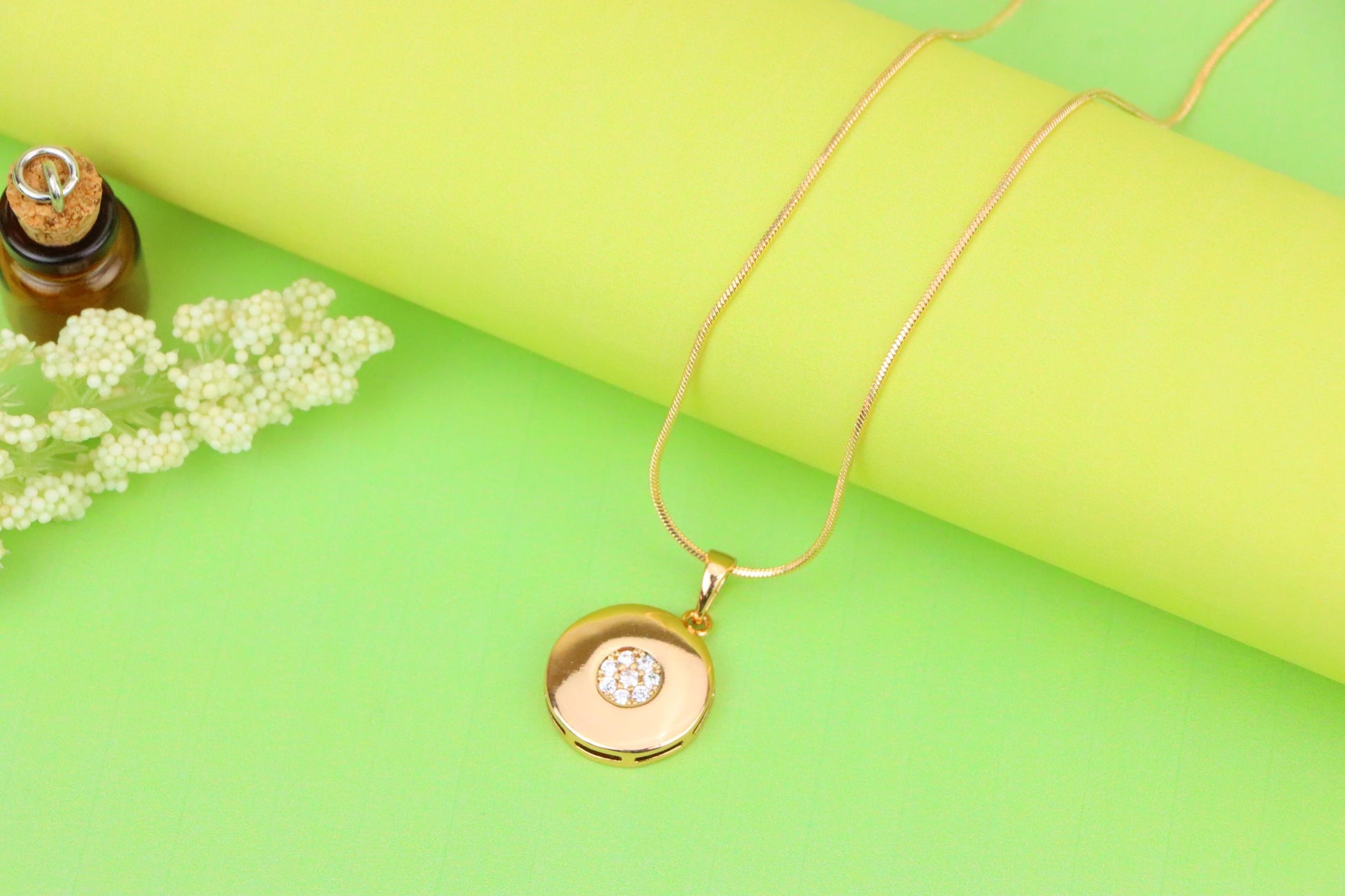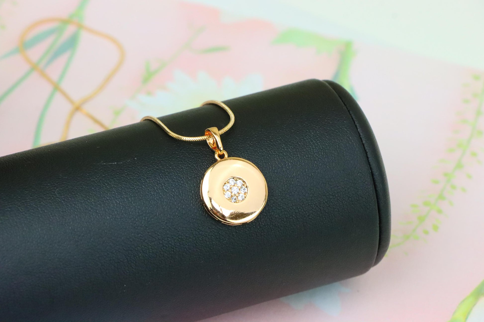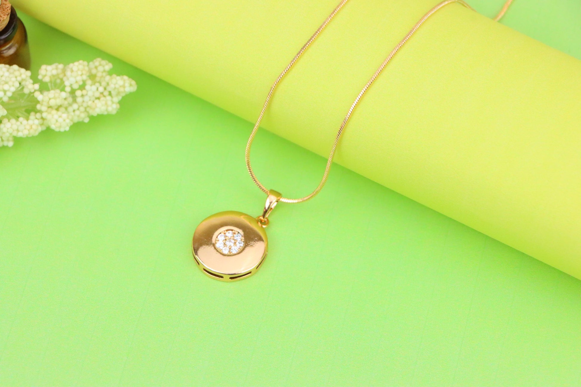 Beautifully crafted round rose gold pendant with sparkling center CZ stones, made with high-quality brass and gold plating.