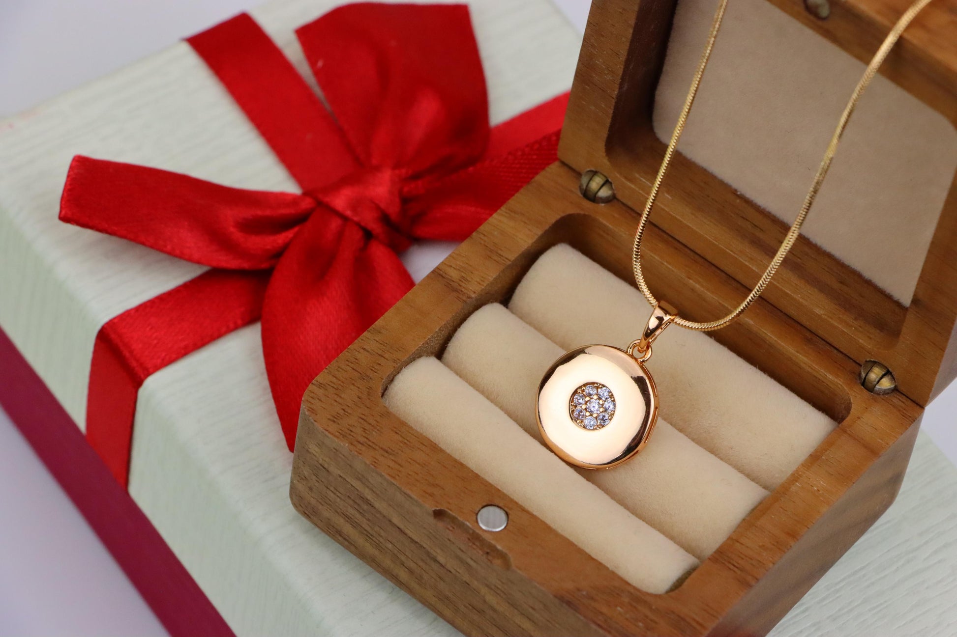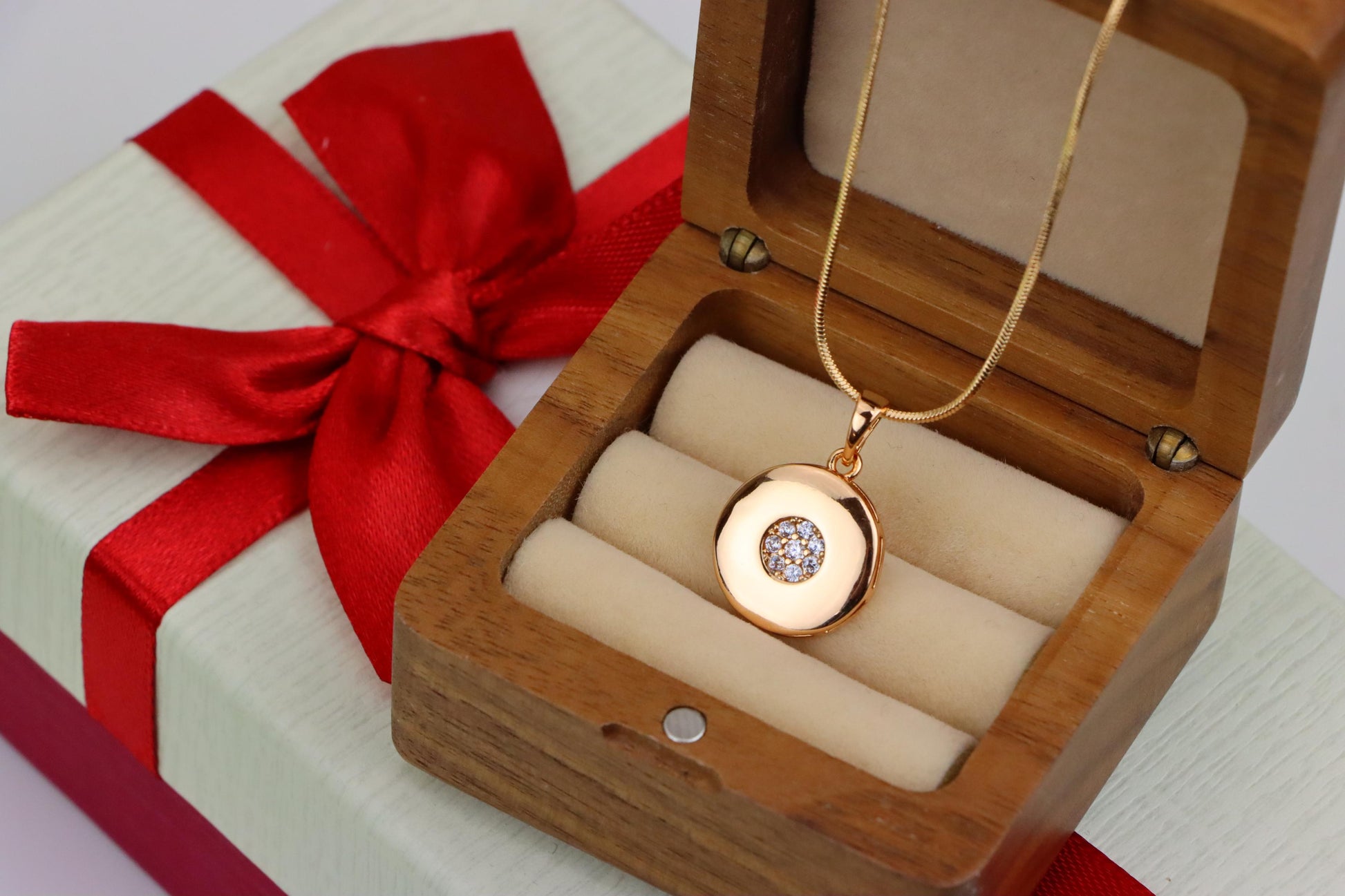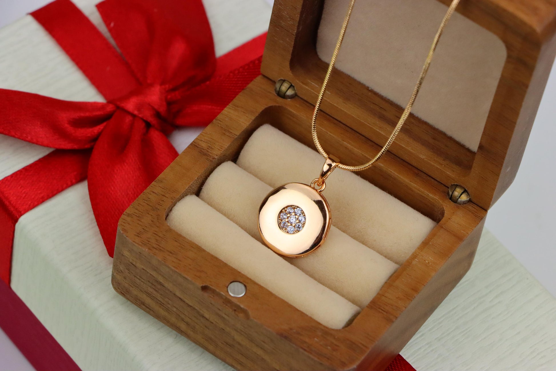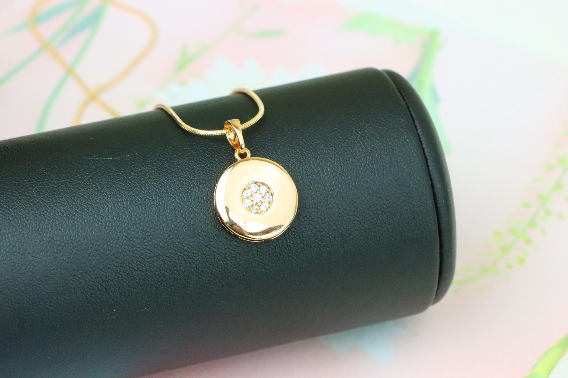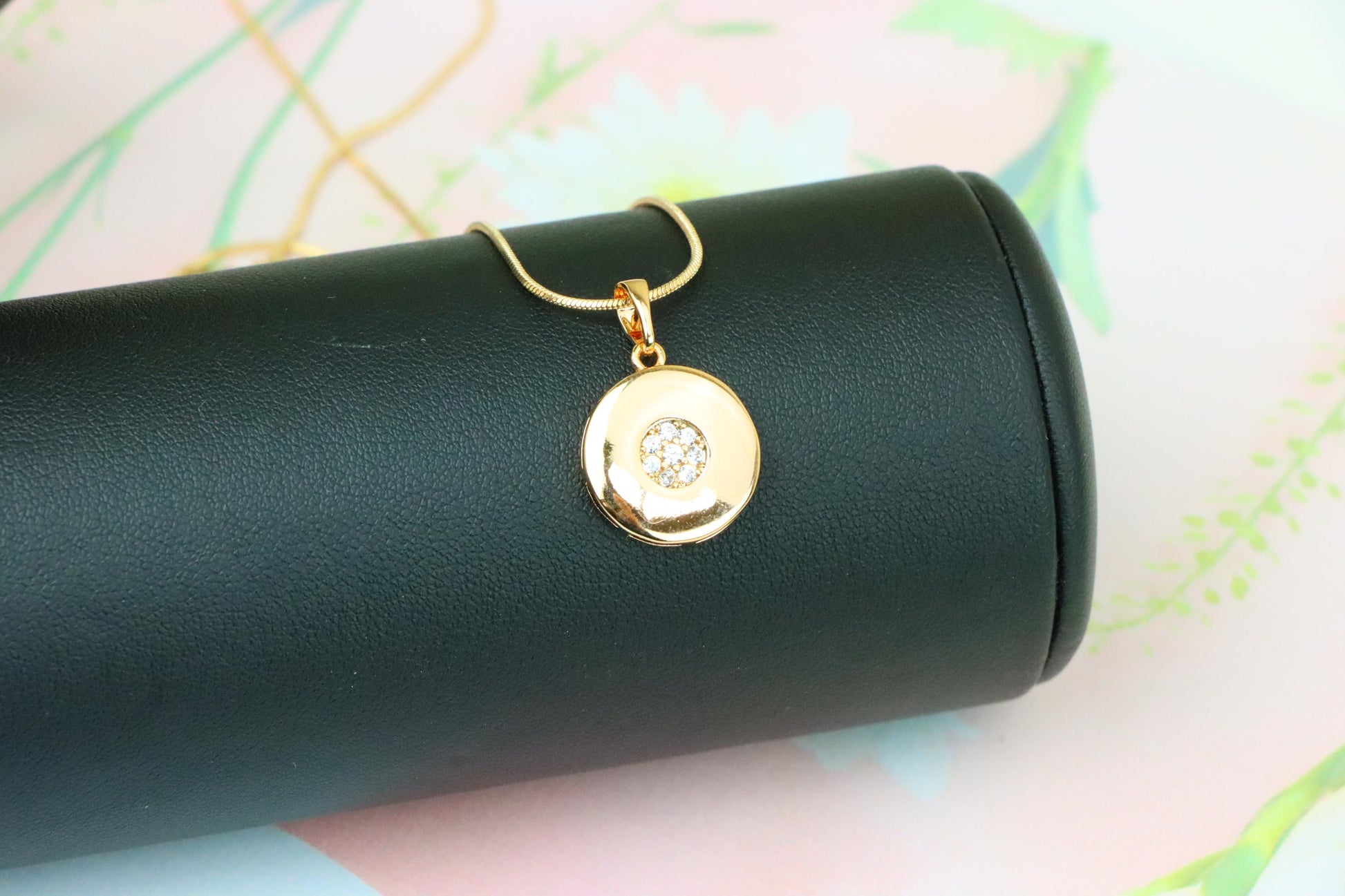 Beautifully crafted round rose gold pendant with sparkling center CZ stones, made with high-quality brass and gold plating.