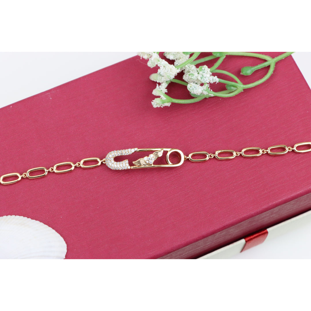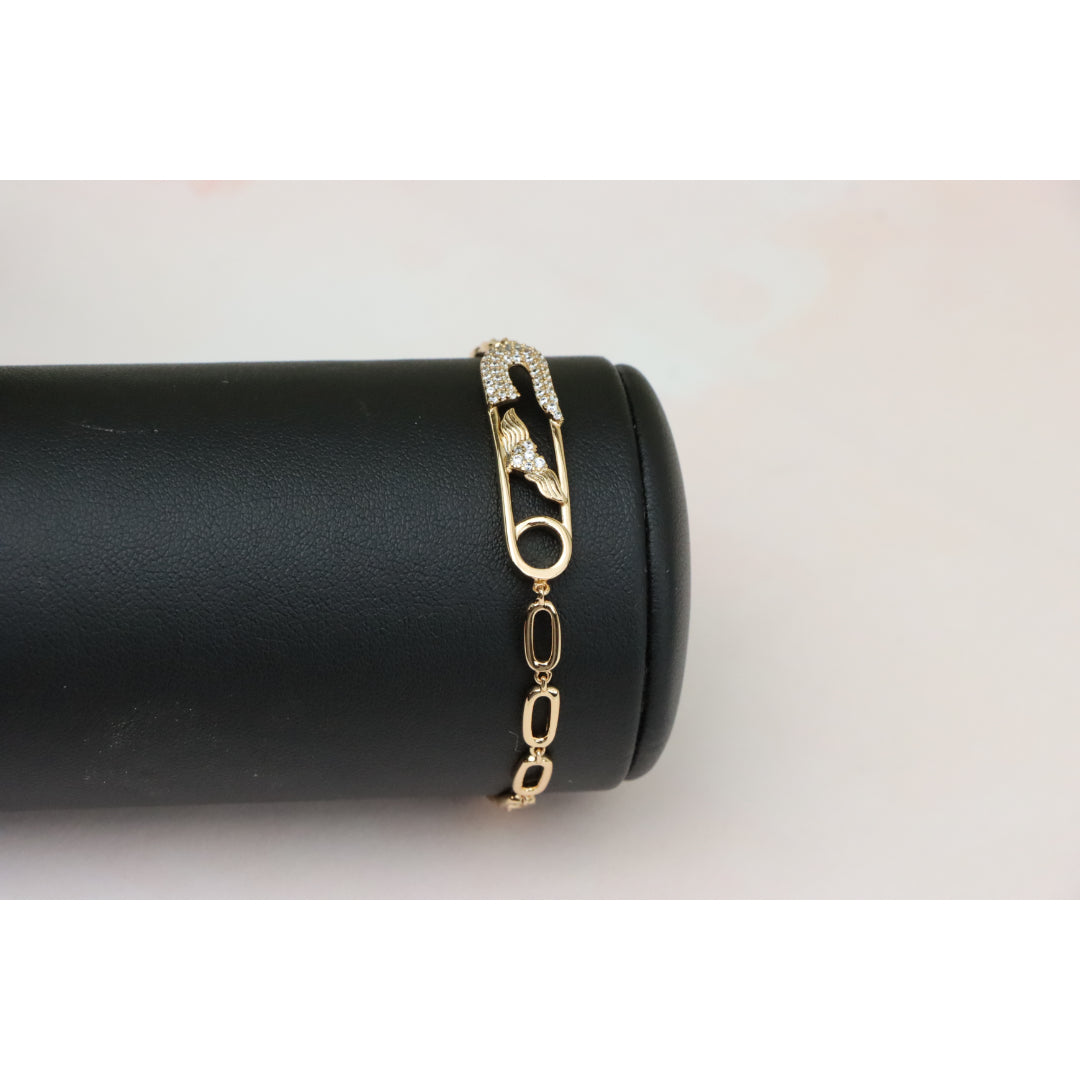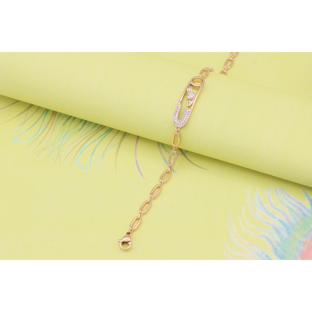 Rose Gold Safety Pin Bracelet with Wing Detail, XPBL0781