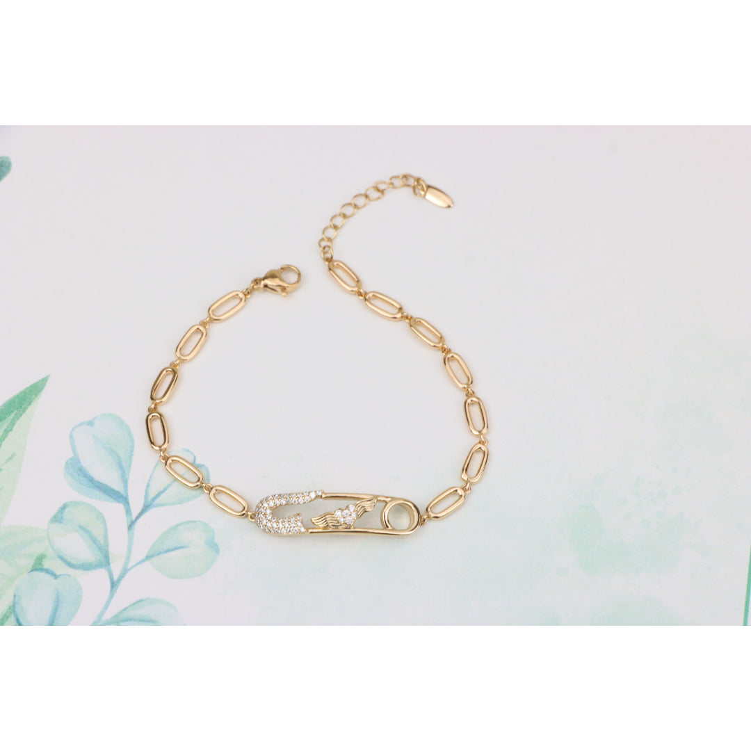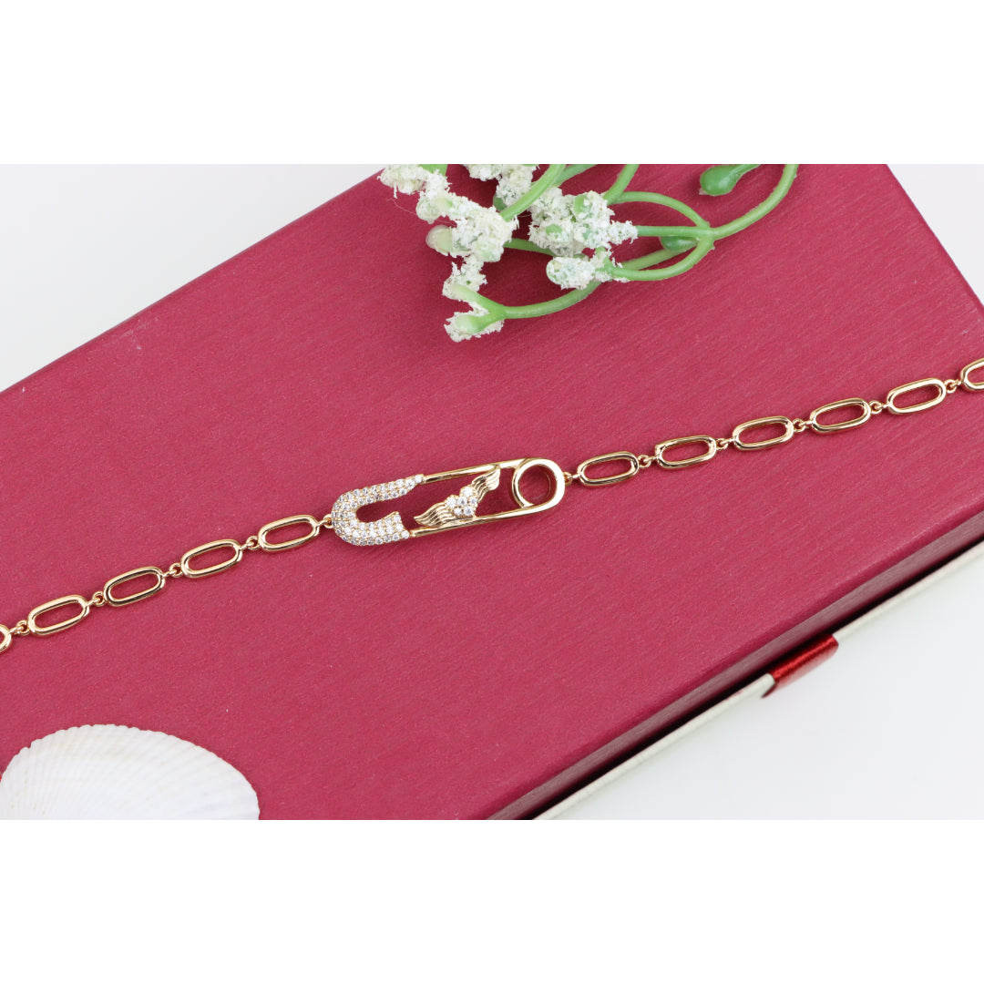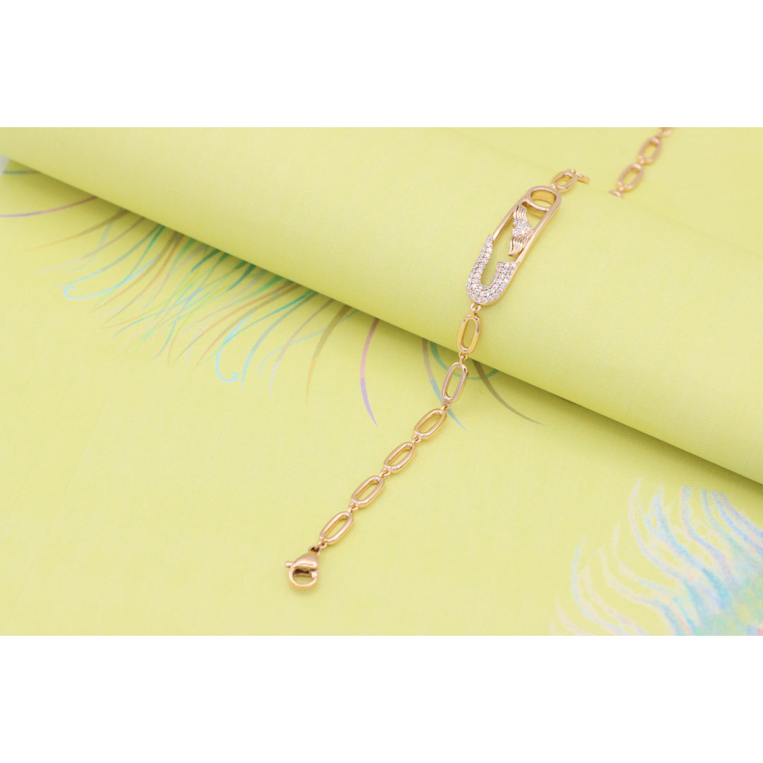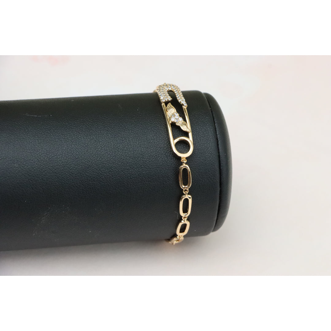 Rose Gold Safety Pin Bracelet with Wing Detail, XPBL0781