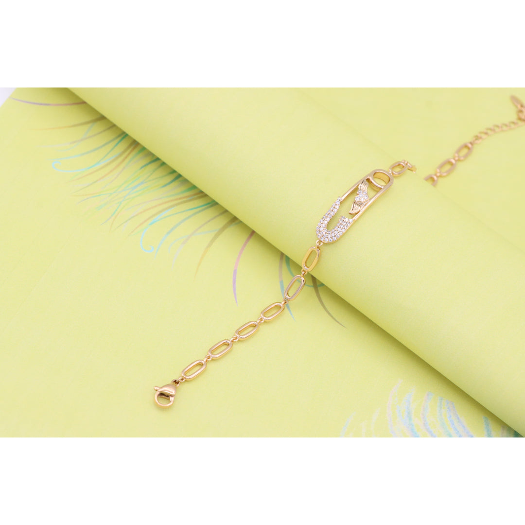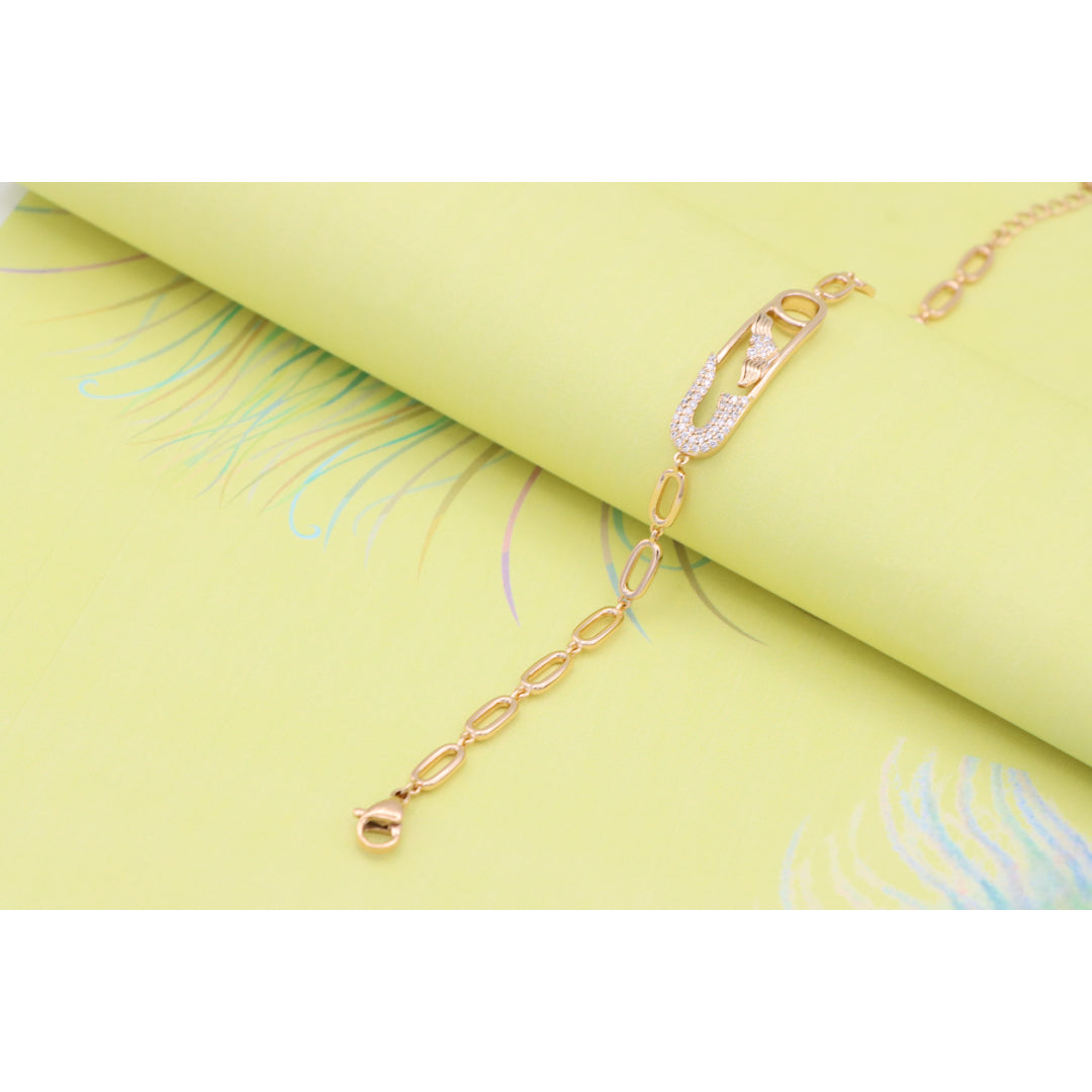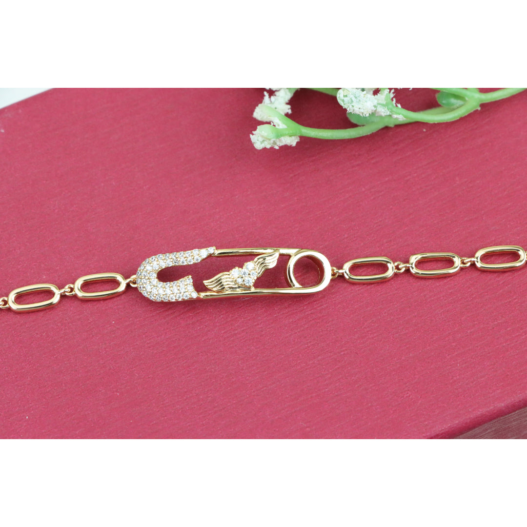 Stylish and symbolic, this safety pin rose gold bracelet with wing accents adds a bold yet elegant touch to your everyday or evening wear.