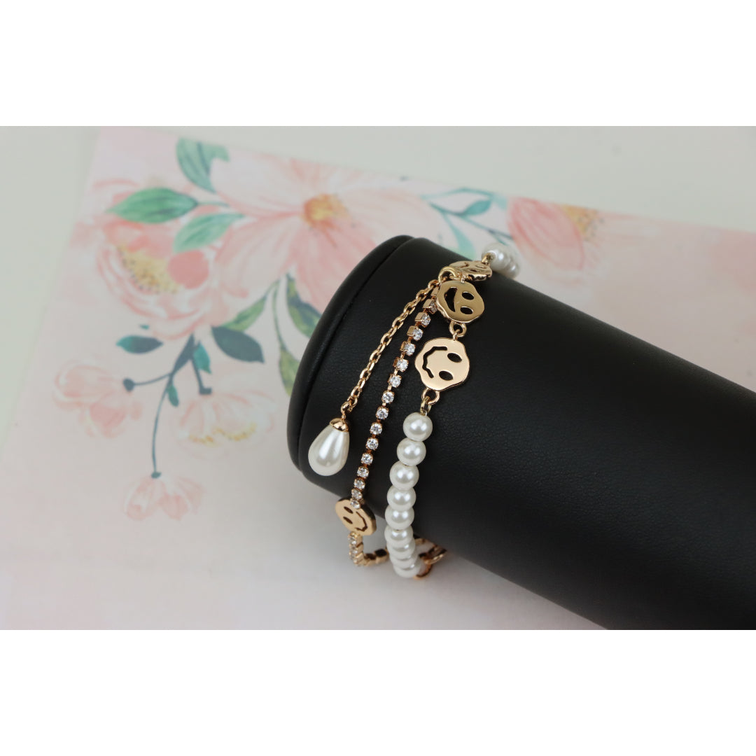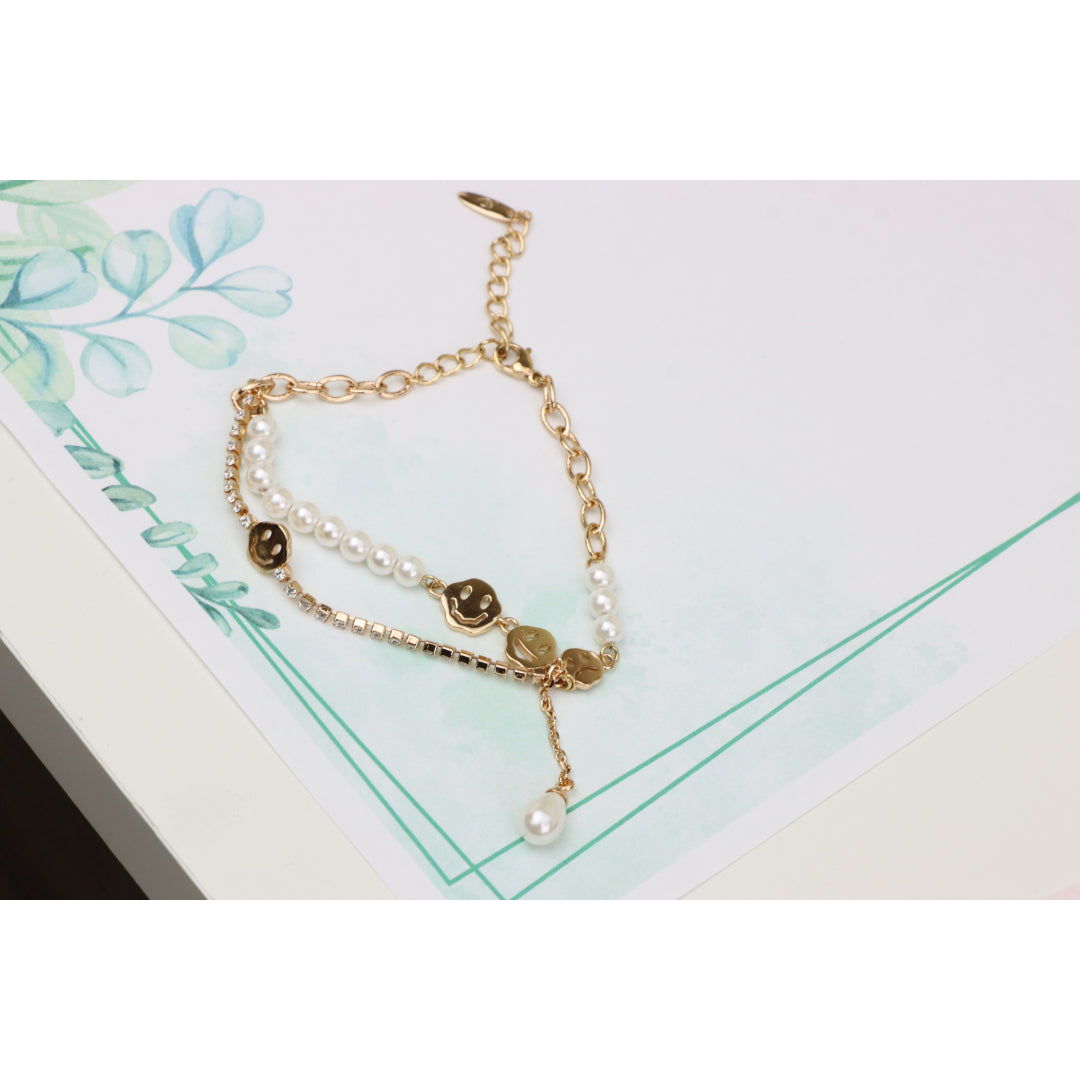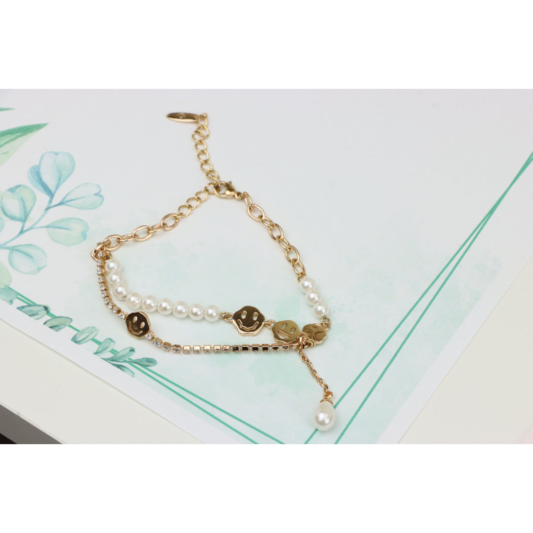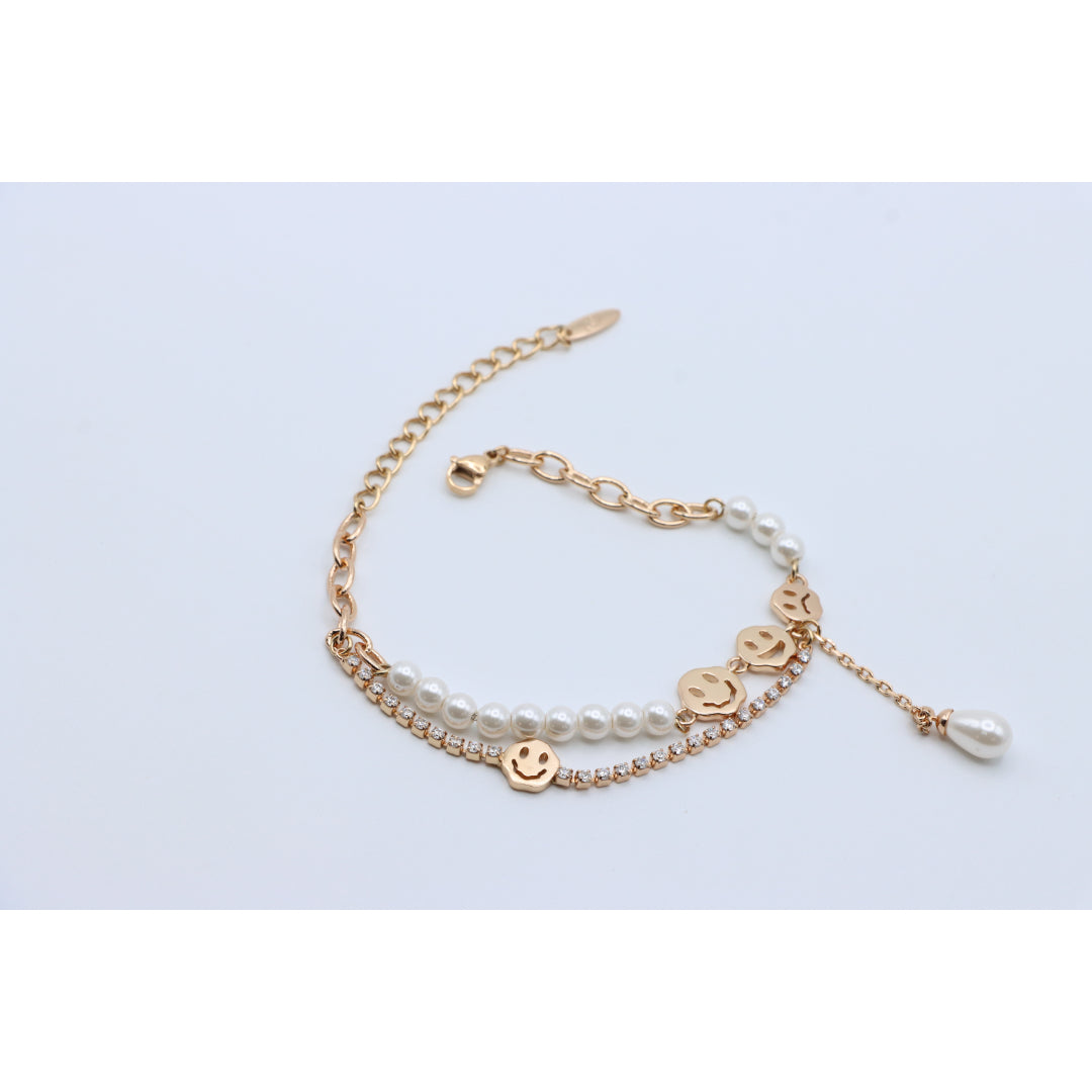 Rose Gold Smiley Face Pearl and Crystal Layered Bracelet, XPBL0671