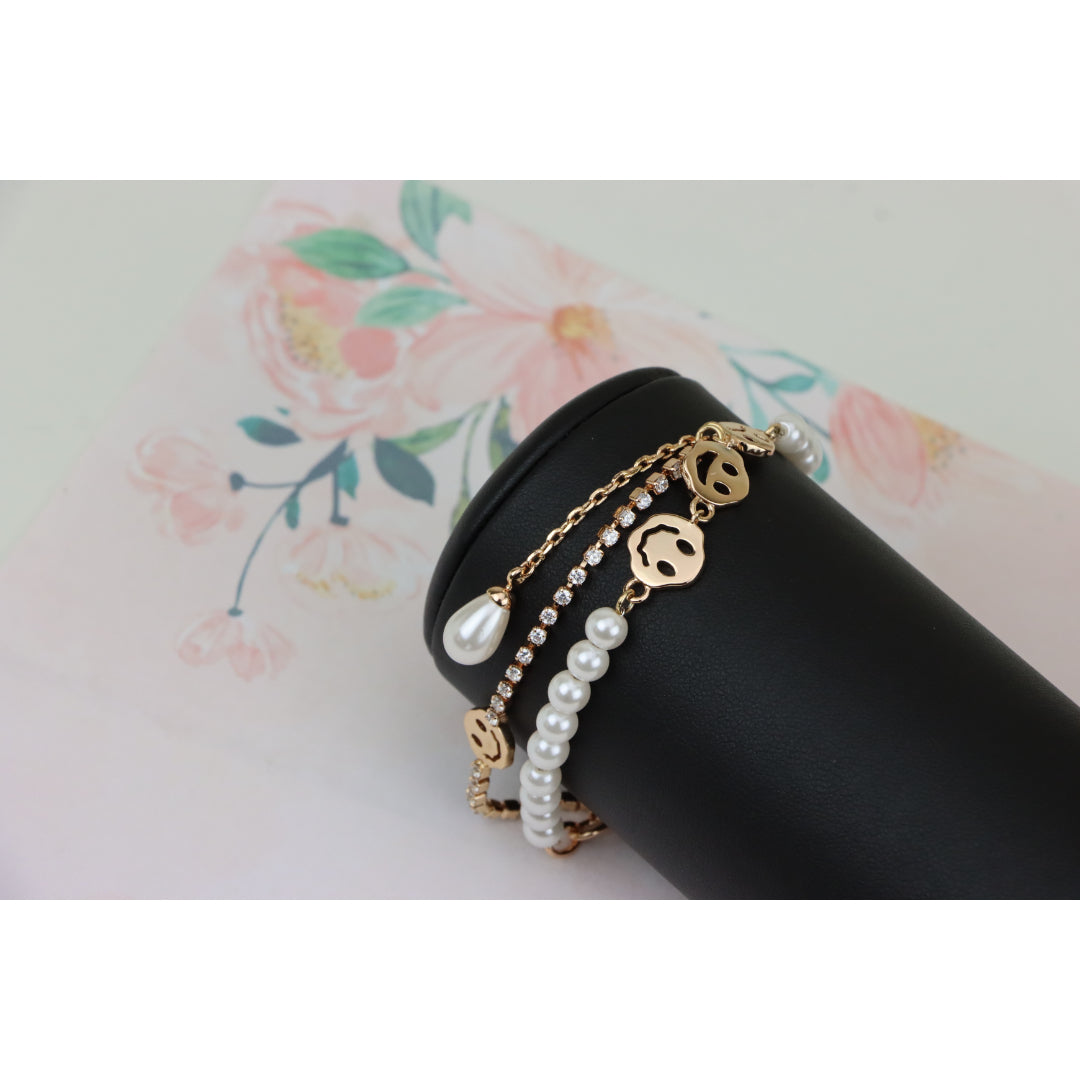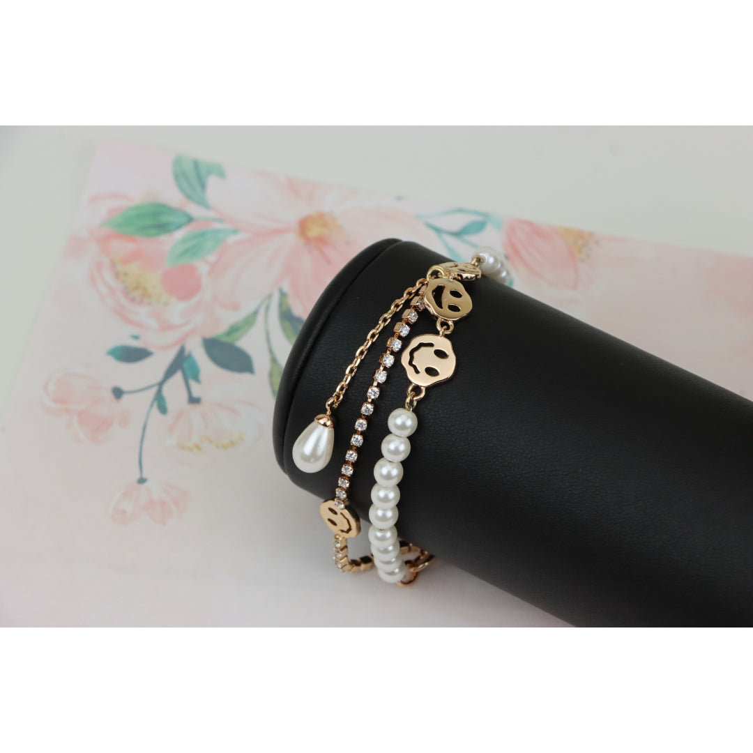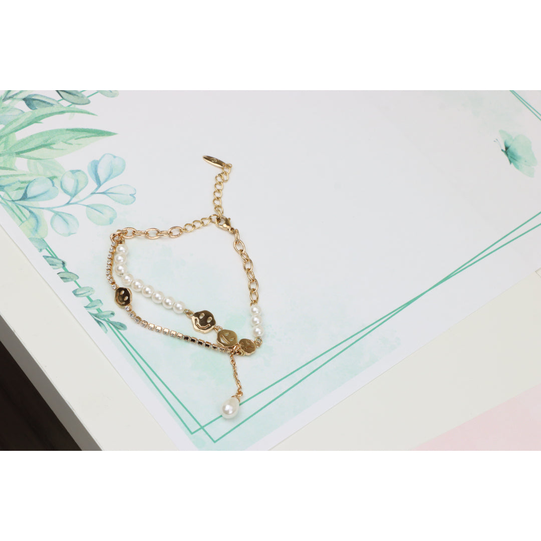 Rose Gold Smiley Face Pearl and Crystal Layered Bracelet, XPBL0671