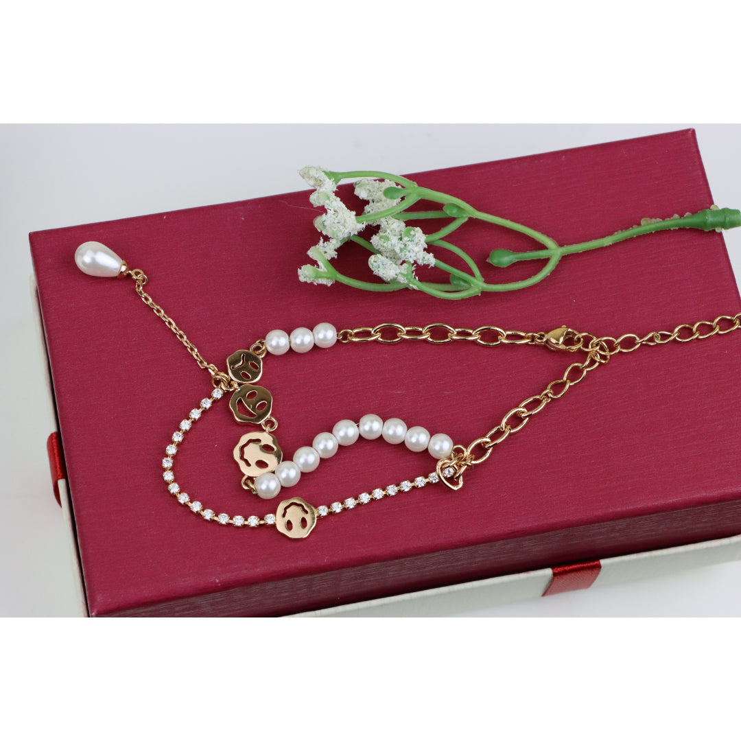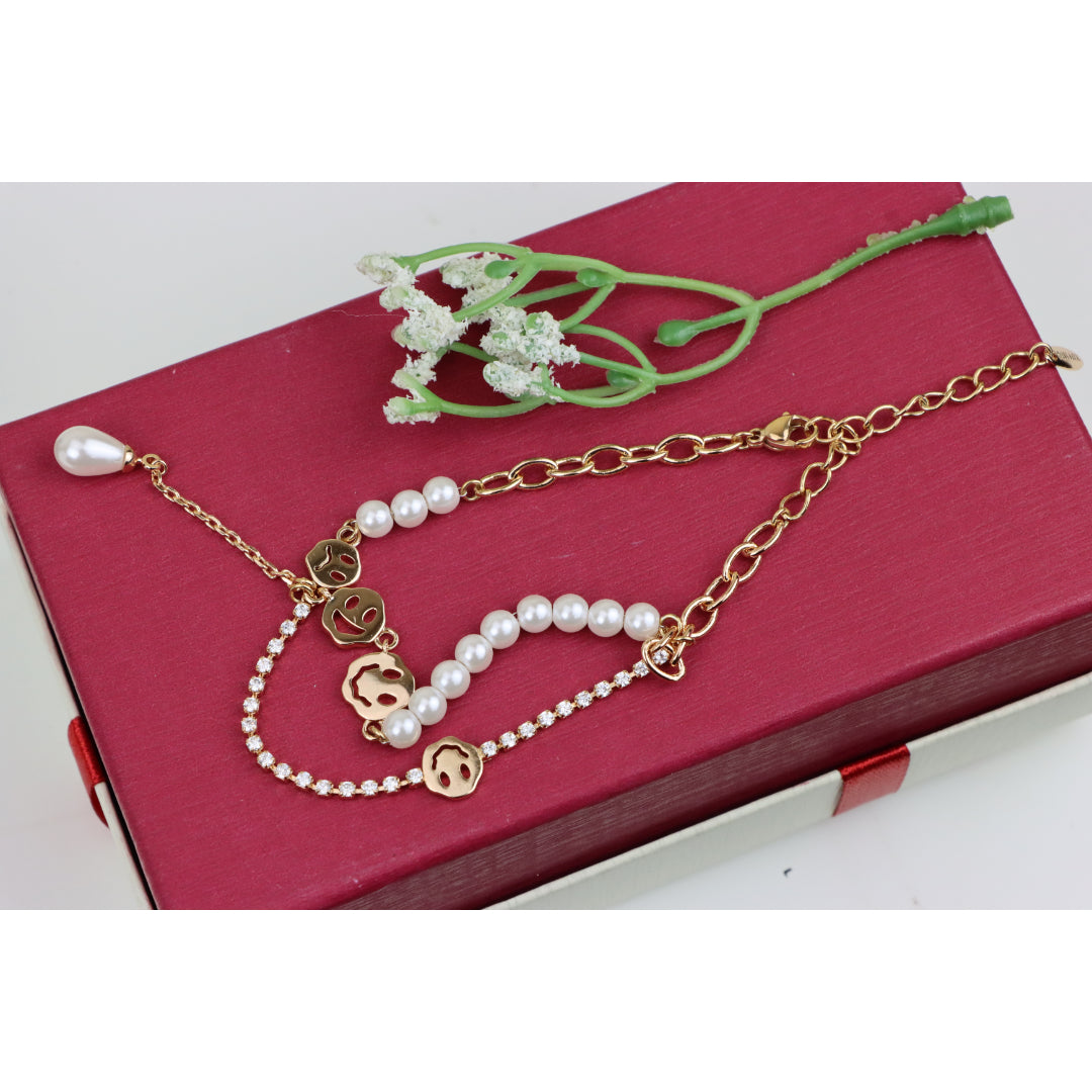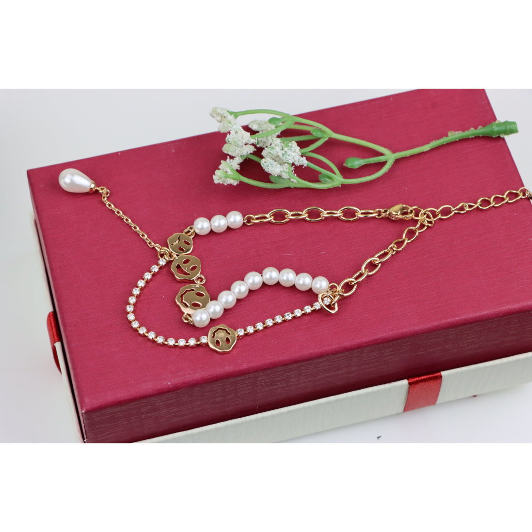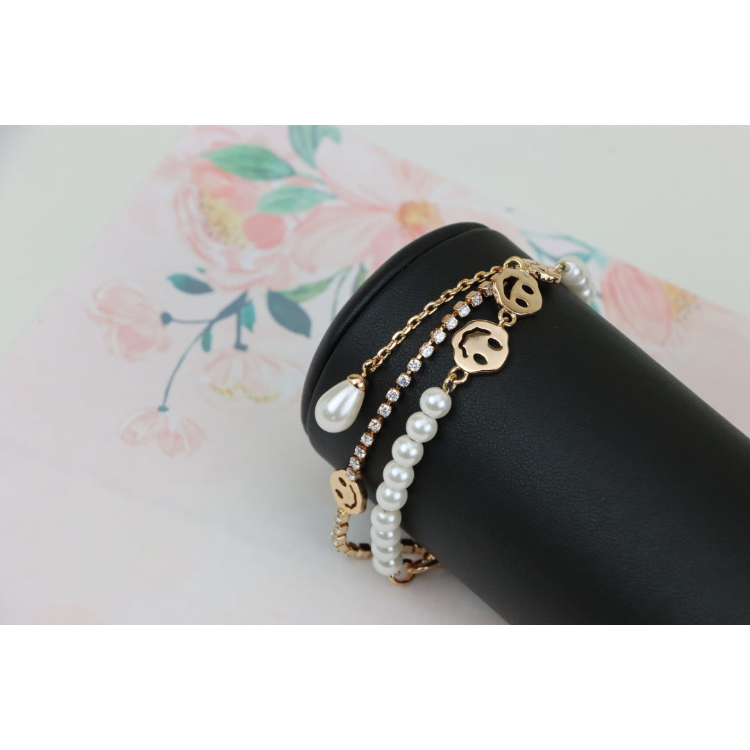 Rose Gold Smiley Face Pearl and Crystal Layered Bracelet, XPBL0671